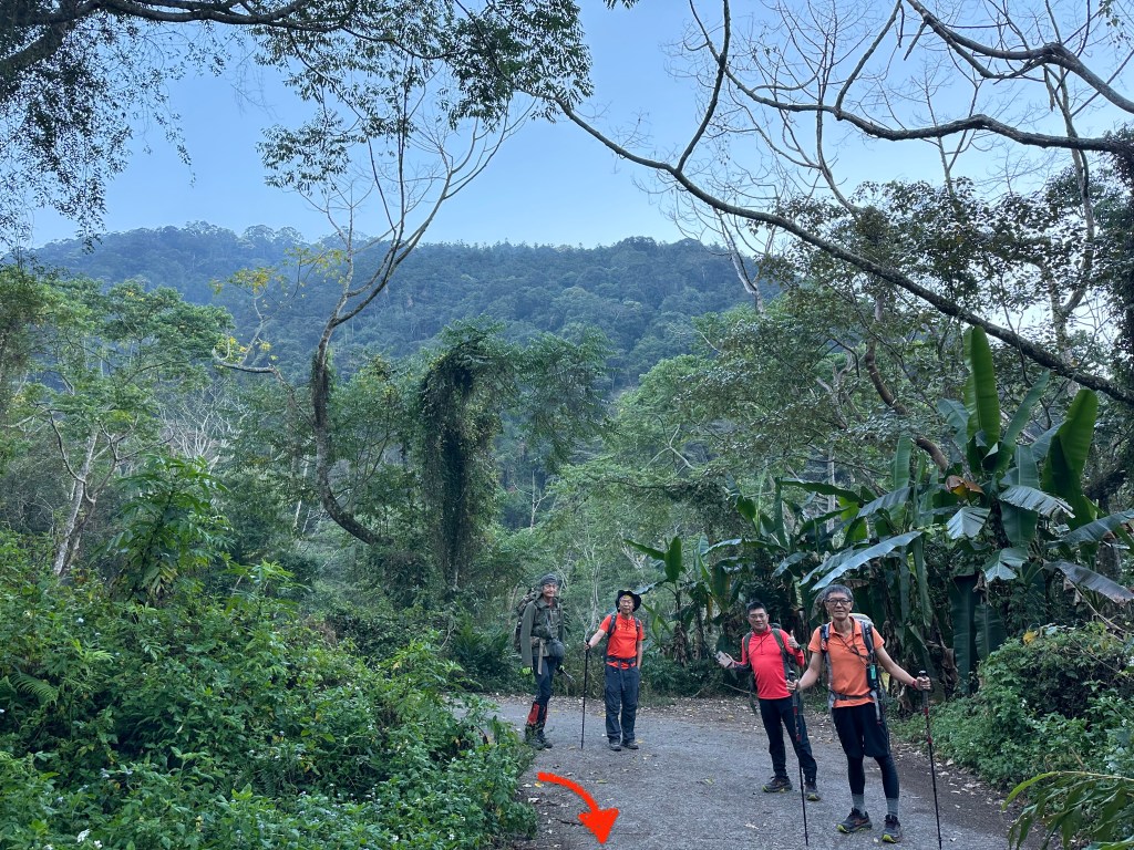 一伙人將車停好在白石山土地公廟後,此時為早上的6點半,開始起登!先沿著產業道路走2.6K到北稜線登山口,這一條產業道路恰好位於傳統活動中心線與北稜線兩條山巒之間,一路而下時往右後方看去,就會看到水社大山頗為嚇人的高聳山頭,等會我們就要爬上到這麼高的位置嗎?