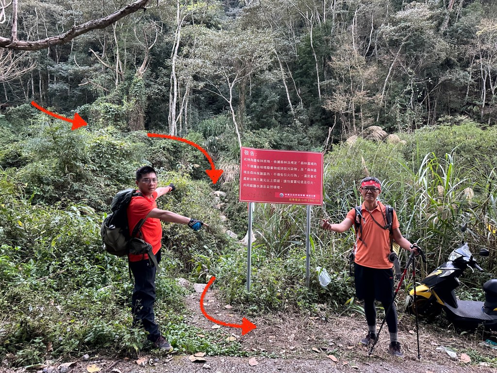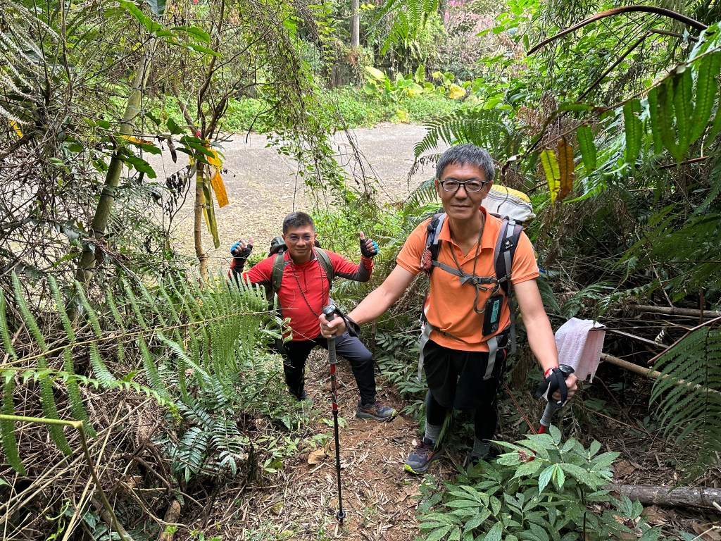早上起登前,Link、Peter、Jun與我(Gosen)各開一台車,先在魚池鄉的7-ELEVEN 佳軒門市先集合補給,再一起開車到北稜線登山口,原先計畫是將車停在北稜線登山口這裡,但Jun來過提議說要不要將車開進到白石山土地公廟前停,因為今天要走O型,所以停那裡其實都一樣,但事後覺得還是應該停在北稜線登山口這裡,因為白石山土地公產業道路的路徑狹小,汽車必定會刮到兩旁的樹叢雜草。