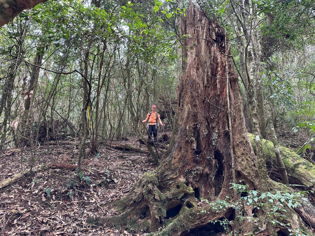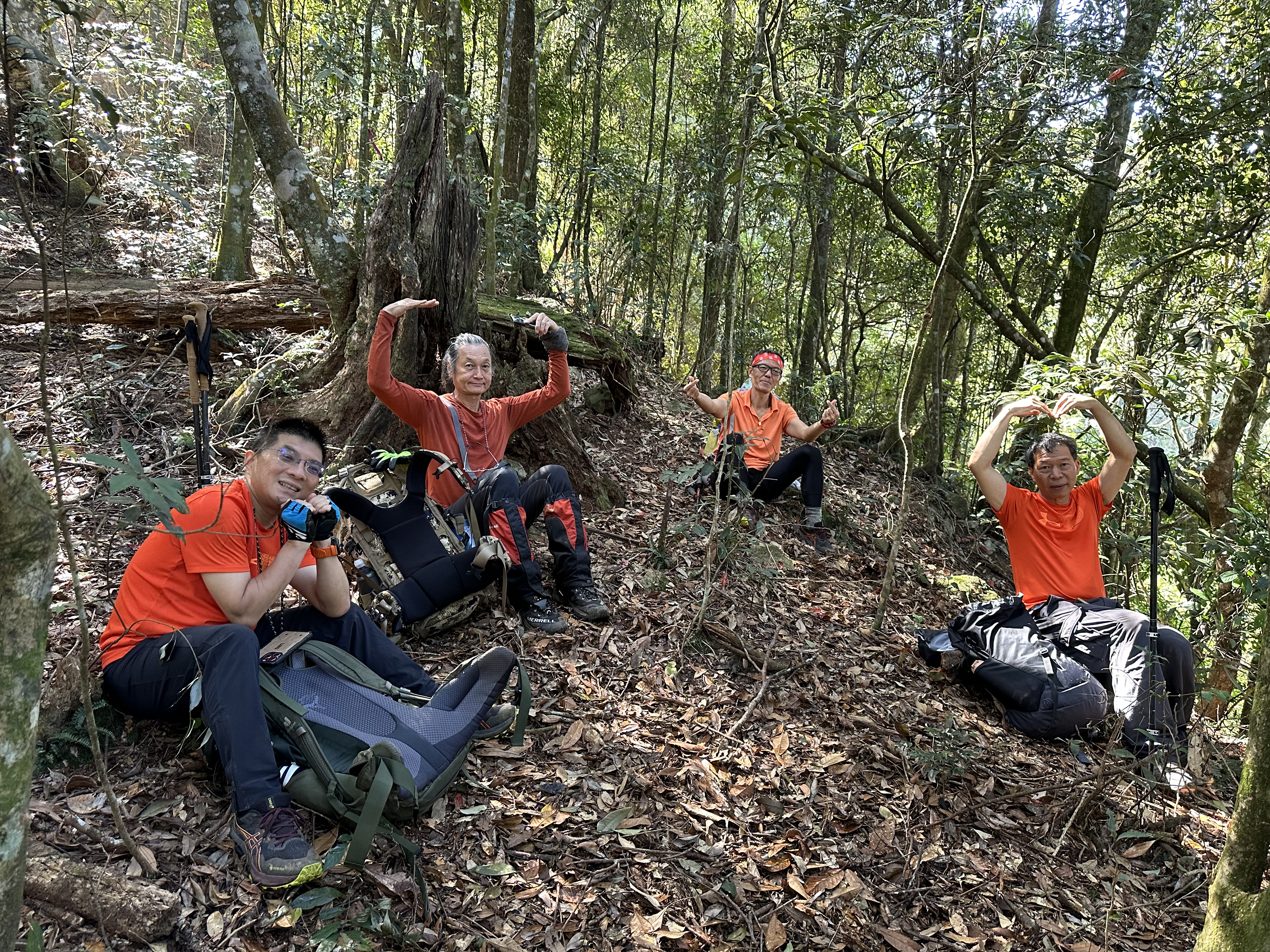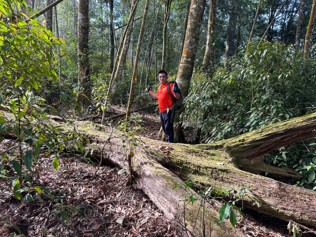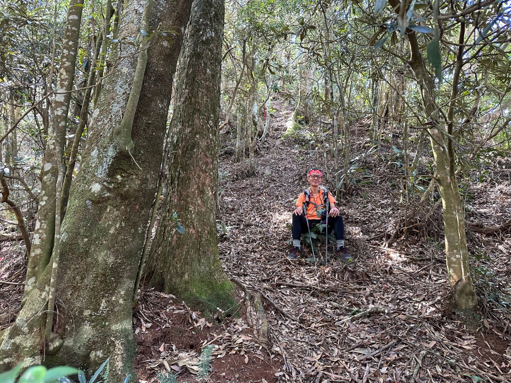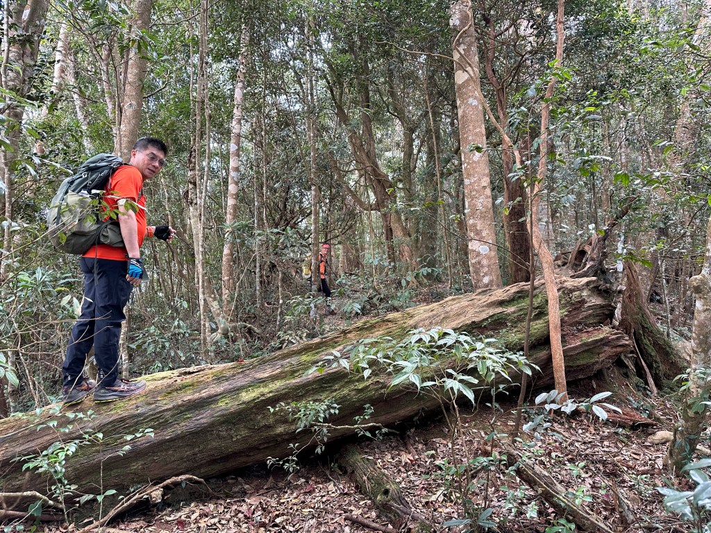 陡到了H1900m恰好有一棵大倒木,我們五人就在這裡休息,內心突然覺得輕鬆了起來,我自己本來預計下午1、2點才能到水社大山,看來中午12點多就可以抵達,所以大伙想休息就休息吧!
