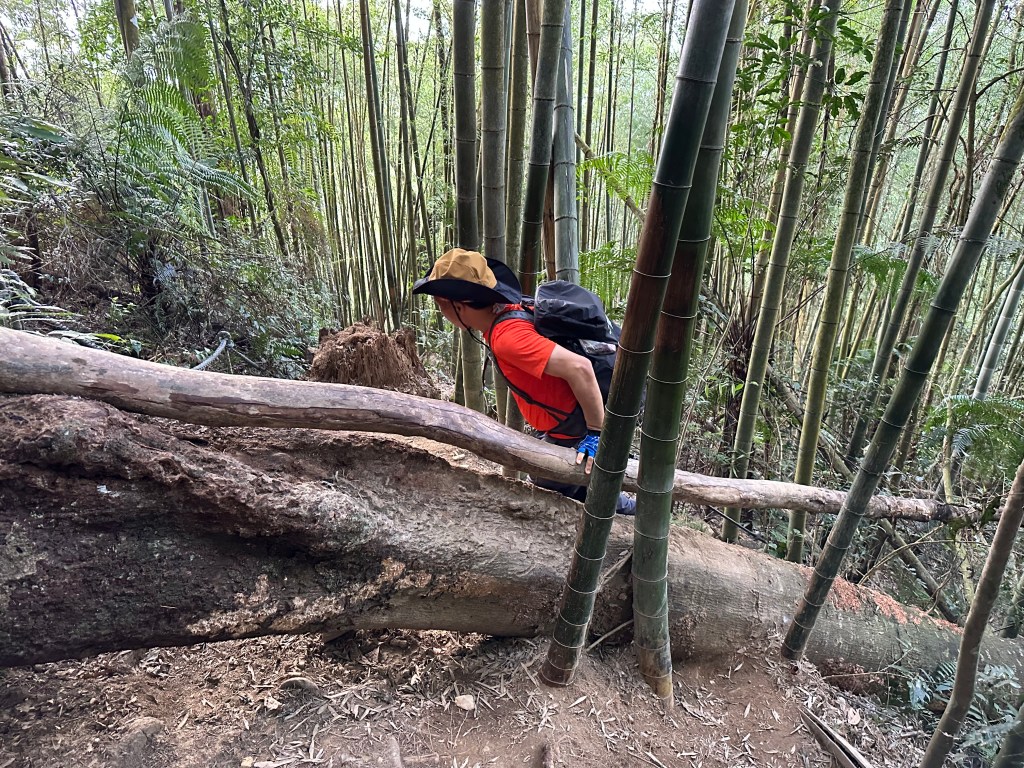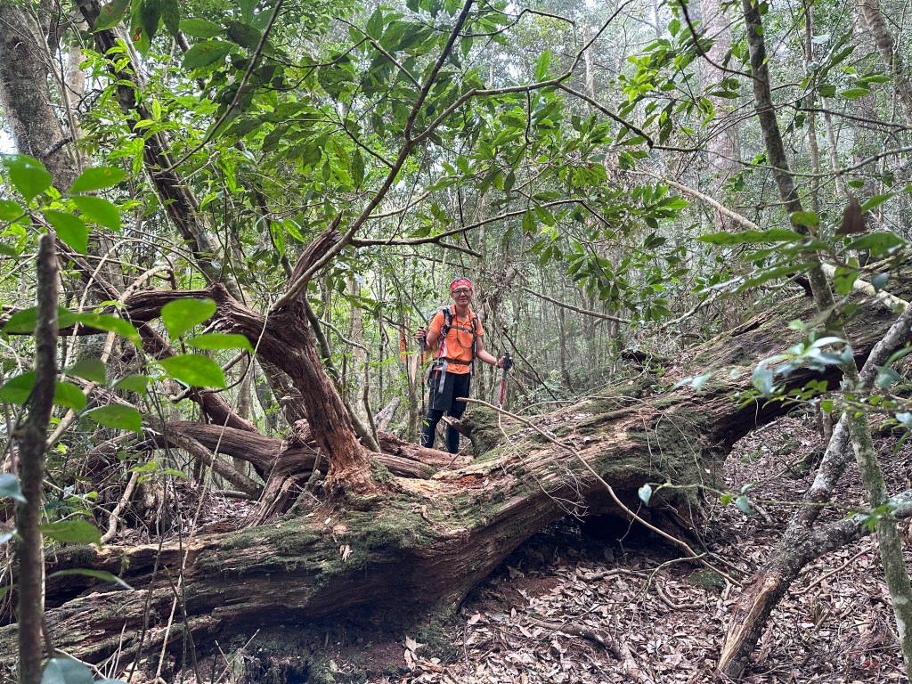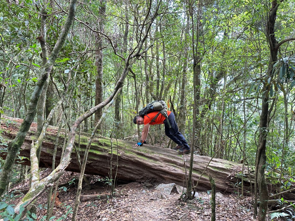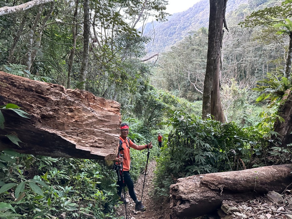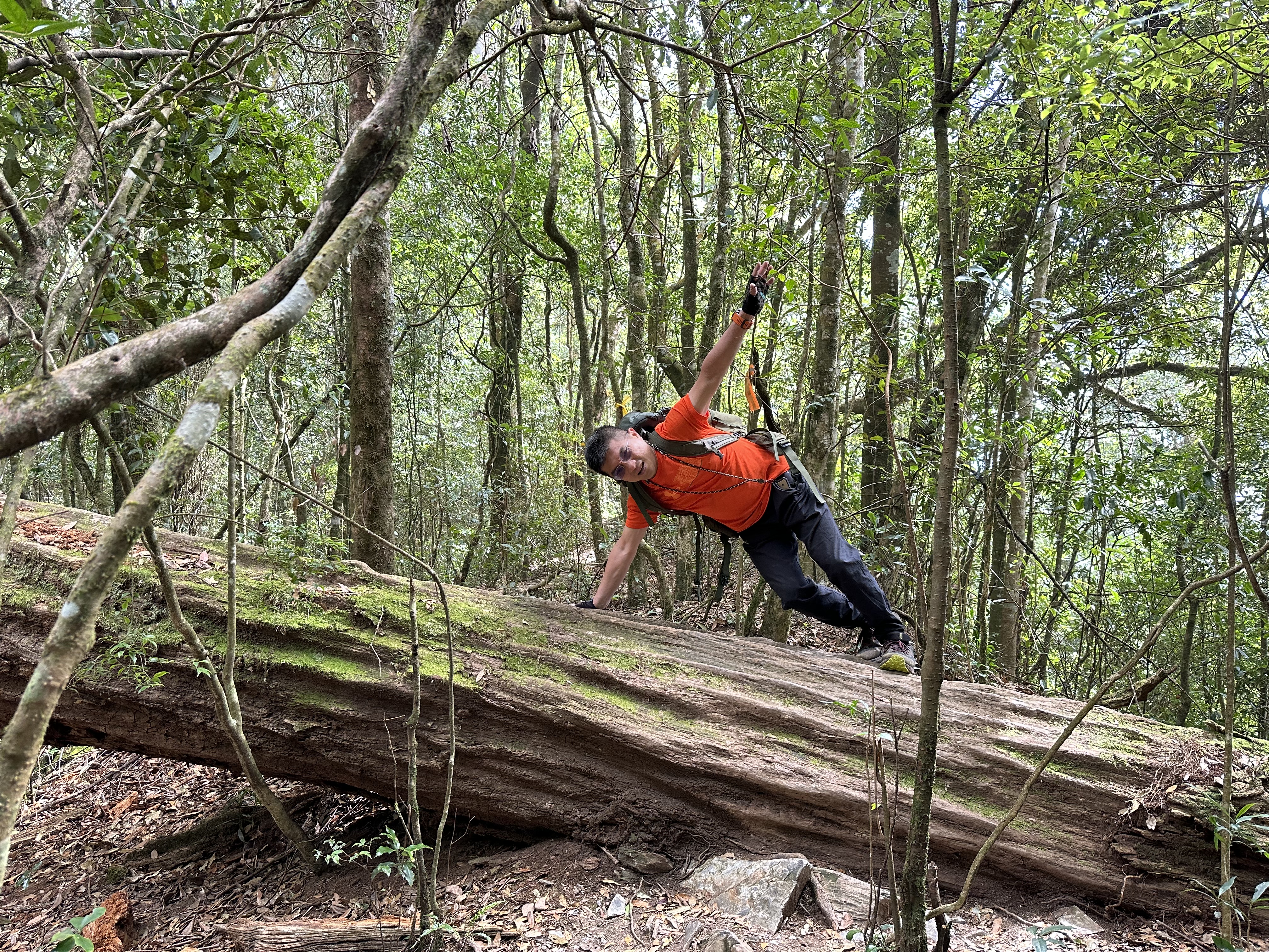 幻燈片:別以為我是在擺什麼pose?是因為腳酸了,所以用了一個怪姿勢跨過倒木。