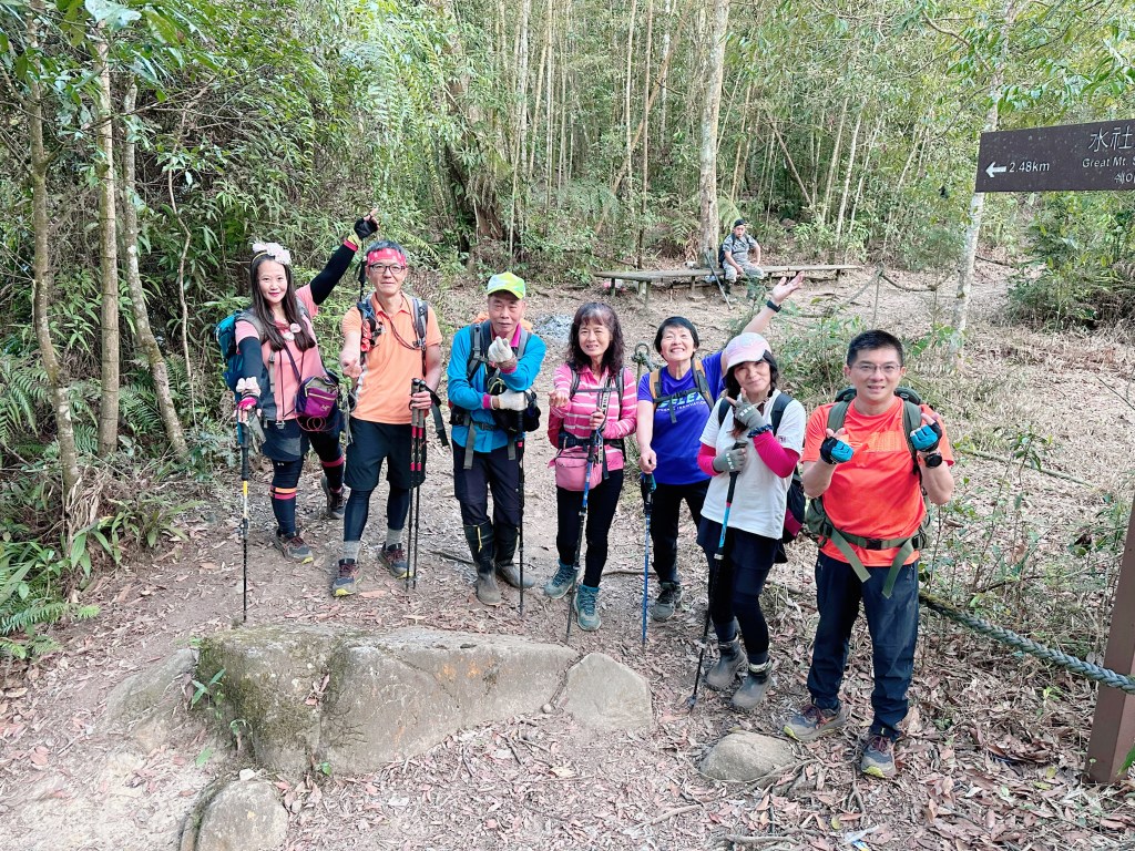 離開卜吉山,一伙人快步會到3K的白石山土地公岔,恰好帥哥美女團等四人也下山走到此,因此大伙再合照幾張,相逢自是有緣!這時已經是下午5點半。