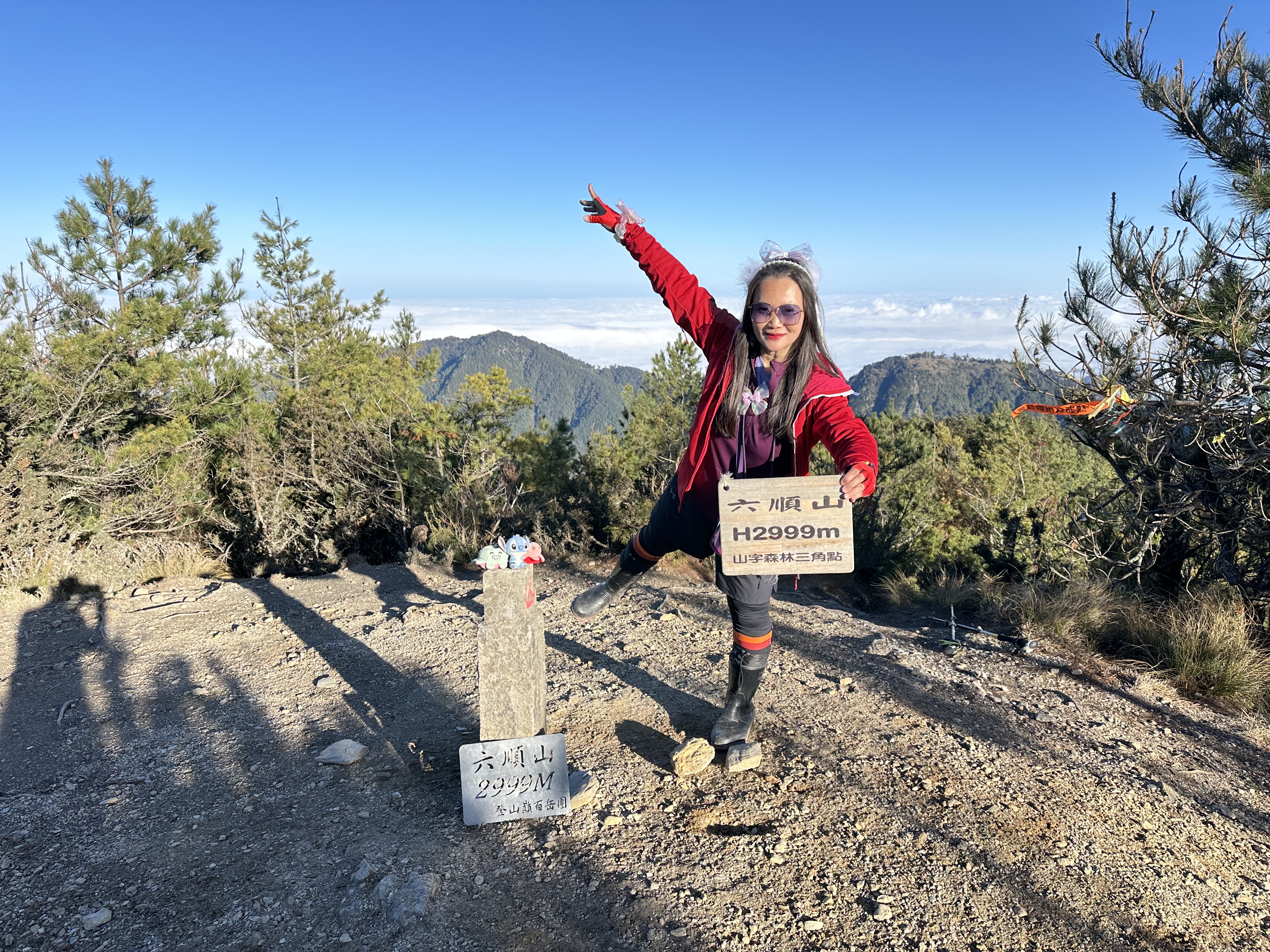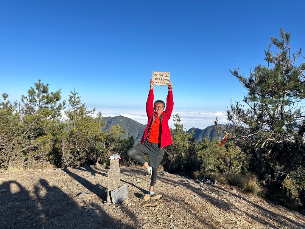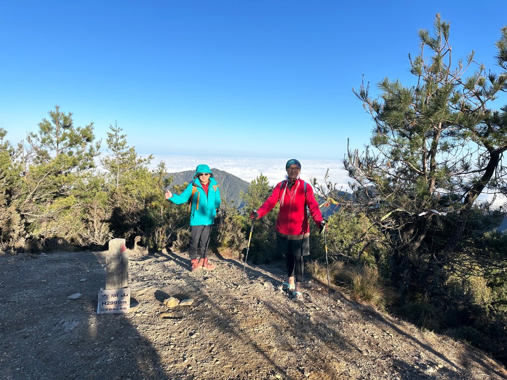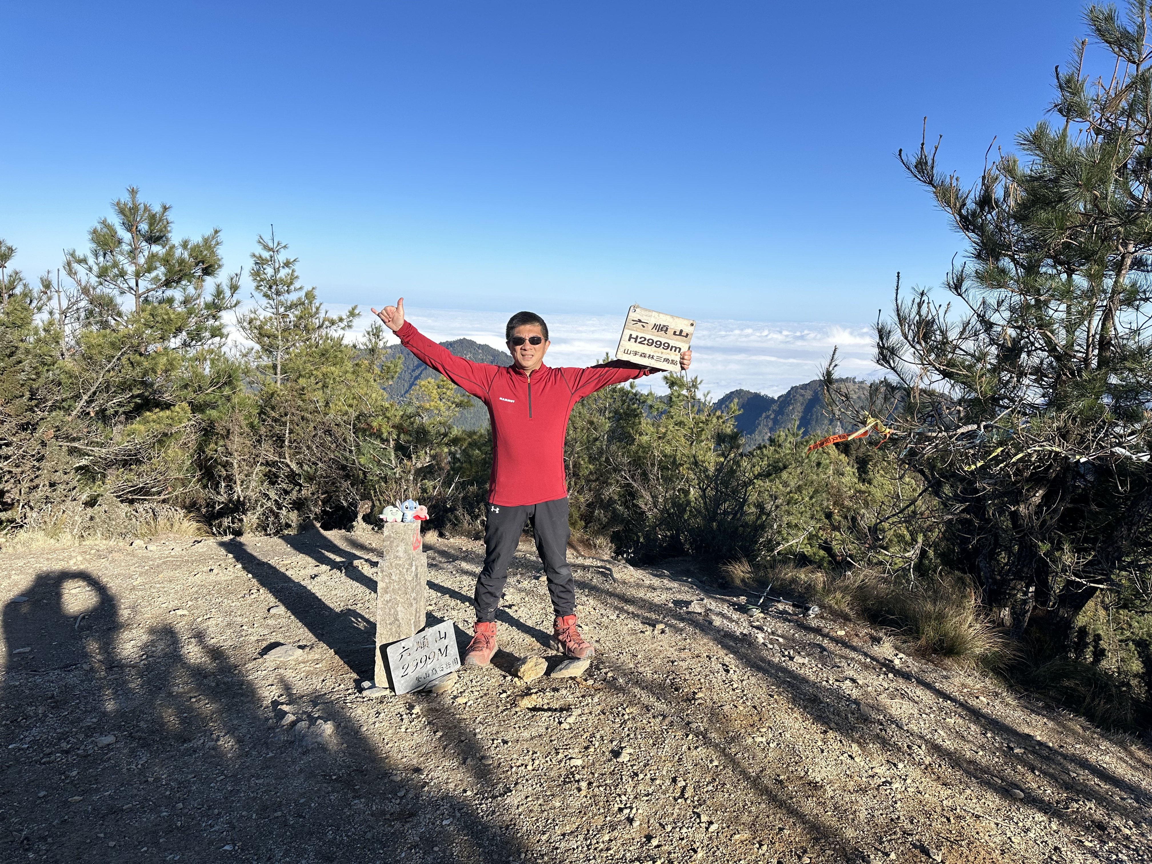 跑馬燈:六順山,抵達!百岳排名099,鐵牌上寫著標高H2999m。16:35