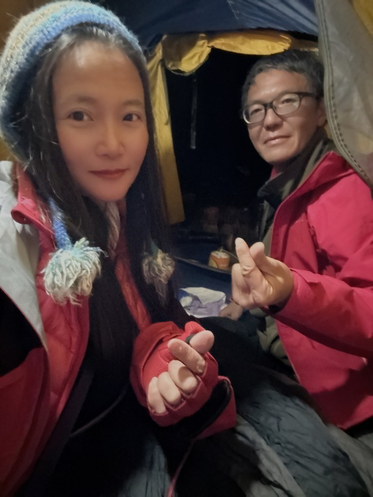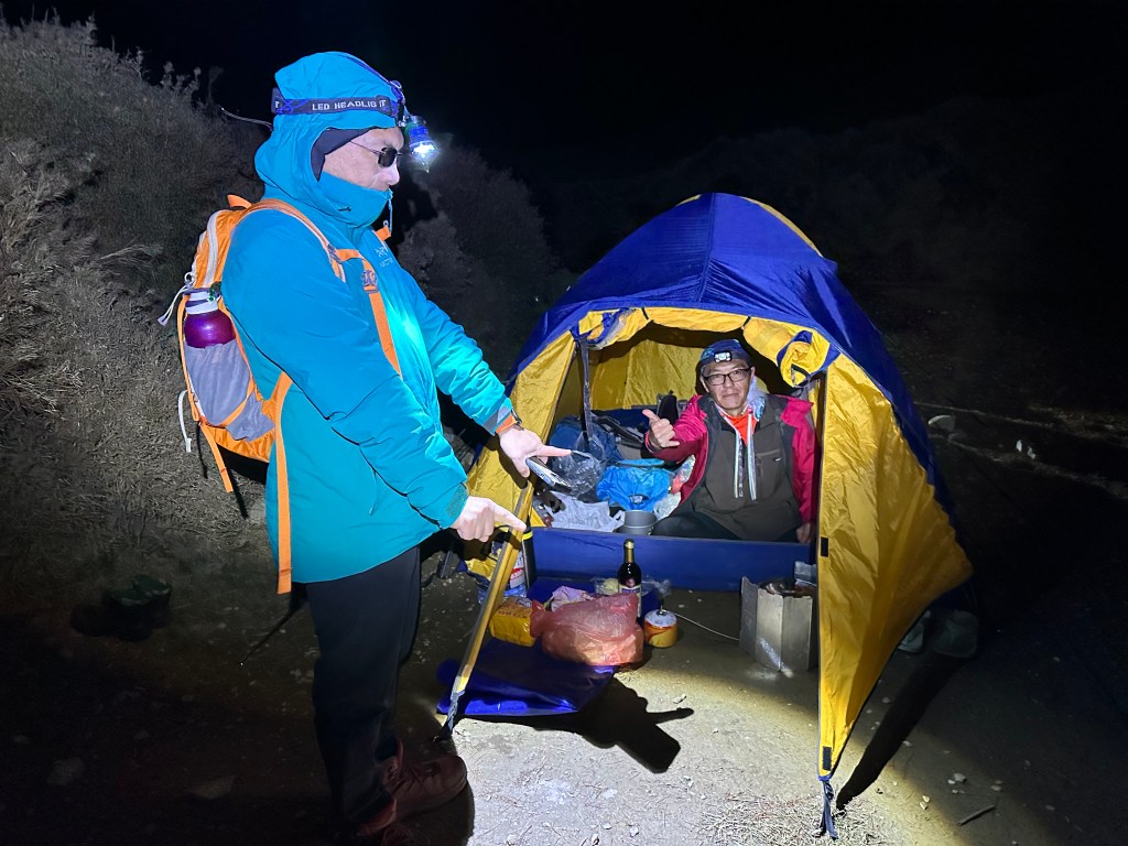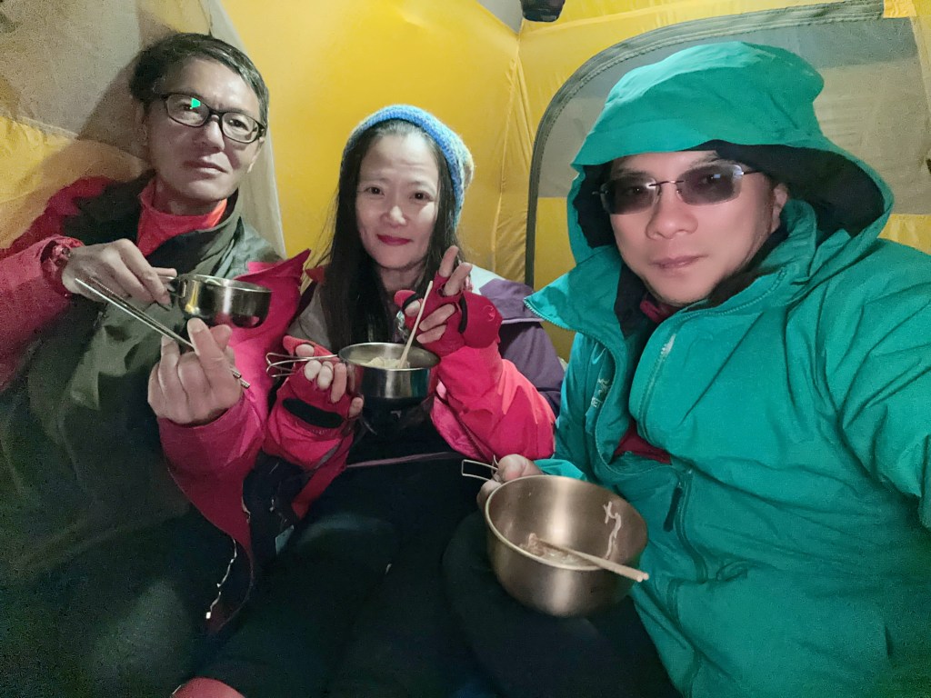睡前,總感覺溫度已降到極低,應該逼近為0度C,但天氣超好,恰好無月光顯現出滿天星空,看來第二天必然是萬里無雲的天氣。根據接駁大哥大腦所說,這兩天是過去一個月來天氣最好的兩天,我們真是幸運!