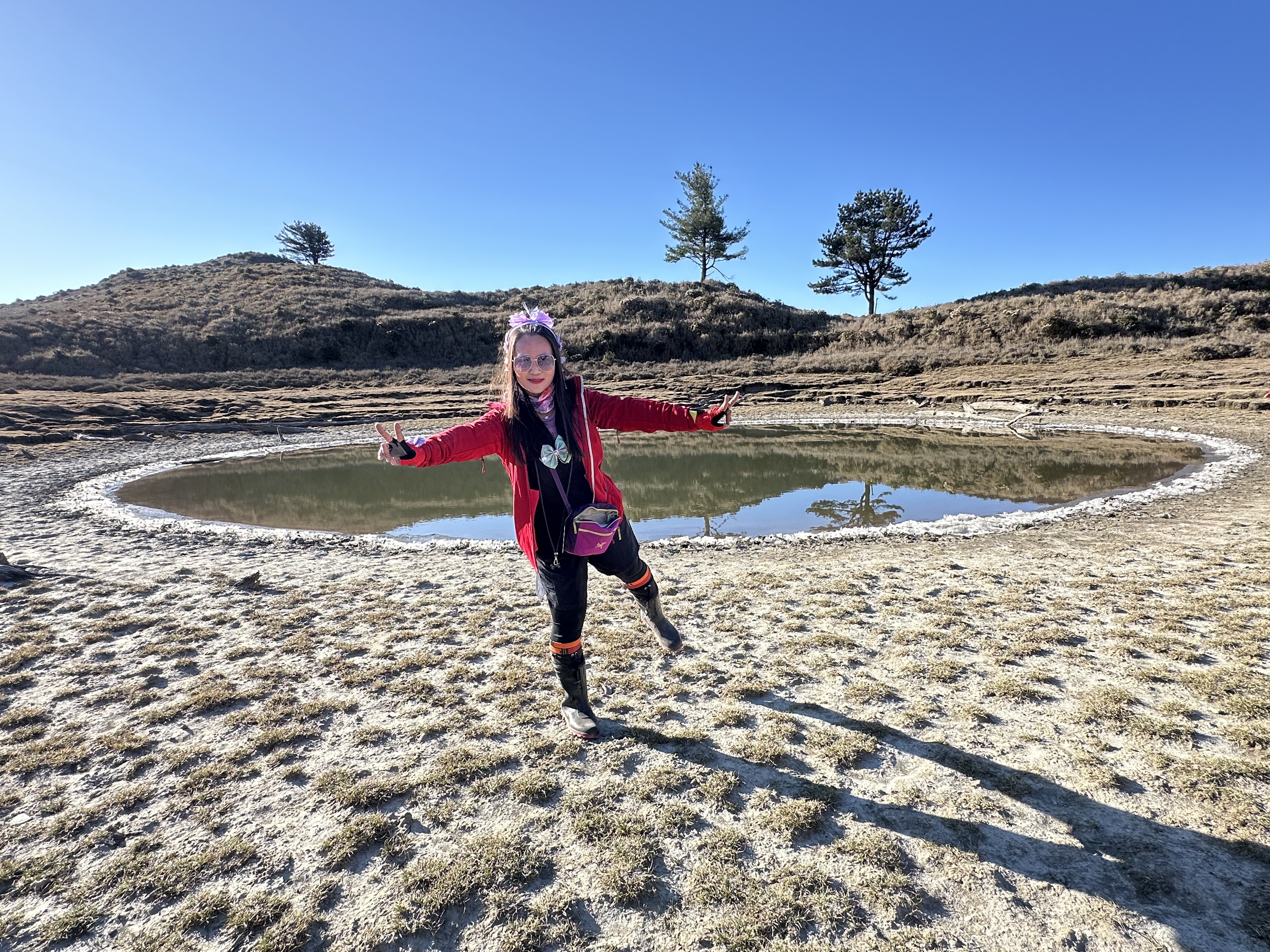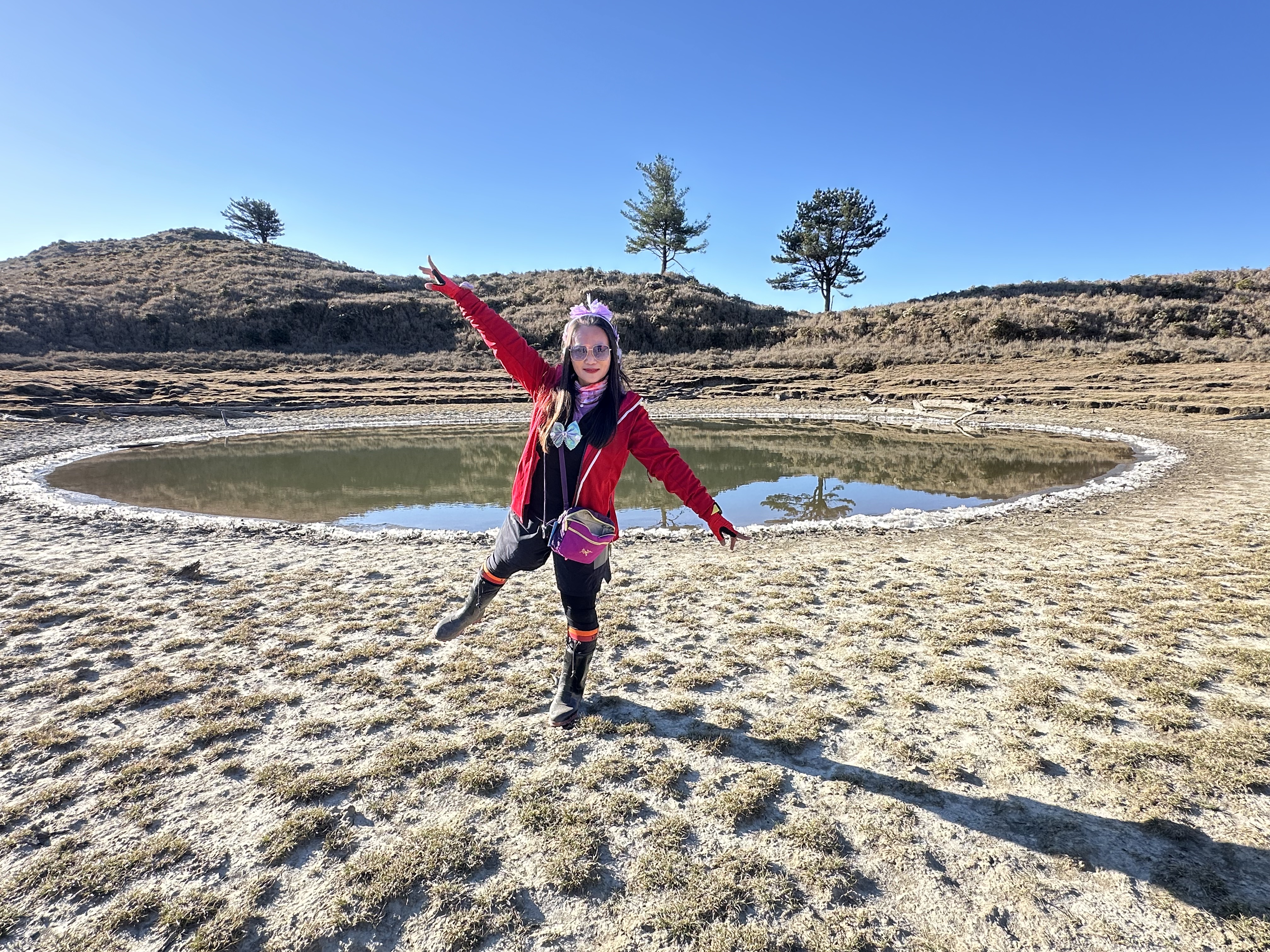我們在七彩湖及七彩湖妹池這裡待到了早上8點半,一行五人將各自分眾合流的拍攝起來,9點時回到了七彩湖營地,並花了半小時收帳整理背包。