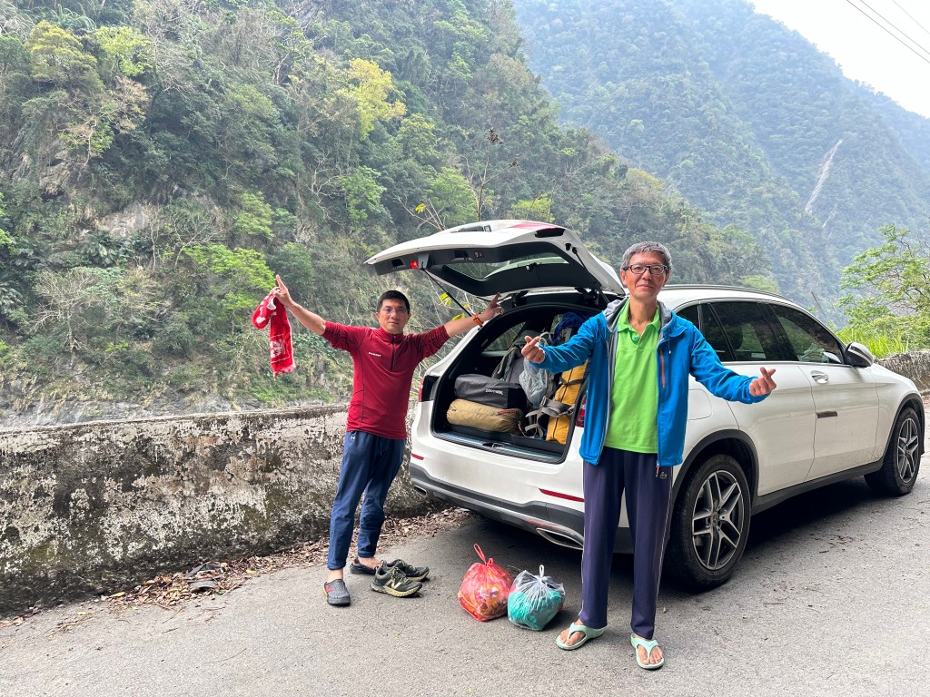 接著,就搭上接駁車,一路由支19K往孫海橋回程,途中在支13K的台電招待所載上了單騎上七彩湖的黃大哥,並一路在36.5K的孫海招待所及海天寺、23.5K的六分所、10.5K的拉夫嵐舊址等處休息。並於下午3點回到丹大林道0K處,完成了接駁車的過程。