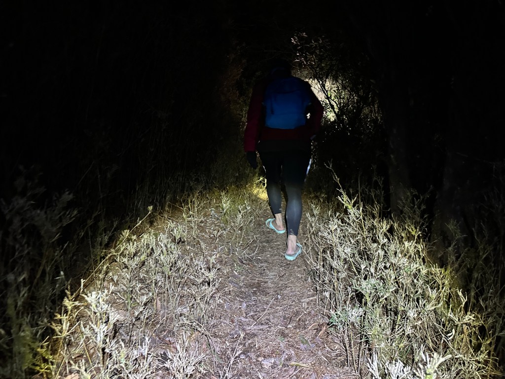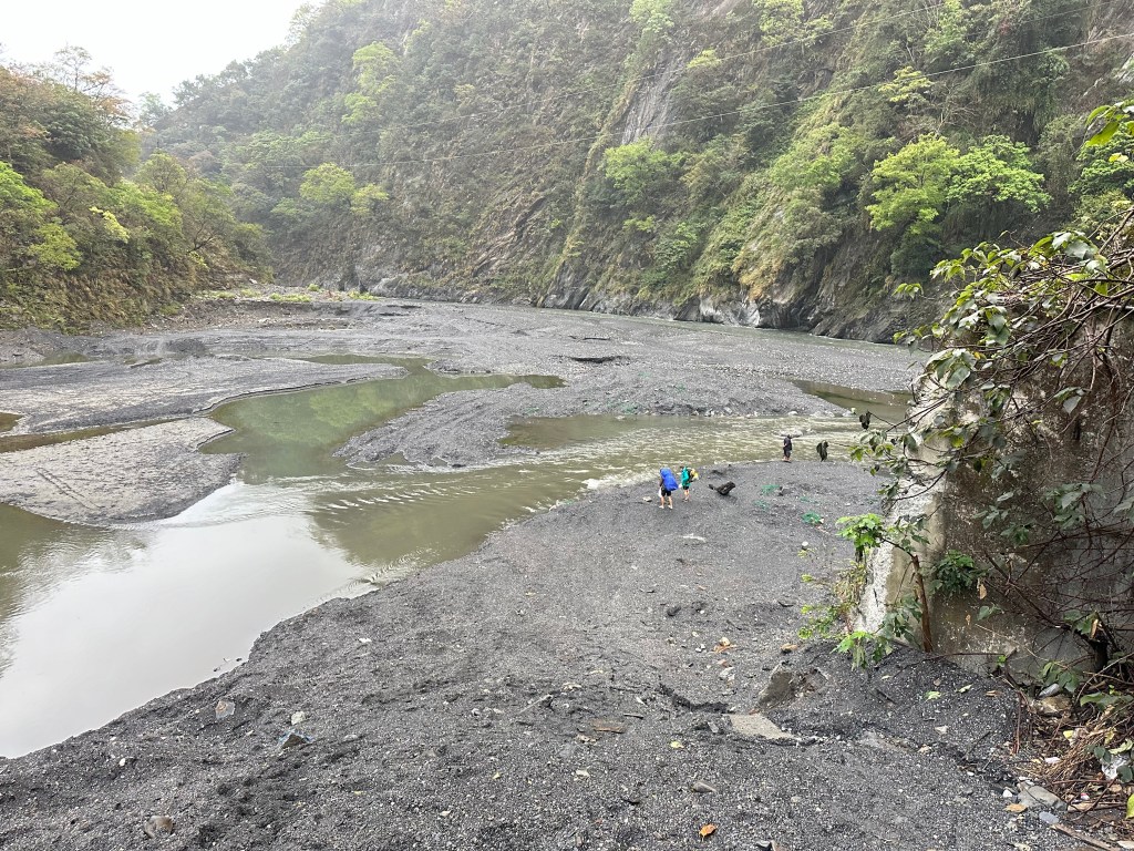 大伙事先都有過溪的準備,必須要將褲子拉到膝蓋上,大概就不會碰到水。出發前已經連續下了三天的雨,一直到出發這一天的凌晨雨勢才逐漸停止,因此路面都是溼的,但中央氣象署預測,今天中午過後就會出現萬里無雲的狀態,但此時清晨的氣溫只有6度C,好冷。