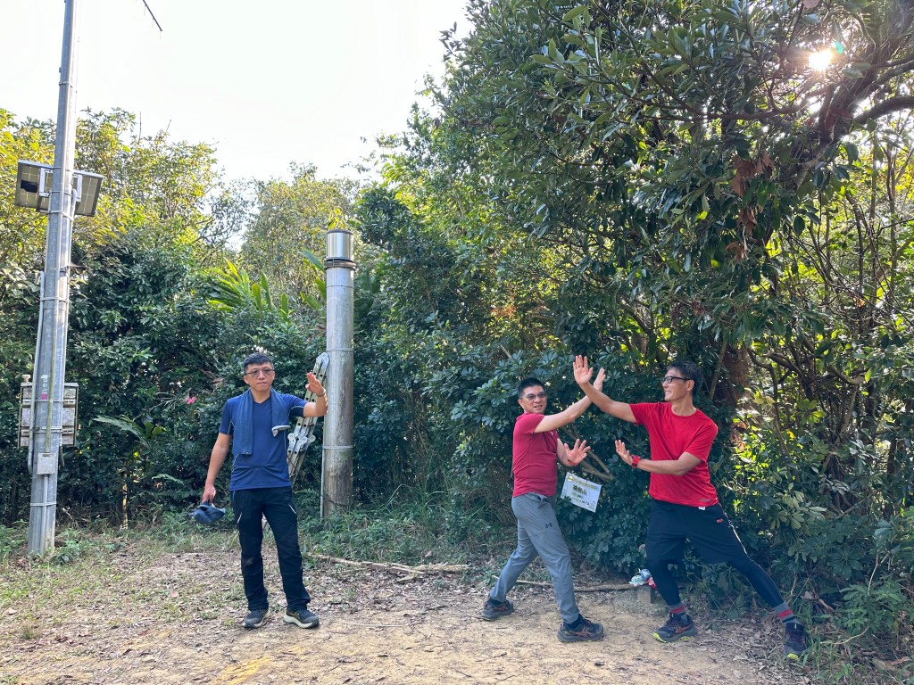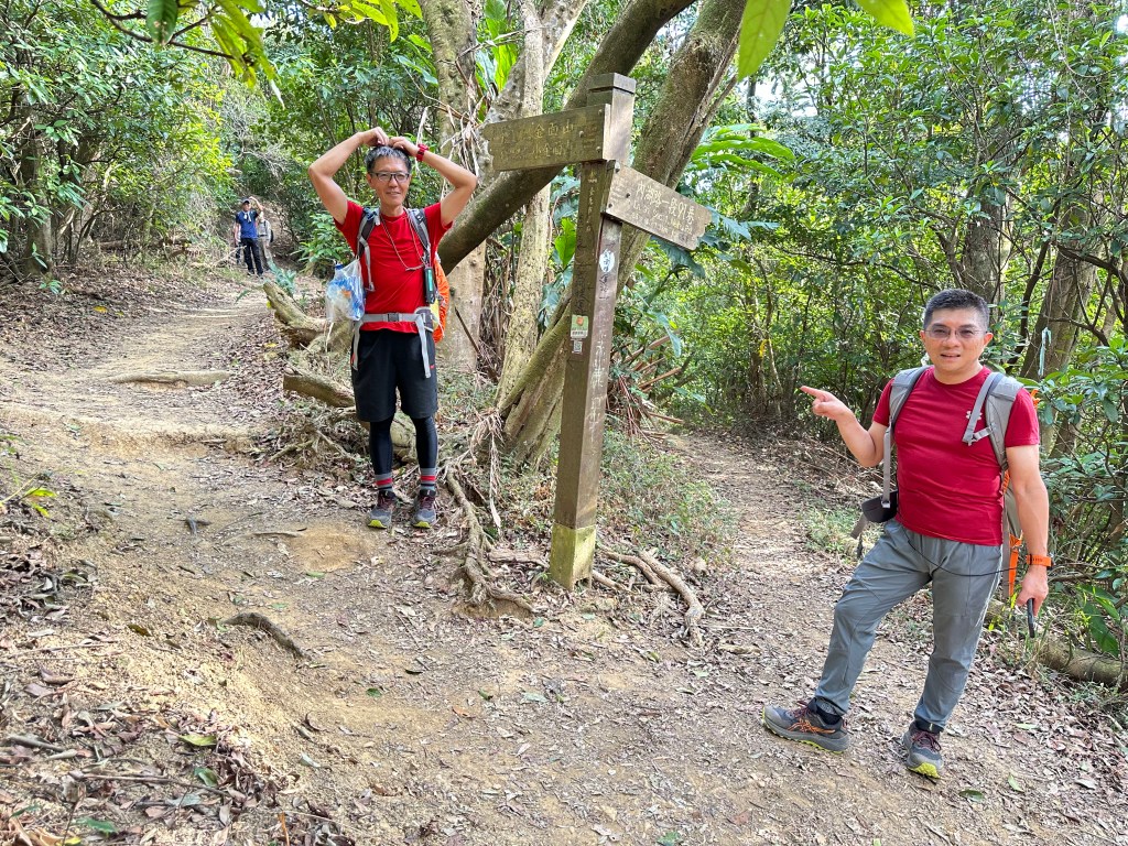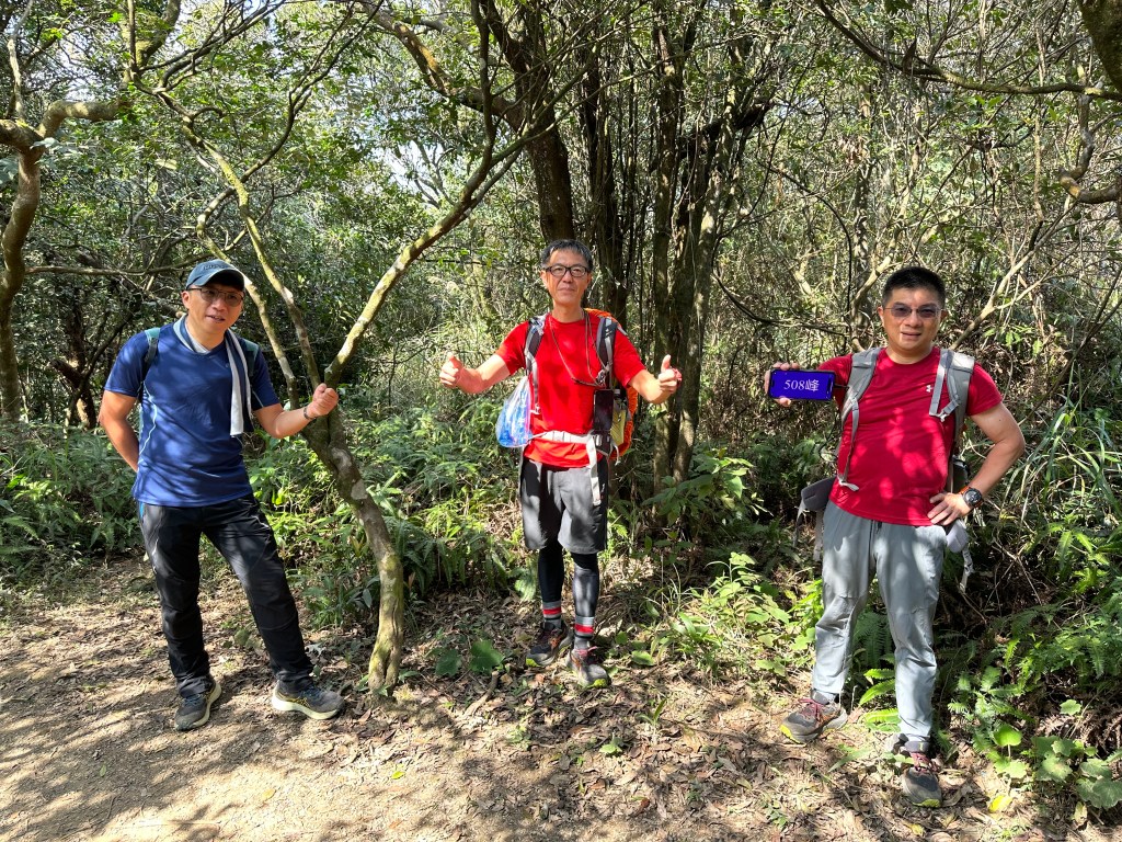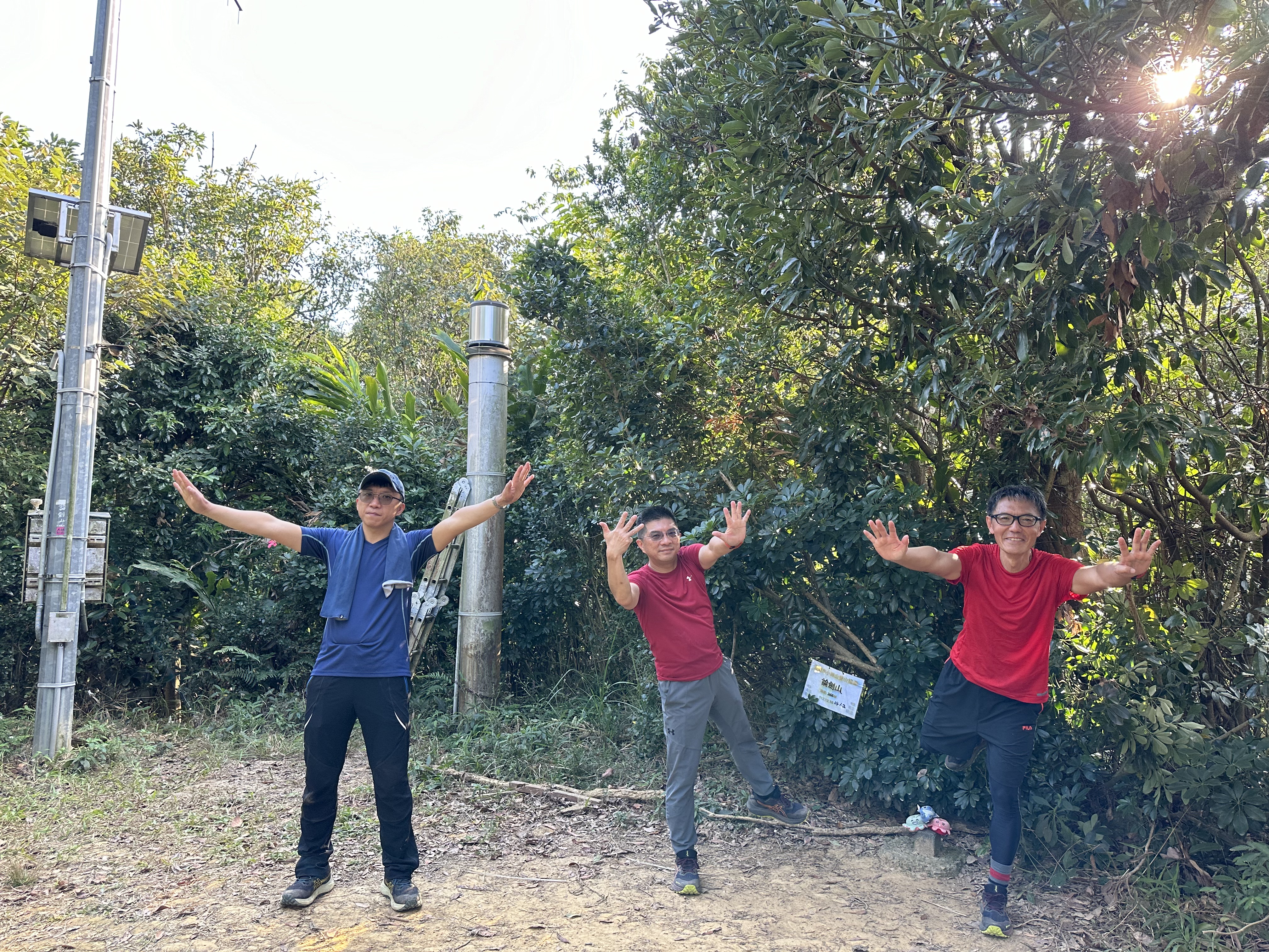 幻燈片:走一下就到了,碧湖山。由於今天要走的路線必須要友愛心的形狀,後面的行程就必須要按圖索驥不能亂走的。左起:Jun、我(Gosen)及嘉鴻。09:26