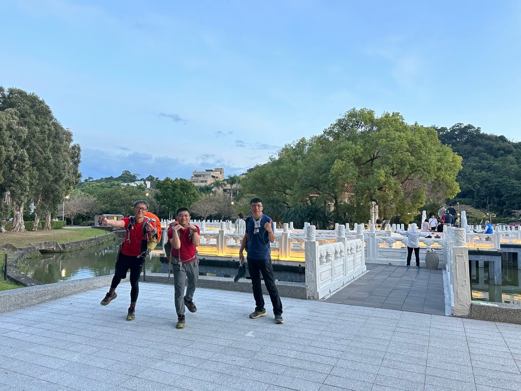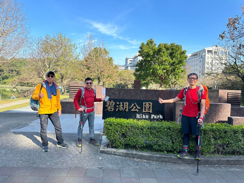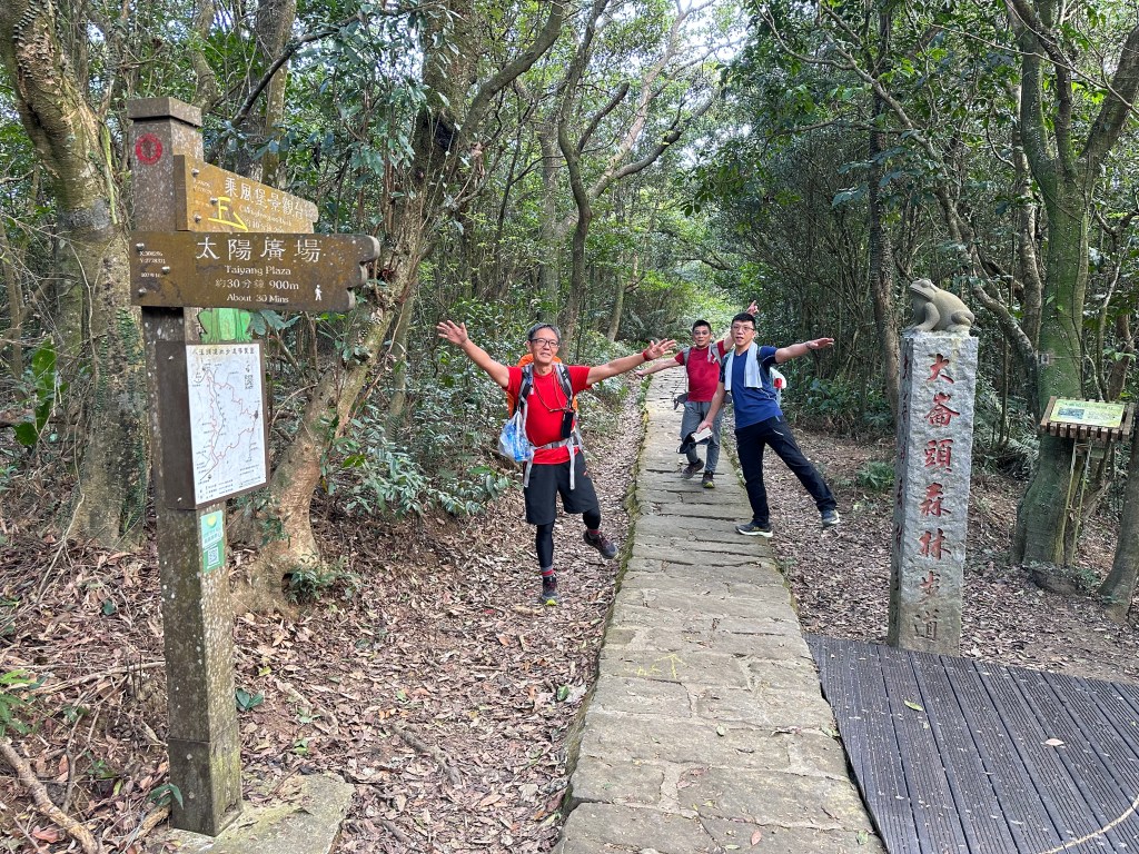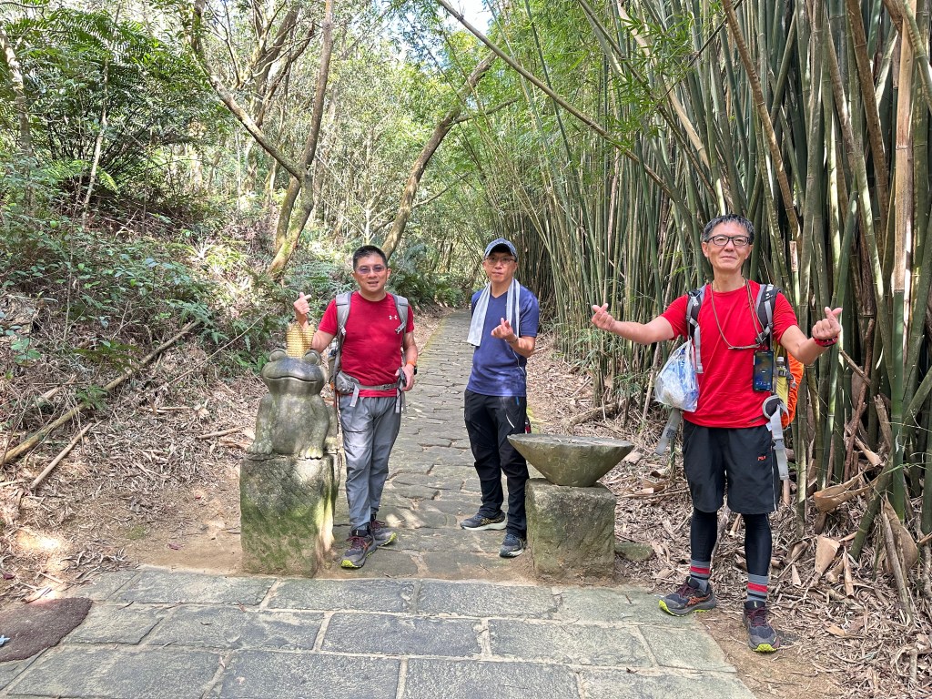 幻燈片:走一下就到了,碧湖山。由於今天要走的路線必須要友愛心的形狀,後面的行程就必須要按圖索驥不能亂走的。左起:Jun、我(Gosen)及嘉鴻。09:26