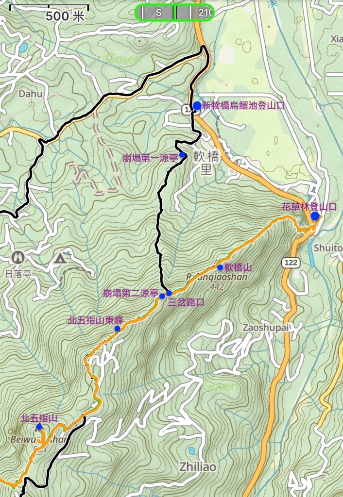 今天路線的前段,軟橋山-北五指山-四崙頂山。起登到軟橋山有兩條路線可選: