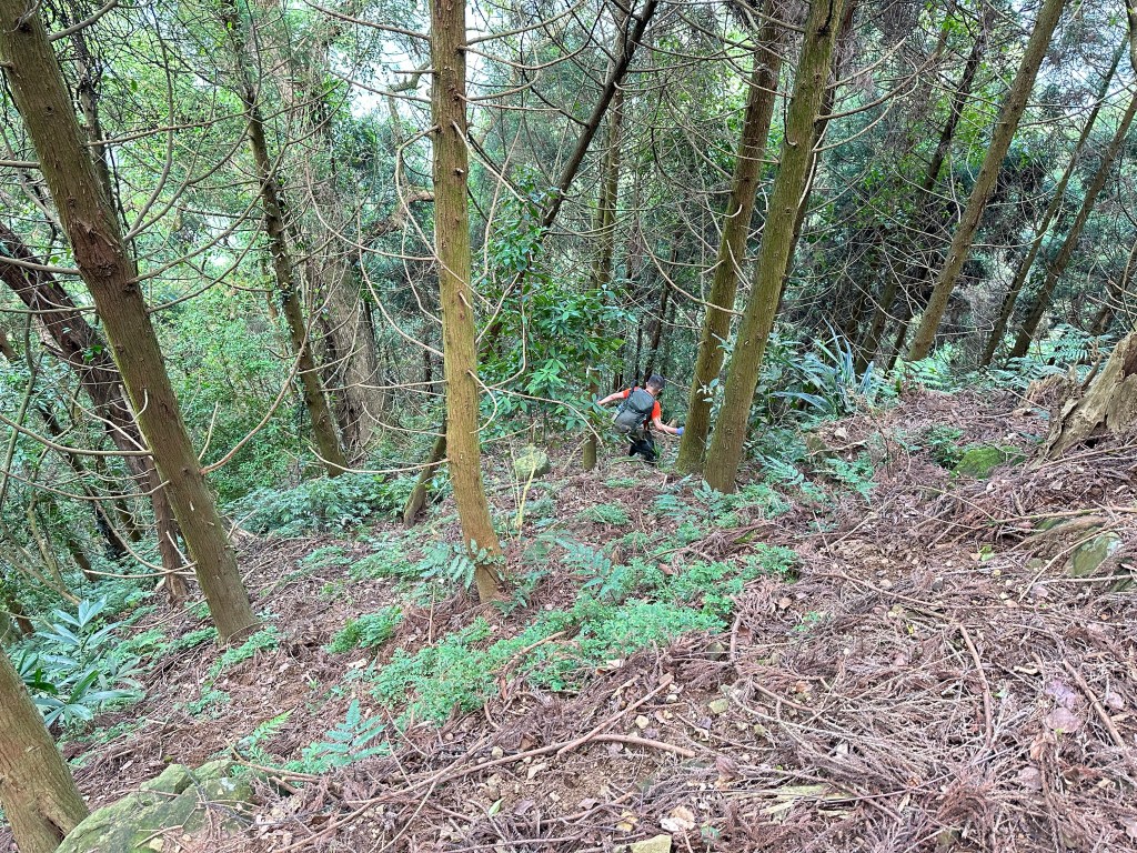 離開四崙頂山後,繼續往星月天空露營場方向走,再度接上山徑,一路陡滑下到大坪路,這一段的陡滑是真的非常陡滑超辛苦。有關軟橋山到四崙頂山我們之前的紀錄可以參考如下: