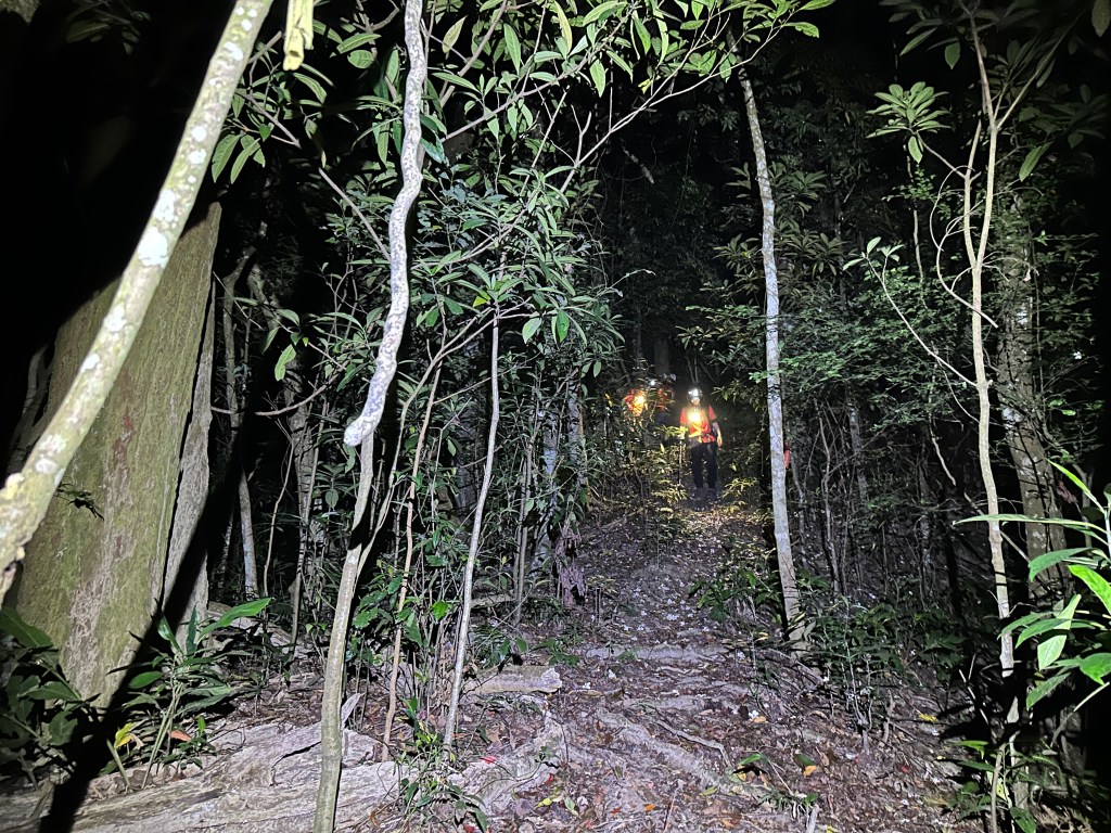 在內大坪山這裡,我們四人在此稍微休息了一下吃了一些行動糧。接下來,四人走的速度就有比較快了,一路通過橫屏背山東峰、今天最高點的四十二分山、食水窩山、而來到了橫屏背山以及其前方50m的坍塌瞭望台,這時已經超過下午5點半,大約在一個小時就要天黑。
