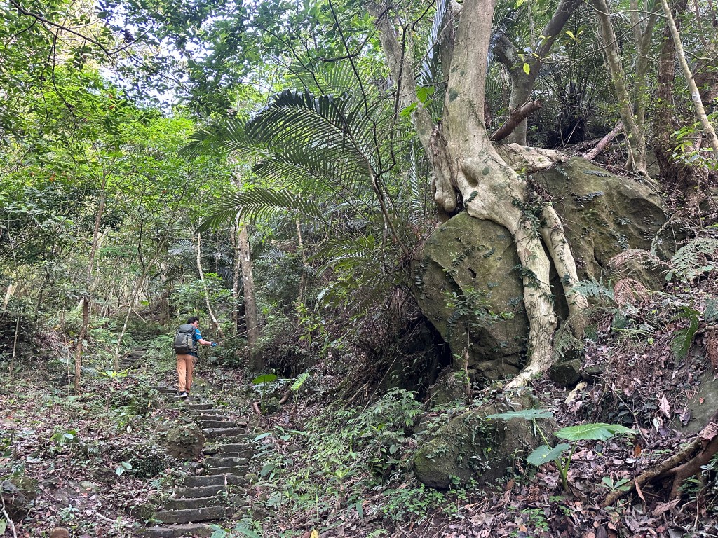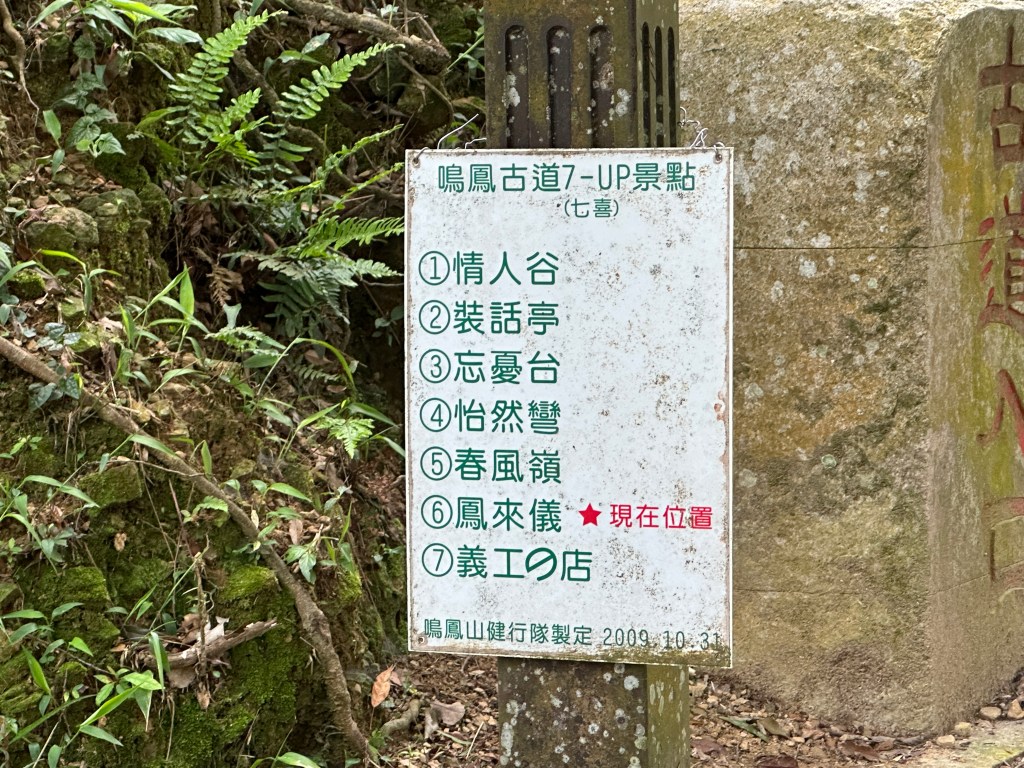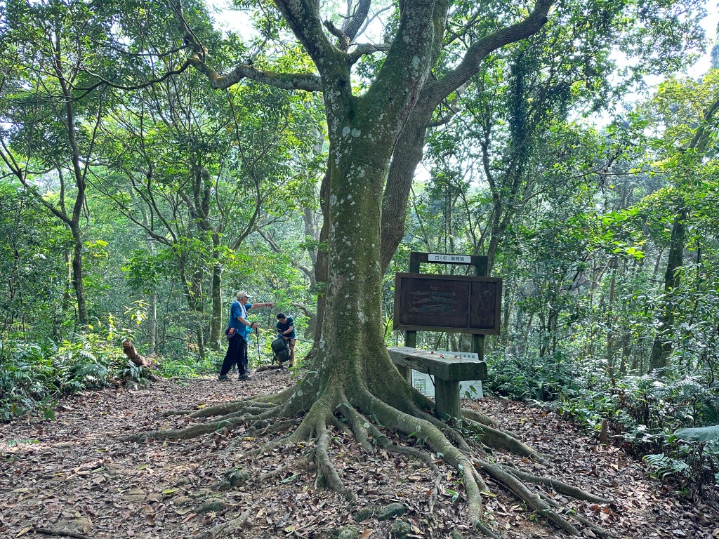 由三湖山往好樹山走,先沿著南長城步道接上鳴鳳古道一小段,下階梯來到雲洞宮,再接上苗22的鳴鳳道路開始踢馬路,這一段的距離共有5.9K。抵達好樹山在離線地圖上的位置,發現是座落在「福泉」廢棄廠房圍牆內的空地上?Smile與我由圍牆邊的高土坡往圍牆內的空地上看,發現已沒有三角點?或許已被剷除,就在其門口的一棵漂亮好樹前拍照留影。