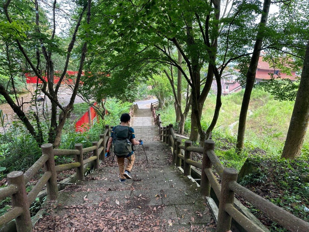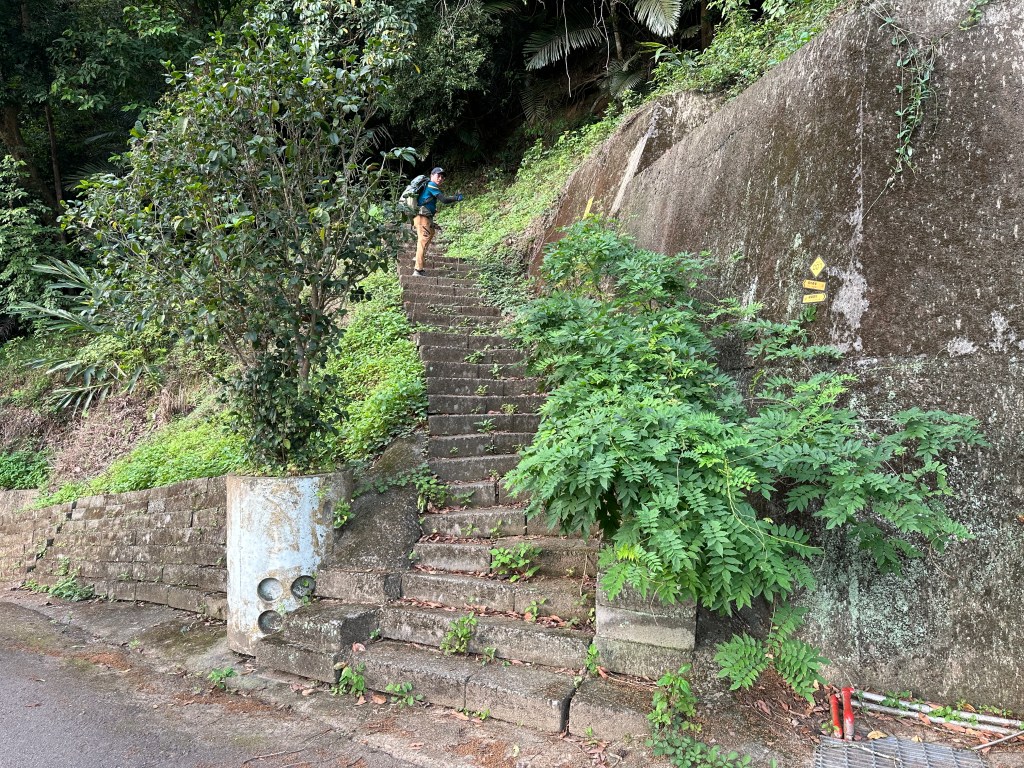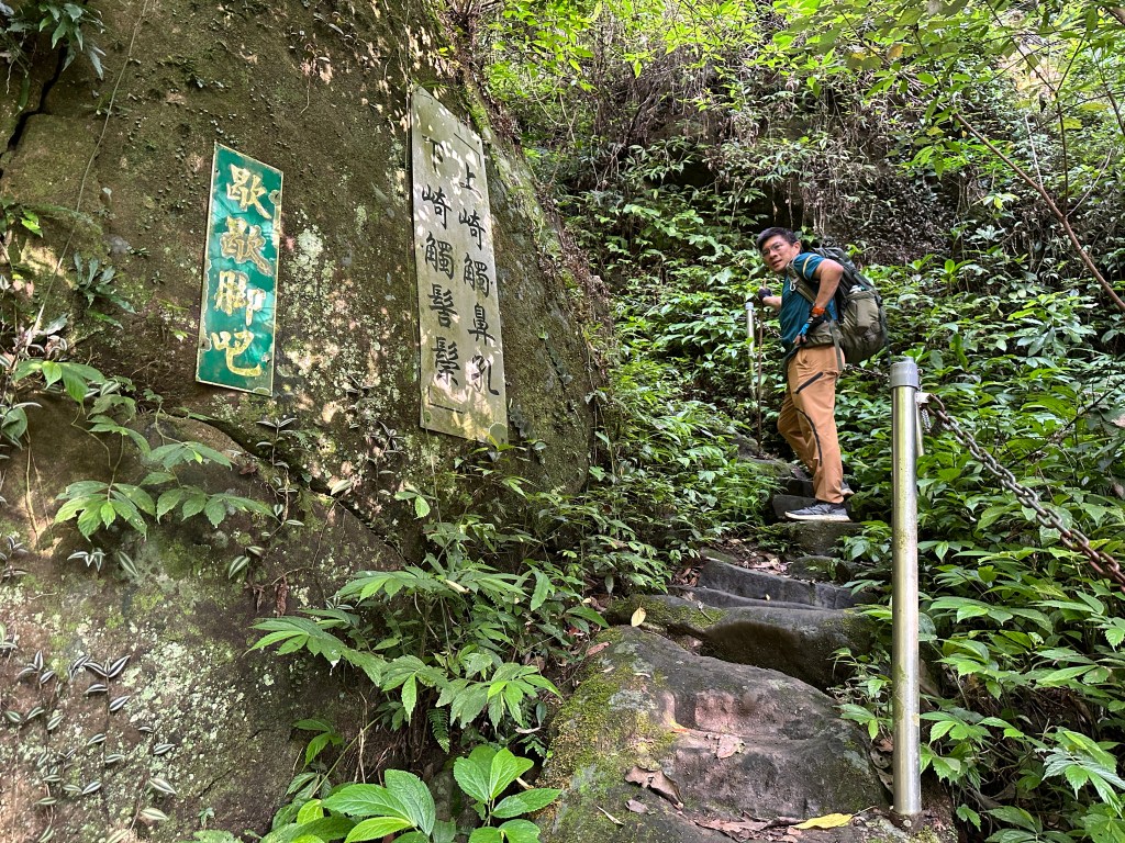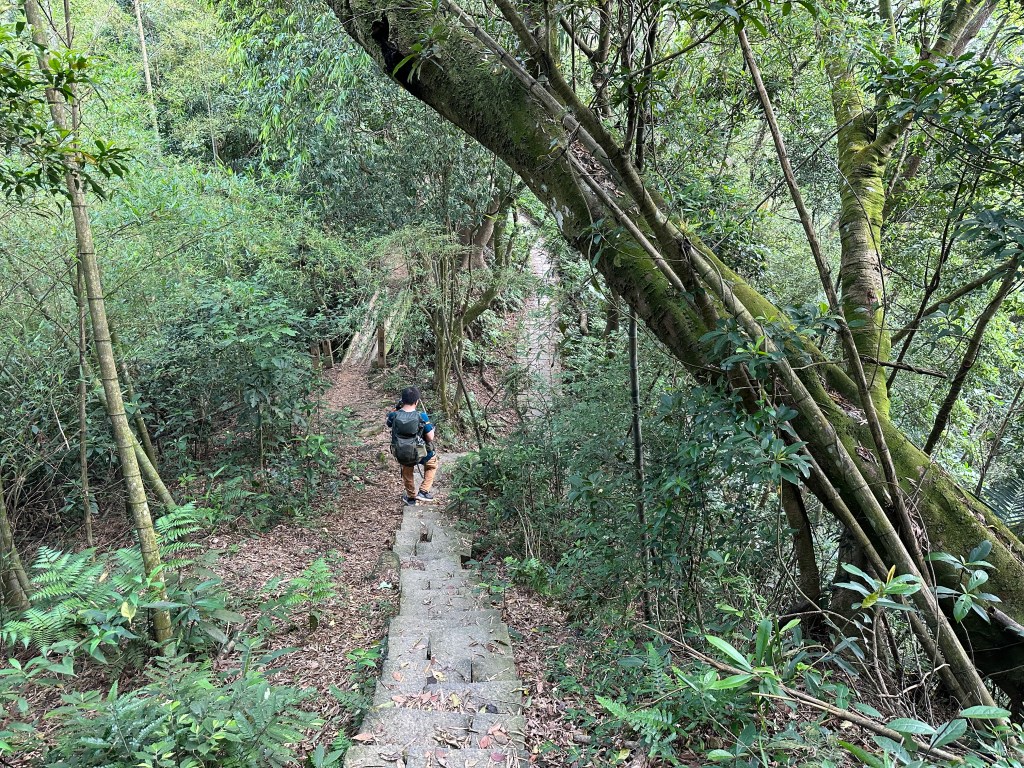 由箭竹凸山沿著產業道路一路陡上2K,來到普光寺後由左側階梯陡上到稜線上,這一段走200m可到水寨下山,這一峰是相對容易的一峰!