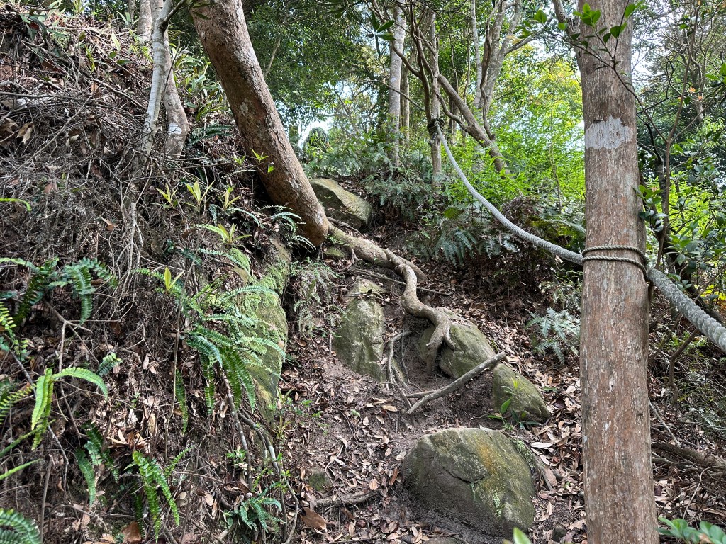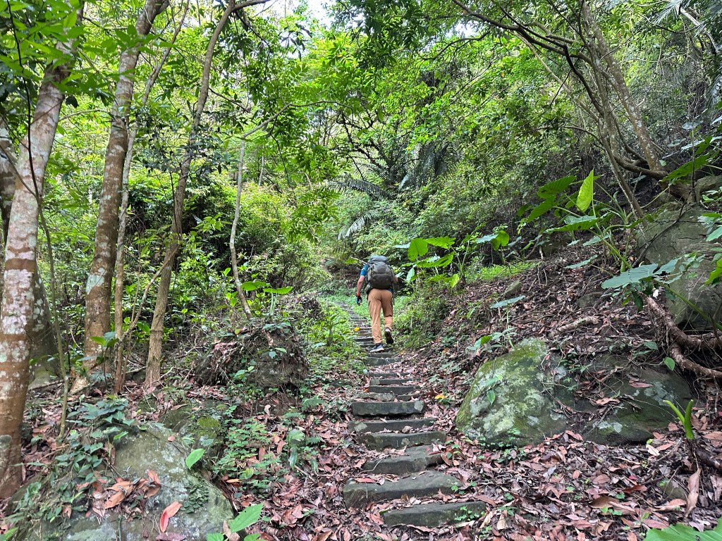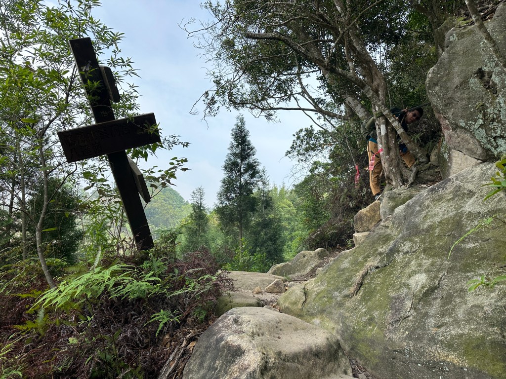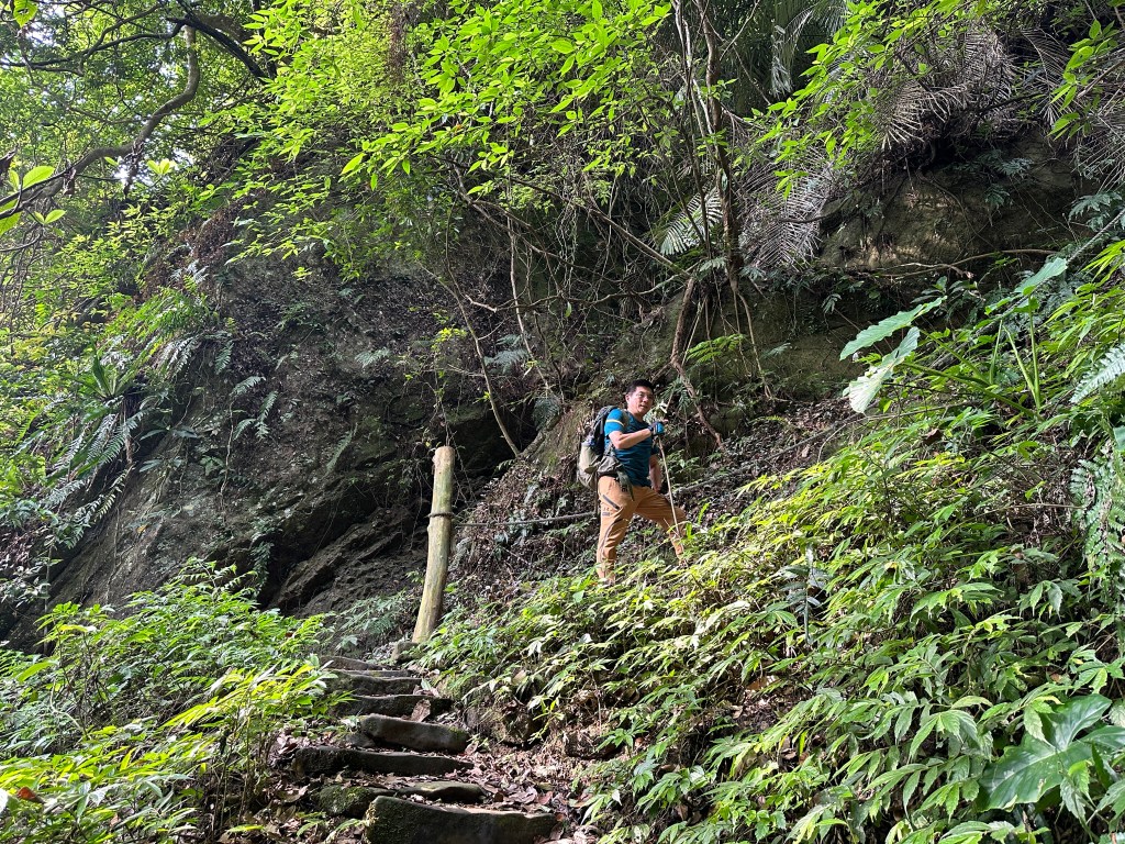 由箭竹凸山沿著產業道路一路陡上2K,來到普光寺後由左側階梯陡上到稜線上,這一段走200m可到水寨下山,這一峰是相對容易的一峰!