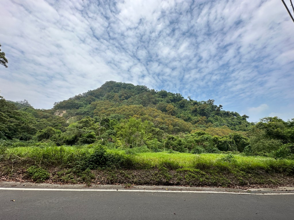 由濟世宮的海拔H70m持續陡上到岔路的H129m,過程中,陳大哥也騎著他的摩托車出來,經過我們時,問我們水夠不夠啊?我們回答,等會到明德水庫的7-11會買水,結果,陳大哥騎走後不久就又看到他折回?拿了兩瓶"冰的"礦泉水還有一盒麻薯給我們!真是受寵若驚!由枋寮坑山到天山,距離有2.6K。