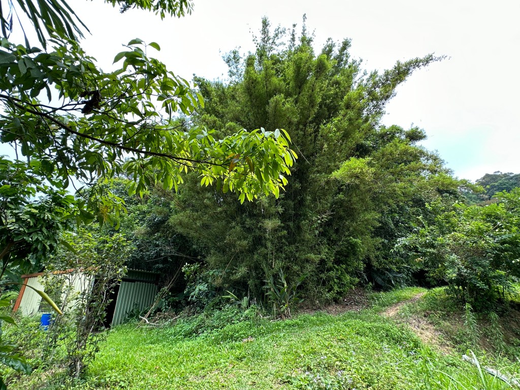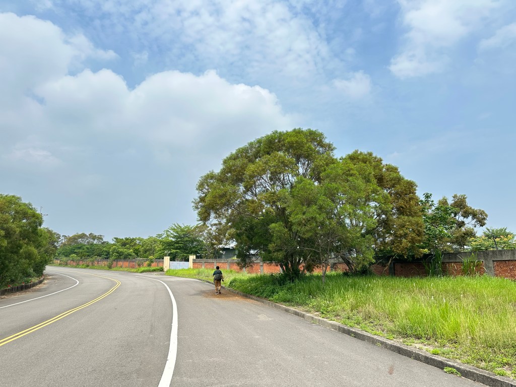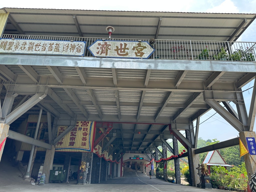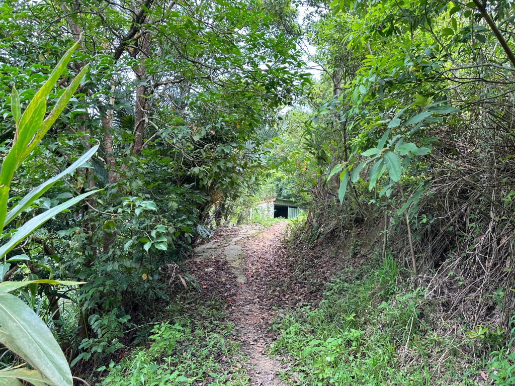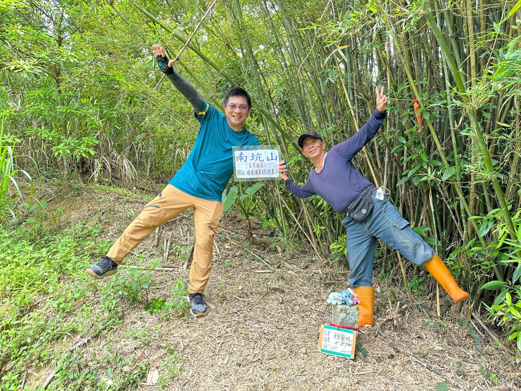 再由好樹山往枋寮坑山走,繼續踢著苗22公路,到達濟世宮的岔路(H129m)時,往左岔陡下到濟世宮,通過濟世宮持續陡下到海拔H62m的南坑橋前左轉而入。一進入細小平緩山徑,此時恰有一台摩托車也騎進來,正在好奇?順便問了一下車主陳大哥,這裡是不是有一個三角點?陳大哥馬上說,有啊!在我的果園裡!非常好客的陳大哥(@小勝哥的天然果園),還說要煮泡麵給我們吃,不行!目前還在趕路中啊!在此與陳大哥閒聊一番,沒想到再回到濟世宮已經12:30!原本預計通過天山是要在12:00前的,只好,邊走邊改變計畫。