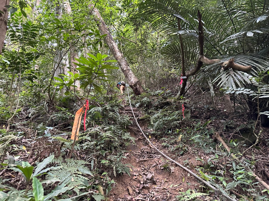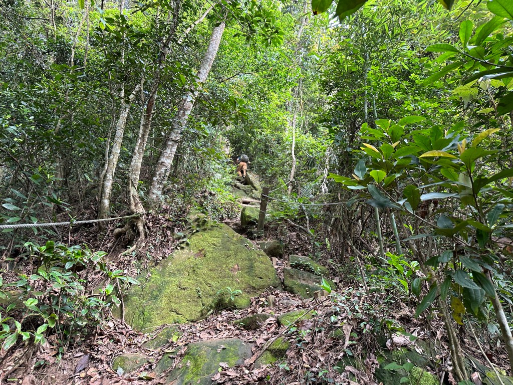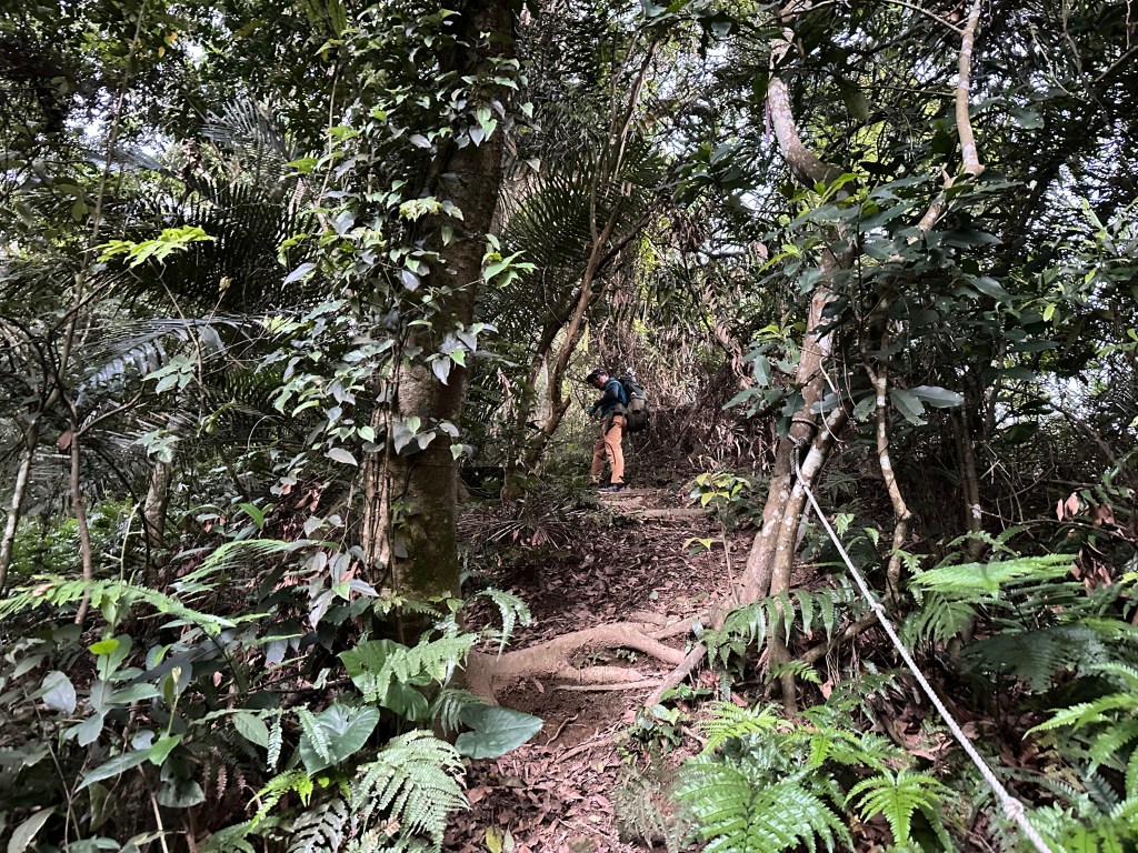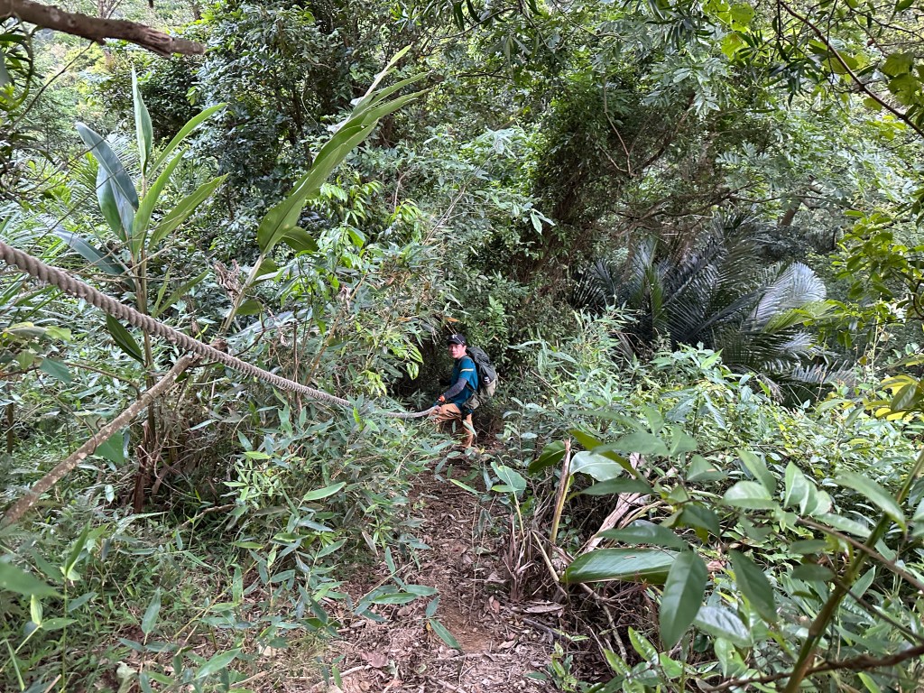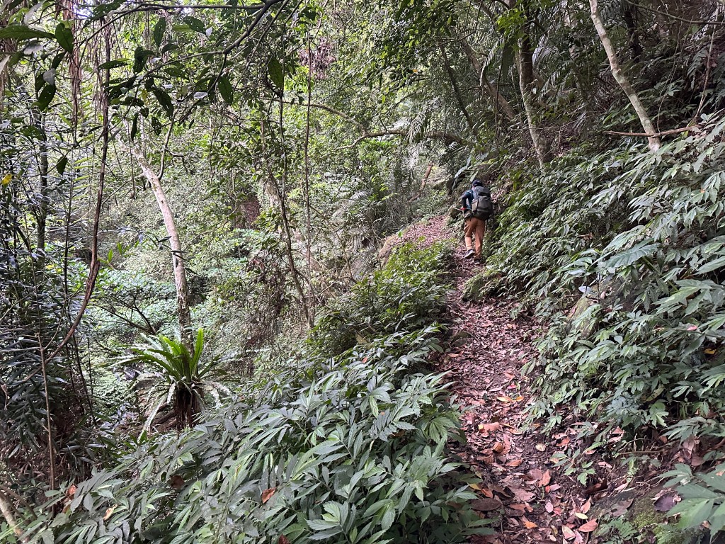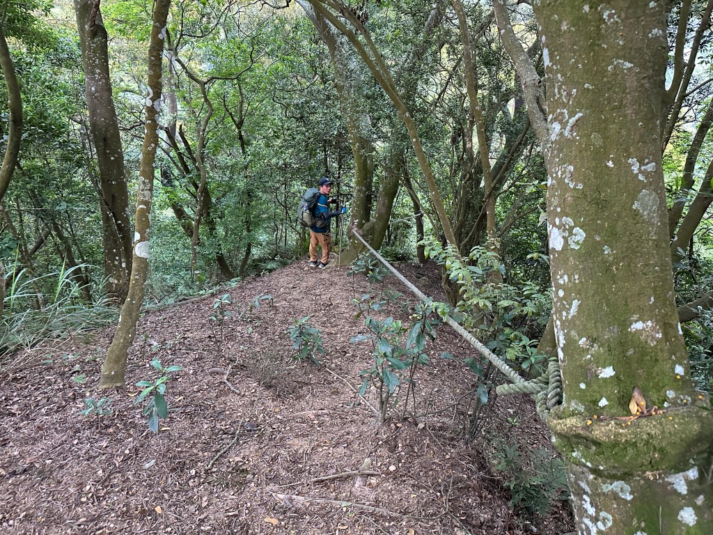 由帽盒東山走回到三岔路口,開始陡下,要在100m的距離裡陡下海拔60m!這一段超級陡!
