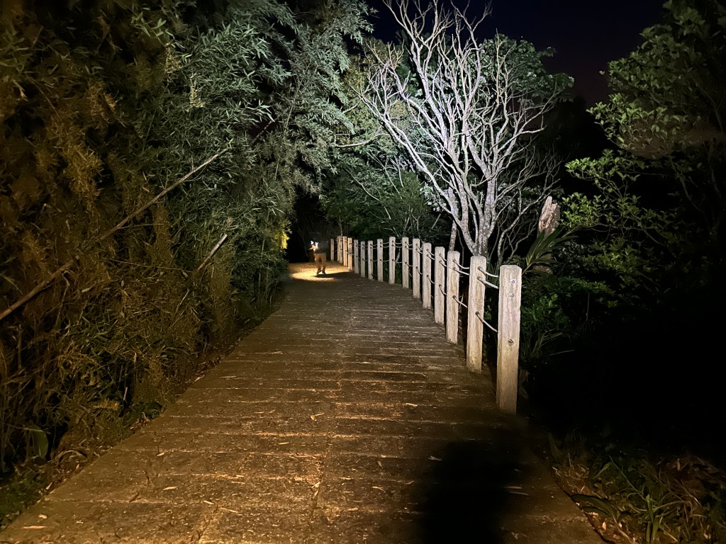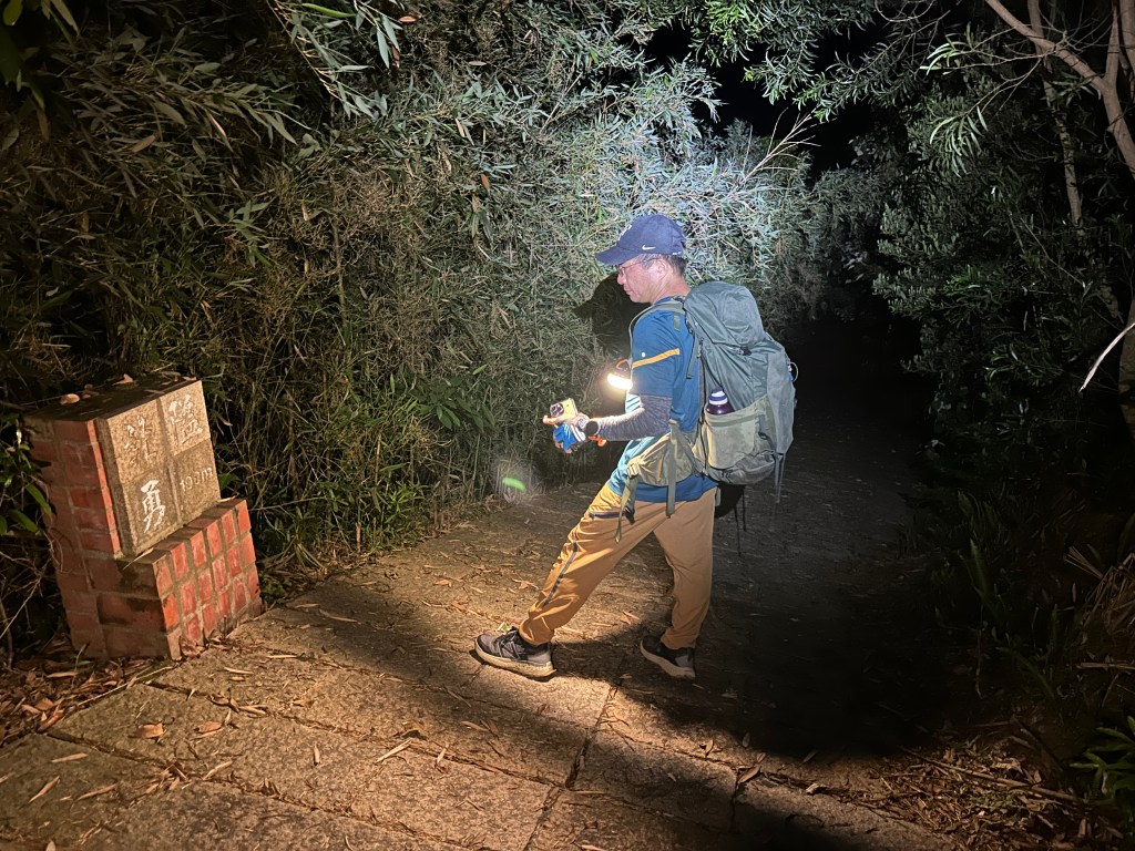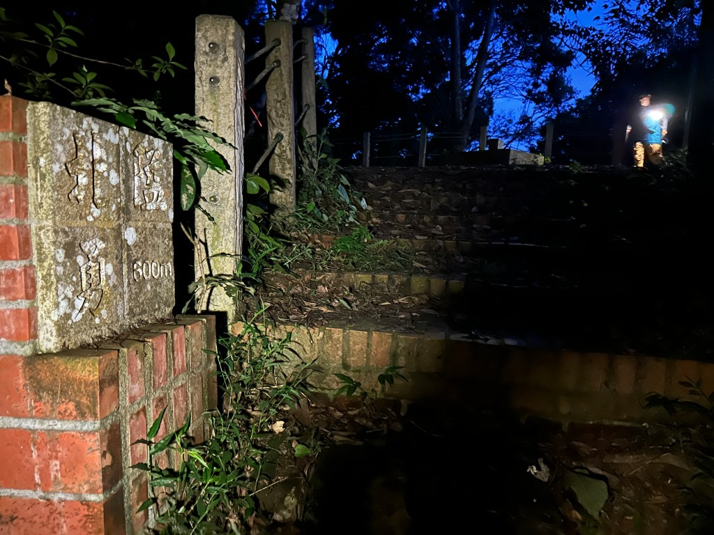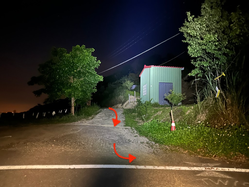 拍完照,往北隘勇古道方向要走0.7K接上苗22線,沒有想到,這一段路徑也超級好走!因為已經摸黑,居然讓我們看到步道兩旁有一大叢的螢火蟲!