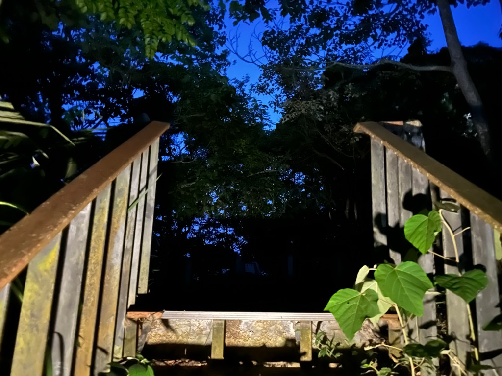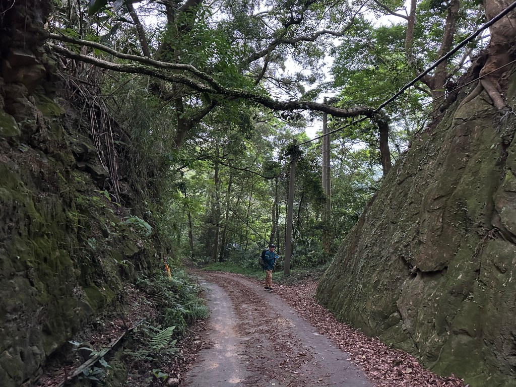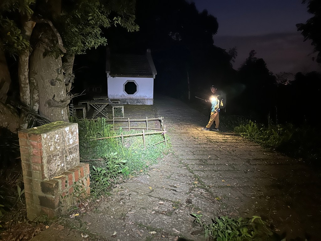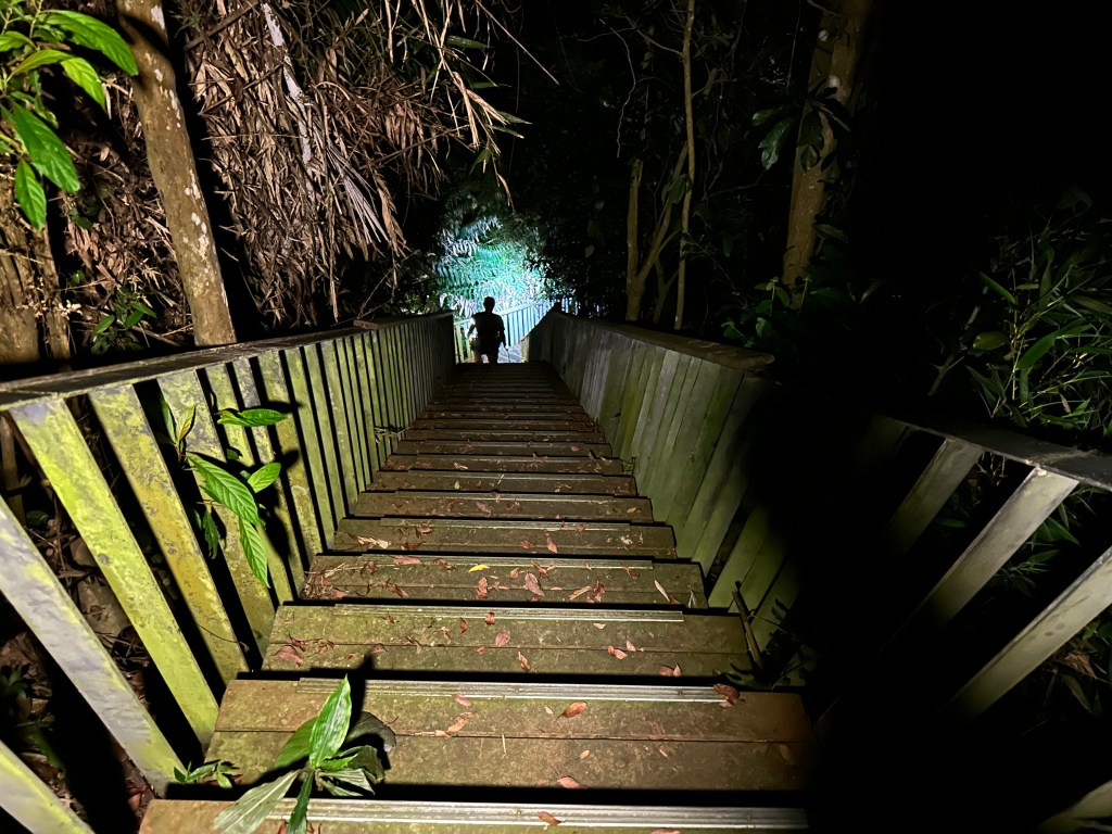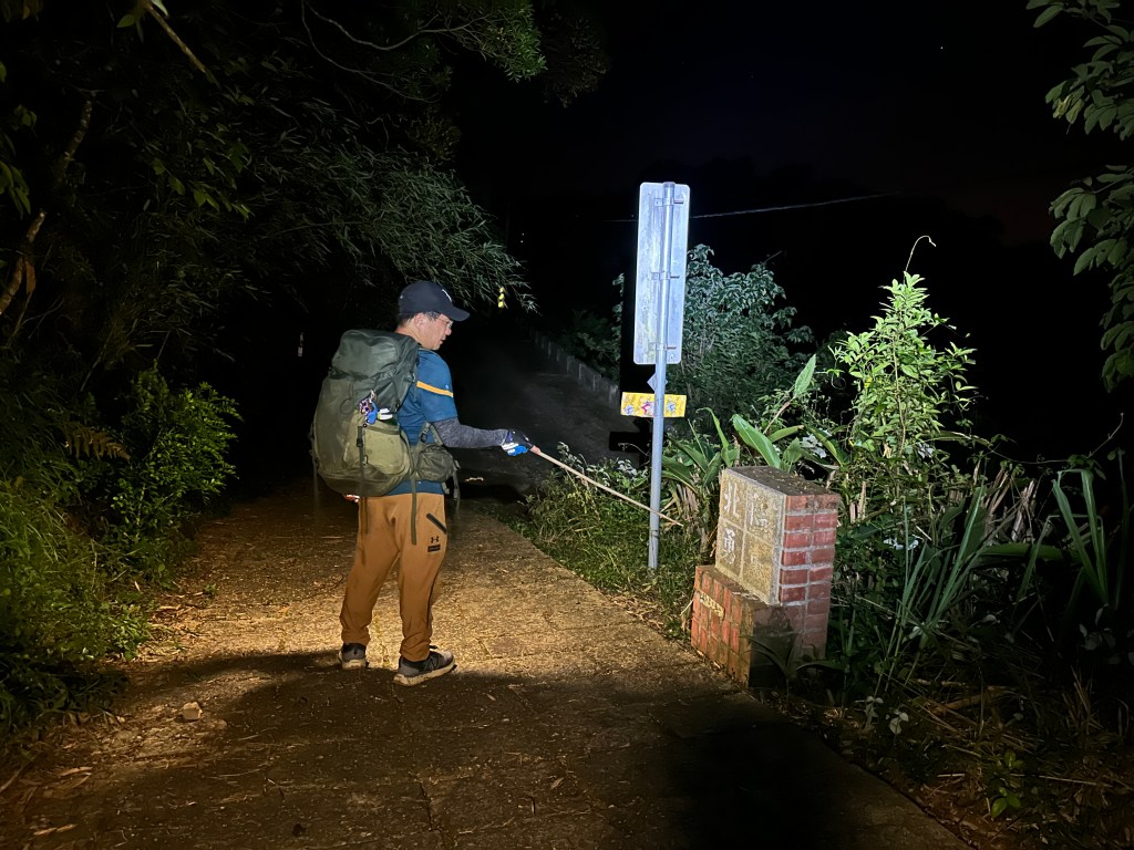 拍完照,往北隘勇古道方向要走0.7K接上苗22線,沒有想到,這一段路徑也超級好走!因為已經摸黑,居然讓我們看到步道兩旁有一大叢的螢火蟲!