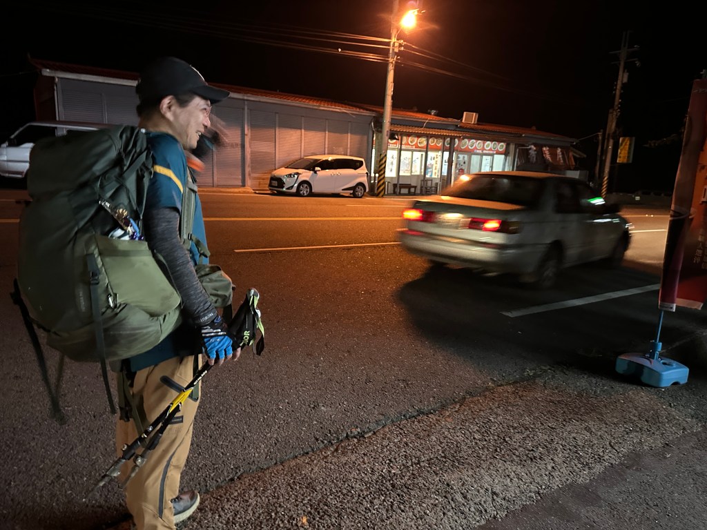 接上苗22線後,要走2.8K接上台3線,再沿著台3線走1.8K回到全家便利超商。當Smile與我沿著苗22線下山走約0.6K後,萬籟寂靜的公路上居然出現的一台汽車經過!二話不說,住在雲洞宮的涂先生就停下來,問我們,要到那裡?接著,就較我們直接上車並直接載著我們殺到全家,讓我們少走了4.0K的距離,少花了約45分鐘的時間。而且,Smile與我正要道謝時,涂先生就將車開走了!