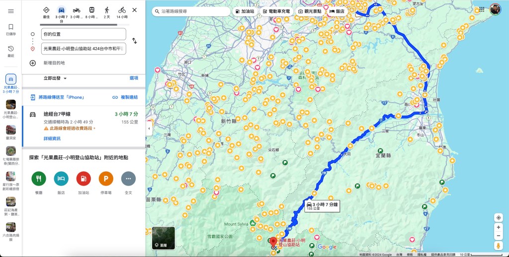 我們是自行開車由台北到光果農莊–小明登山協助站,再自行開車回台北。行程的前後接駁也都是委託王小明負責。