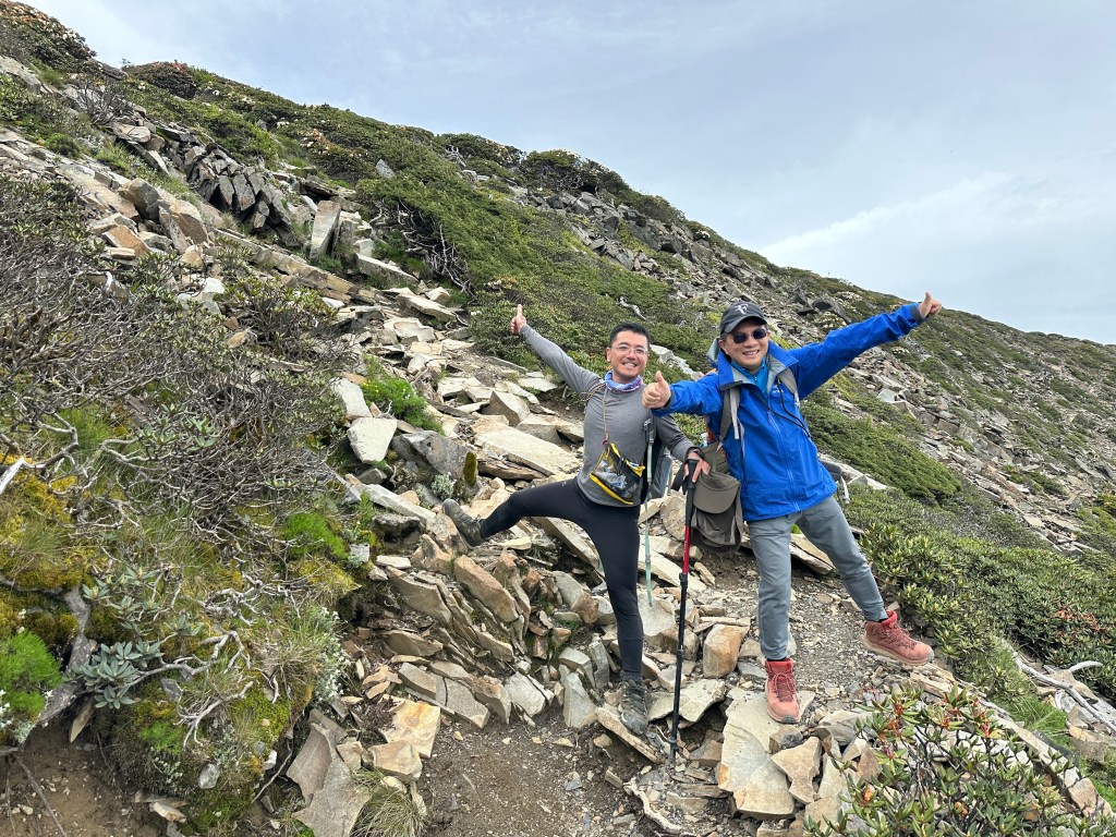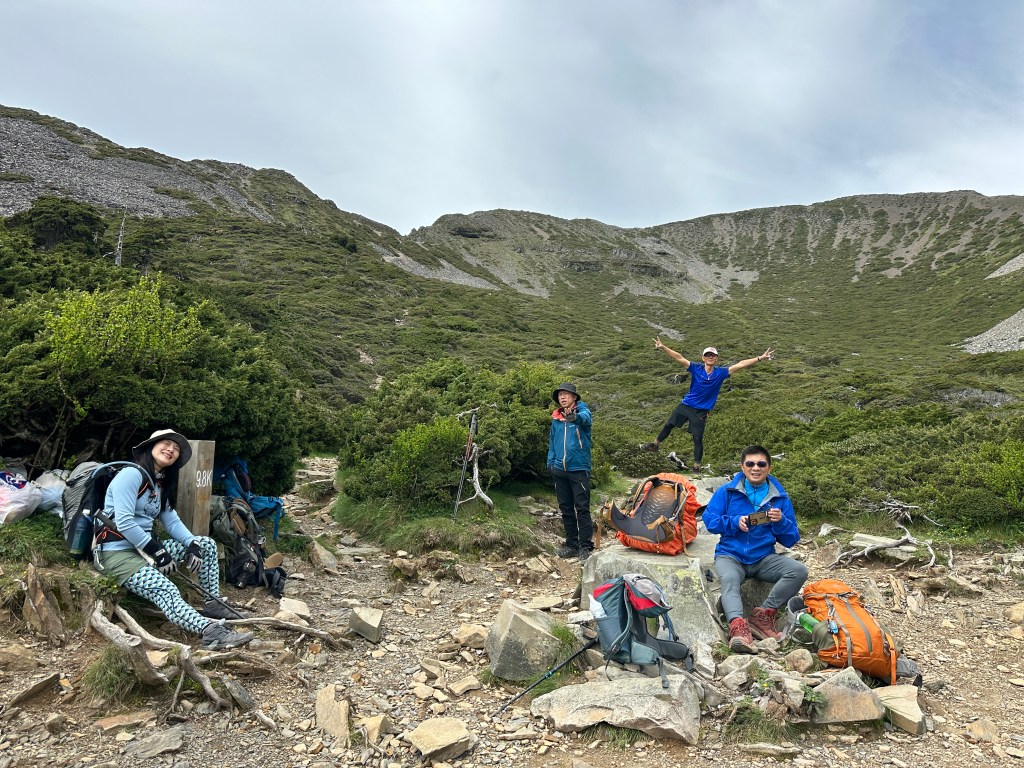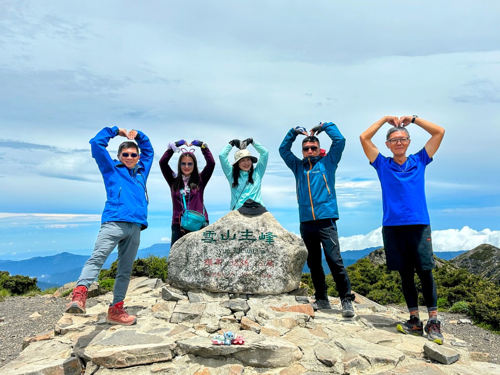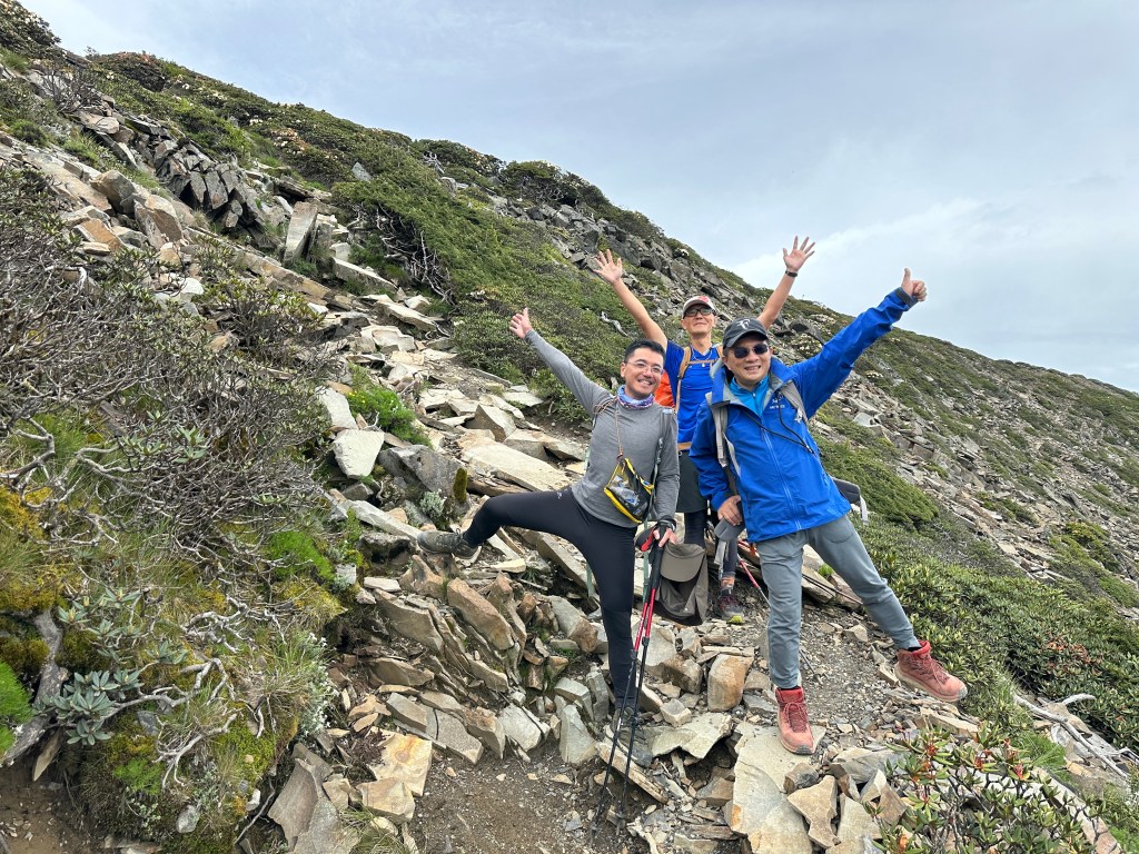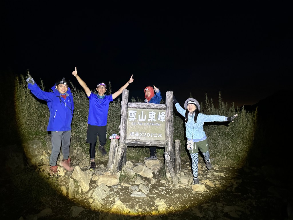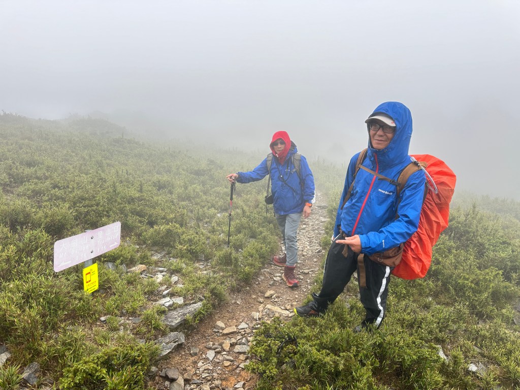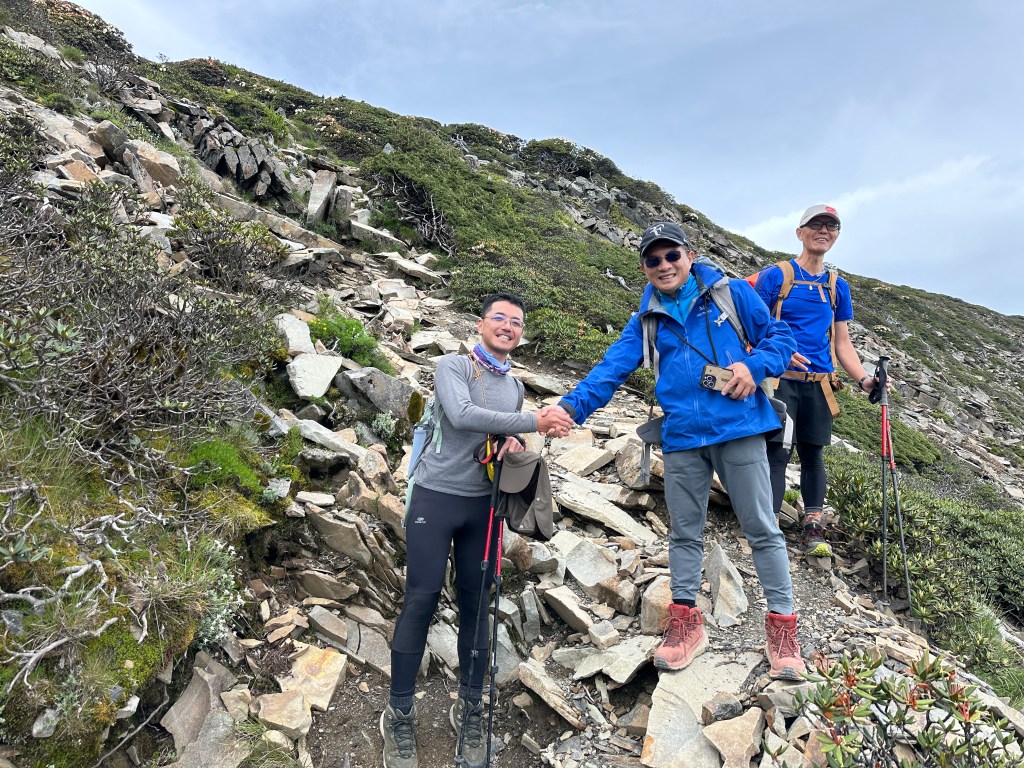 出發前,天氣預報16日、17日,兩天都是顯示下午可能出現短暫雷陣雨,其他申請的時間都天氣不佳,因此,決定16日出發,從凌晨出發到抵達雪山主峰,天氣佳,偶有陽光。中途,或許我有一段時間沒有爬山了,在爬哭坡時居然兩腿一路抽筋,伙伴們也都停下來等待著我。