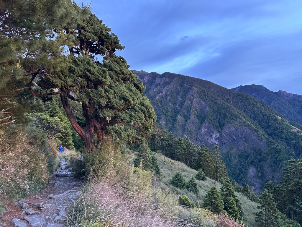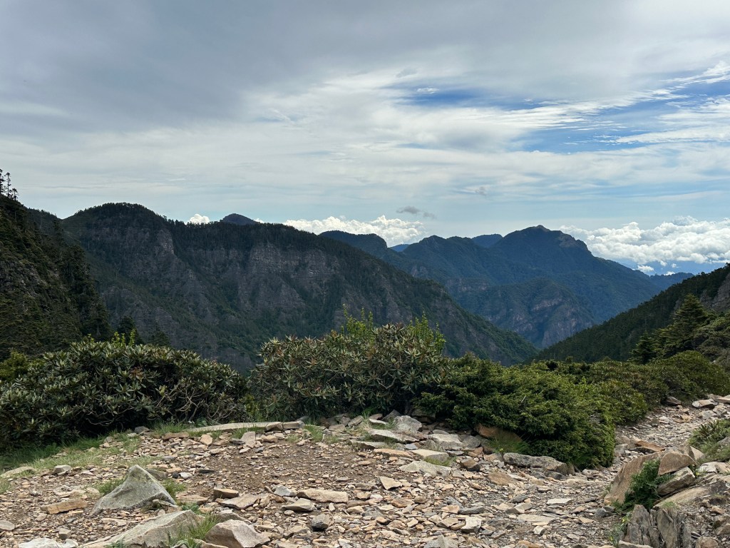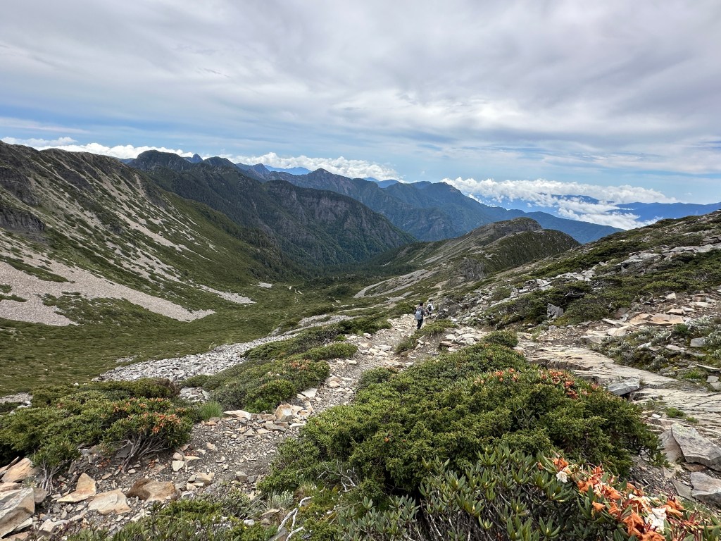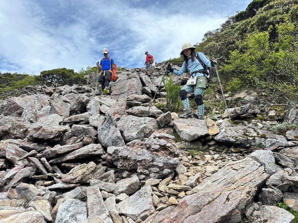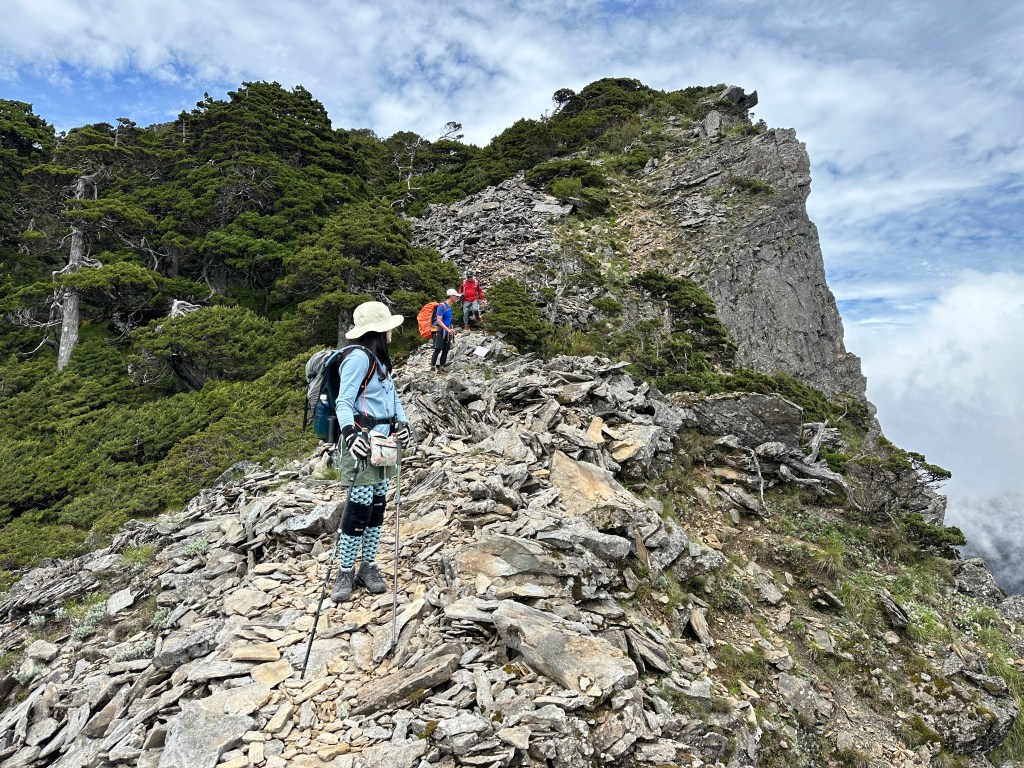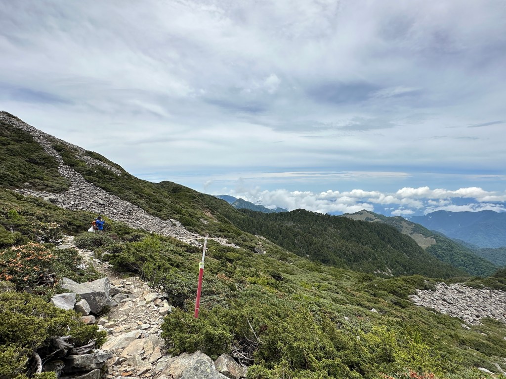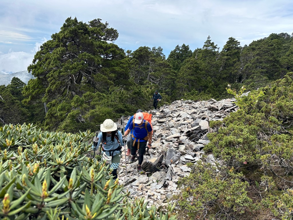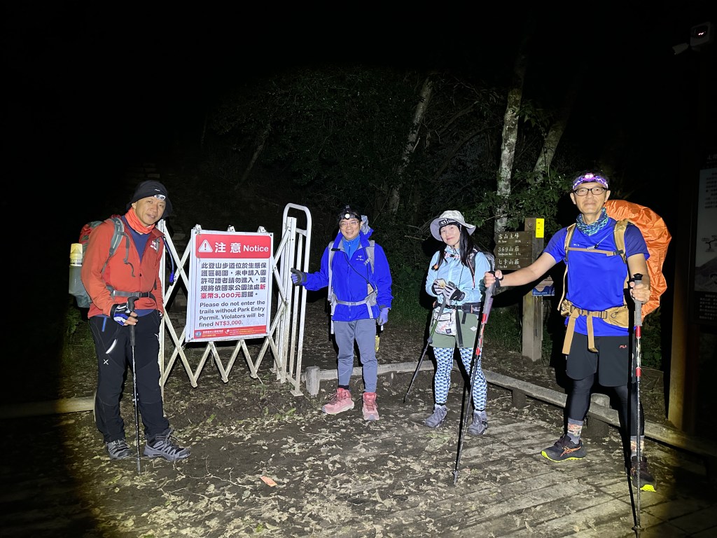 出發前,天氣預報16日、17日,兩天都是顯示下午可能出現短暫雷陣雨,其他申請的時間都天氣不佳,因此,決定16日出發,從凌晨出發到抵達雪山主峰,天氣佳,偶有陽光。中途,或許我有一段時間沒有爬山了,在爬哭坡時居然兩腿一路抽筋,伙伴們也都停下來等待著我。