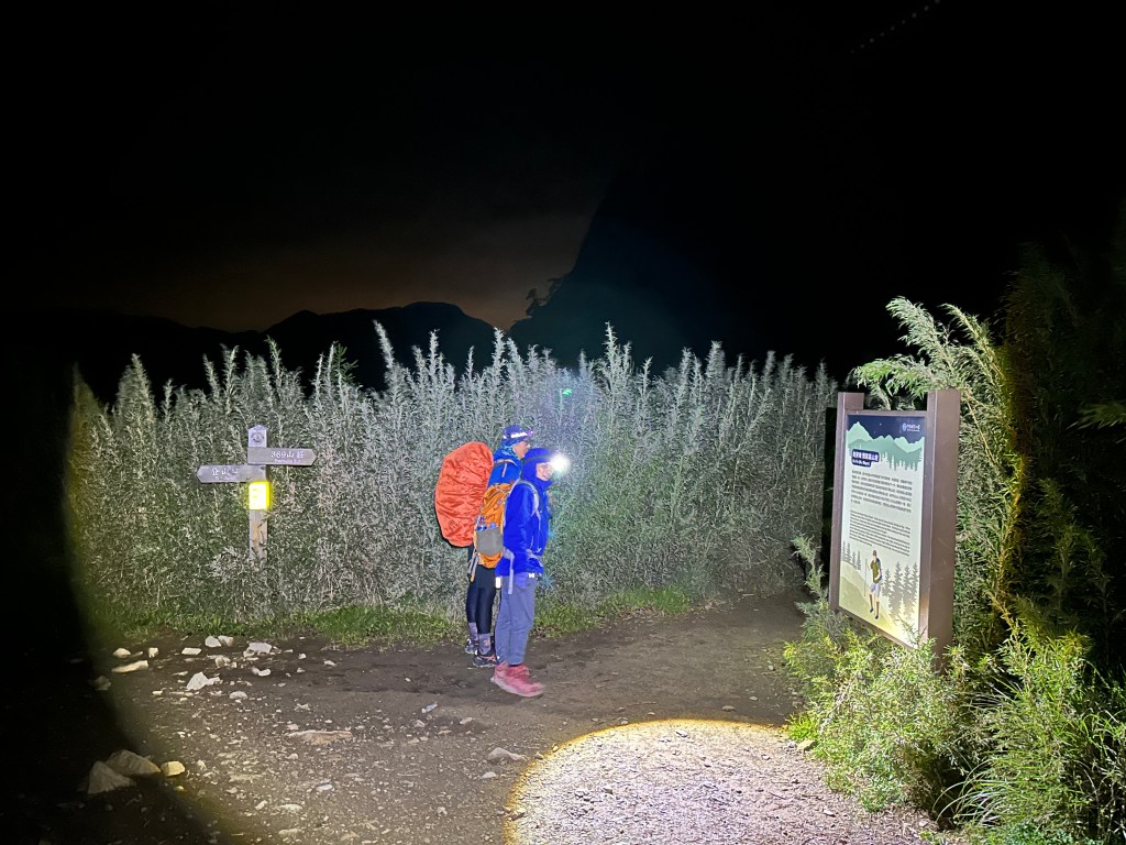 有人差點跌落邊坡受傷了,有人大喊頭燈快沒電了,有人的手機進水了無法看路,還有人掉了貴森森的腿綁帶,當下真的有如好萊塢災難片現場!一言難盡的混亂⋯