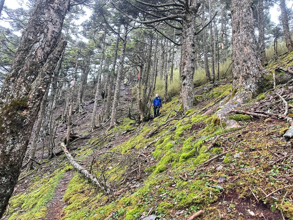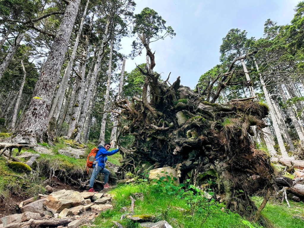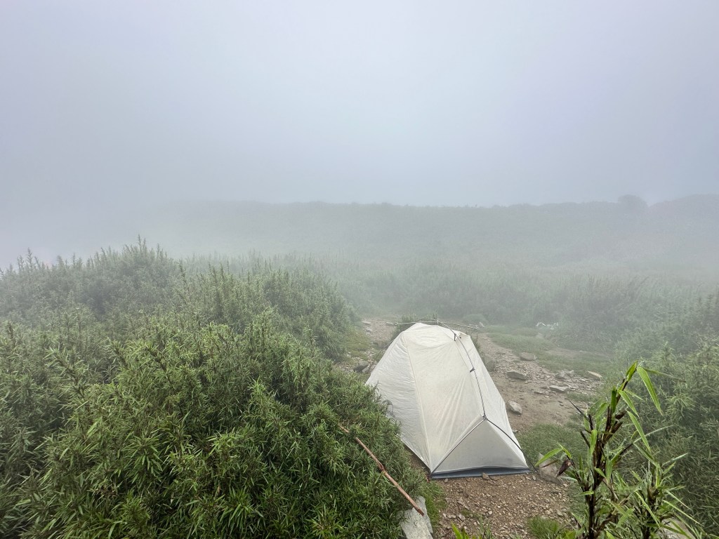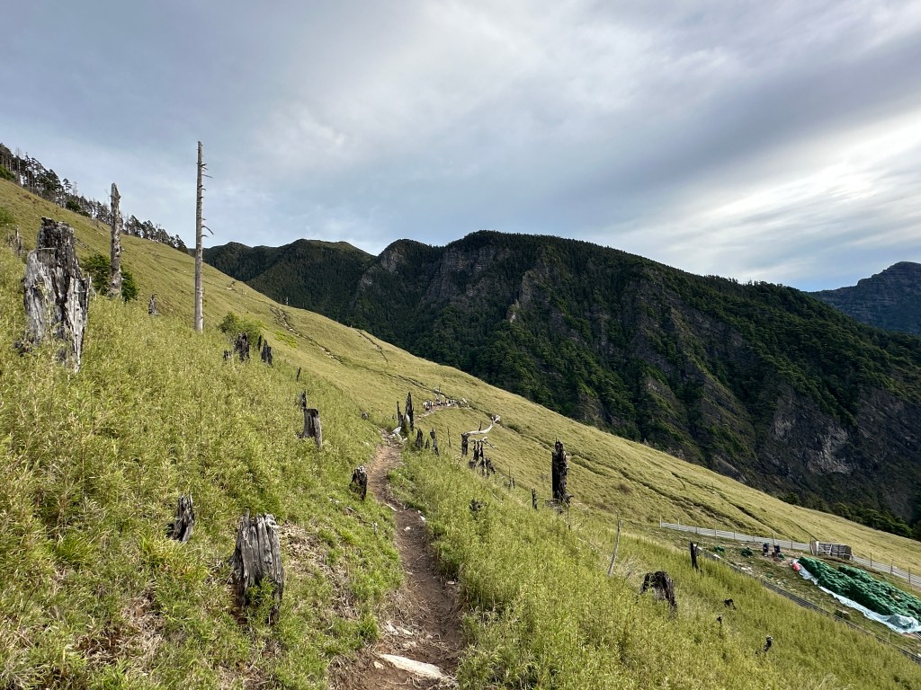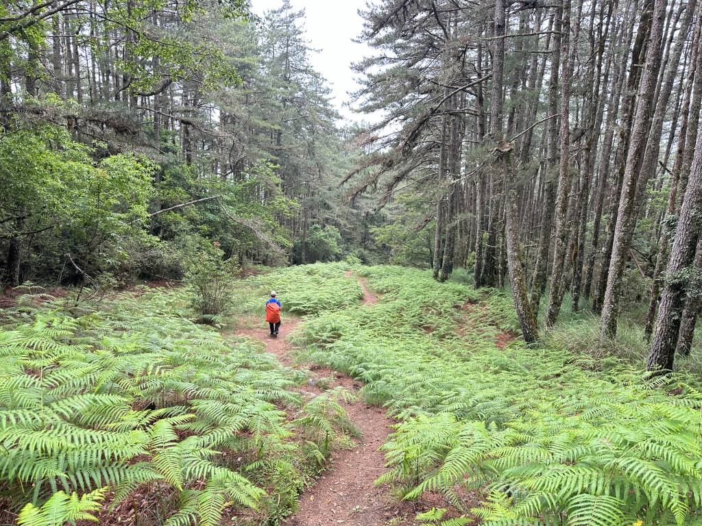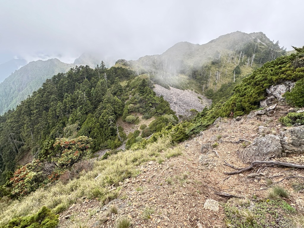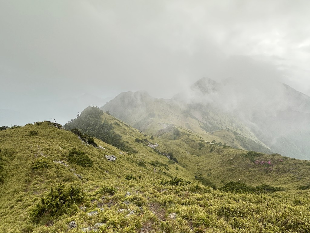 這一路上箭竹林又高又長,並且有些路段會突然有垂直的陡上陡下轉折,天氣好時,這些都不是問題,但我們在未抵達達完美谷營地前,天氣就開始轉為陰雨狀態且還一路打雷聲!霧氣也愈來愈濃,就像是在天黑狀態下,跟我們預想的完全不同?因為出發前才對過Windy及中央氣象署的天氣預報,看到的都是會呈現陰天而不會下雨。