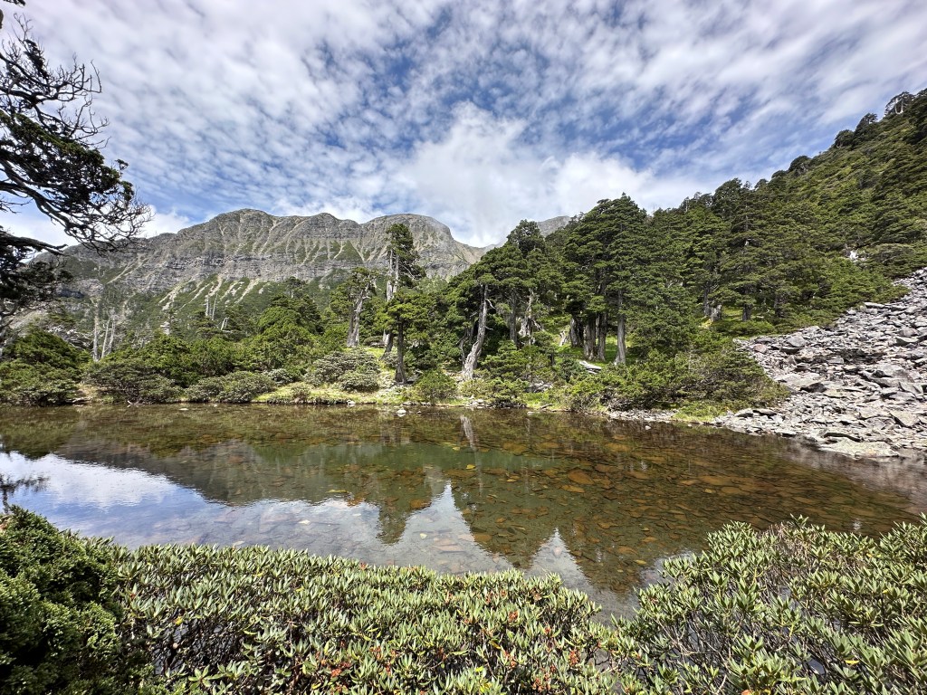 翠池及翠池山屋,是我們心中的美女高山湖泊及山屋。但一到山屋,周遭滿佈垃圾!實在看不下去,我們將周遭的垃圾給撿除,唉!如此美麗的地方,卻包藏著自私的人心。我們在翠池山屋前,午餐大休了45分鐘。