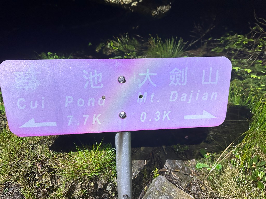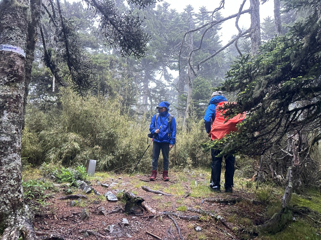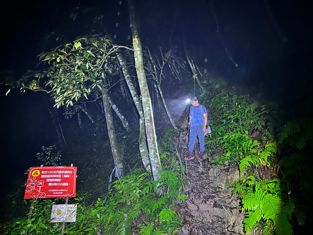 但實際上,從下午3點左右就開始一路下雨,到了傍晚就開始風大雨大且逐漸霧大,讓我們開始吃足了苦頭,也在摸黑後偶爾會走錯岔路,逐次修正,一直到了大劍山登頂前300m,此時霧大到沒有辦法辨認正確路徑,且此時大伙也在大雨大風中待了有7個小時,已經開始有浸潤現象,大伙都開始發抖,因此一定得找到路徑上到大劍山,並開始往油婆蘭山屋走,才能保命啊!