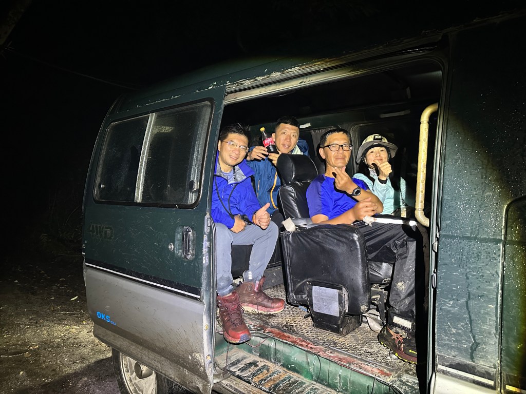 坐在接駁車上,回想這一天半的行走過程,遭受到嚴酷天氣的考驗,但大伙都平安,萬幸!