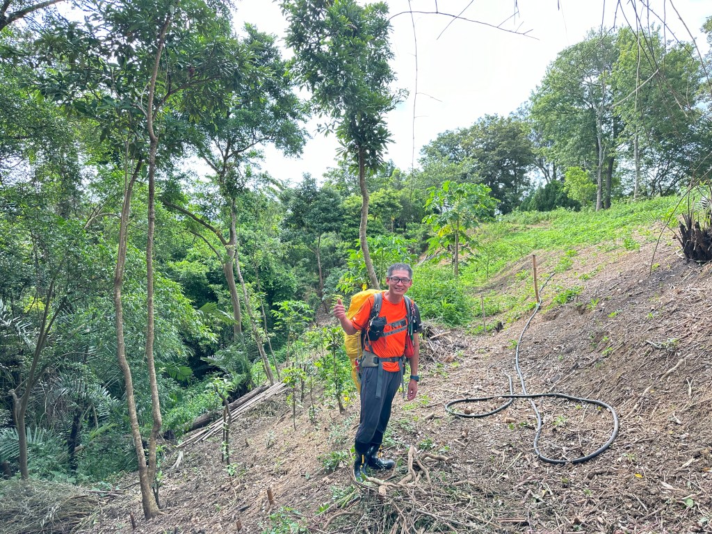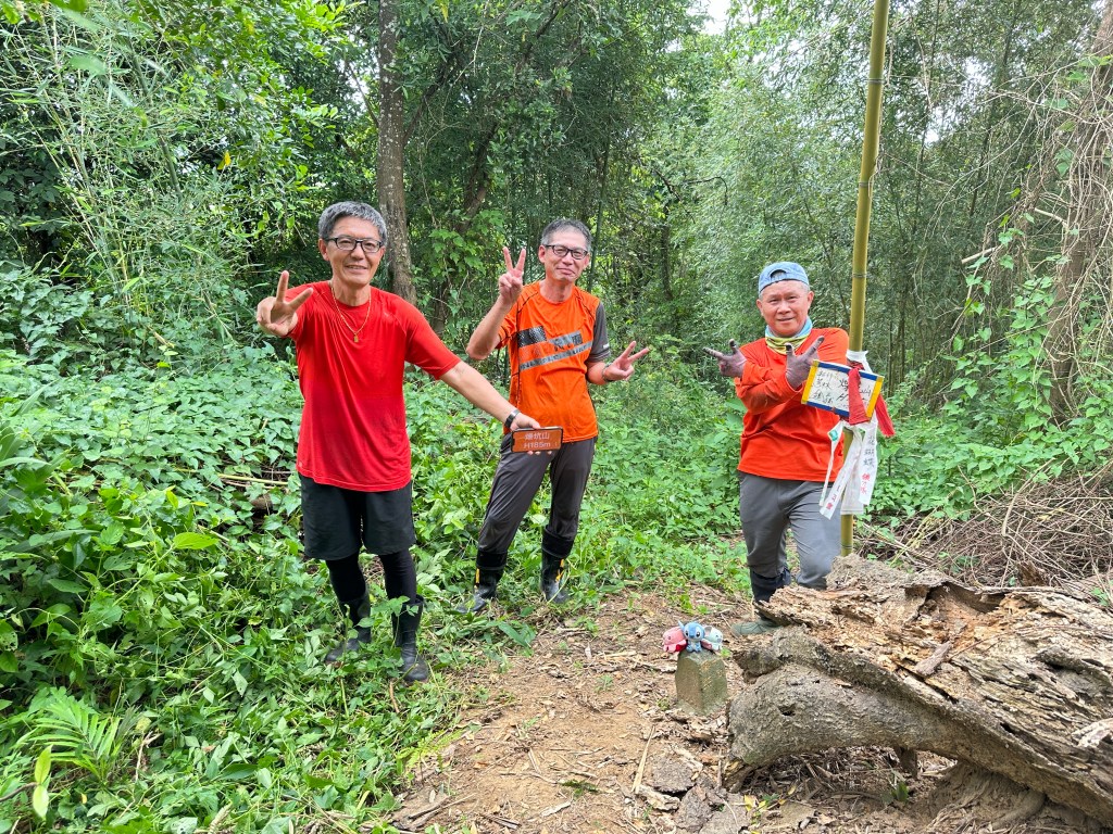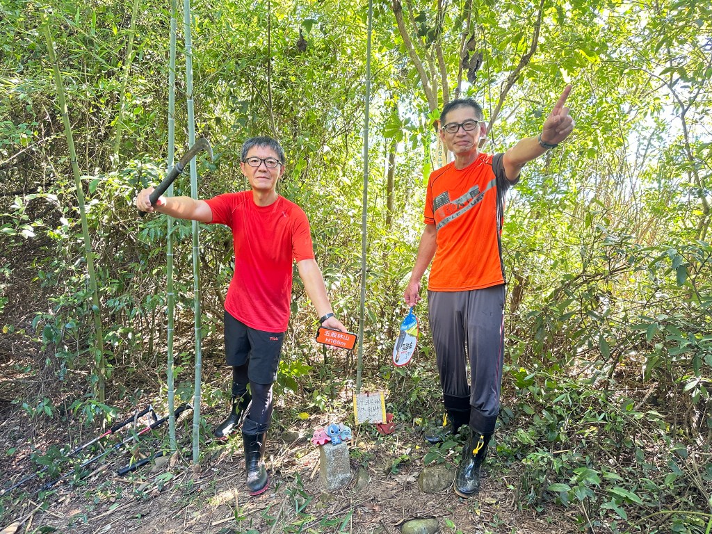 劉大哥的興奮溢於言表,溫大哥先行離去且是循著原來時路而回,接著劉大哥由燥坑山亦先下山,其餘三人由燥坑山陡下的路線是以前三人都走過的,只是這一次下山時,發現又雜草叢生了,Jun及Allen再一路的連砍下來,現在要走這一條路,目前應該是蜜月期!