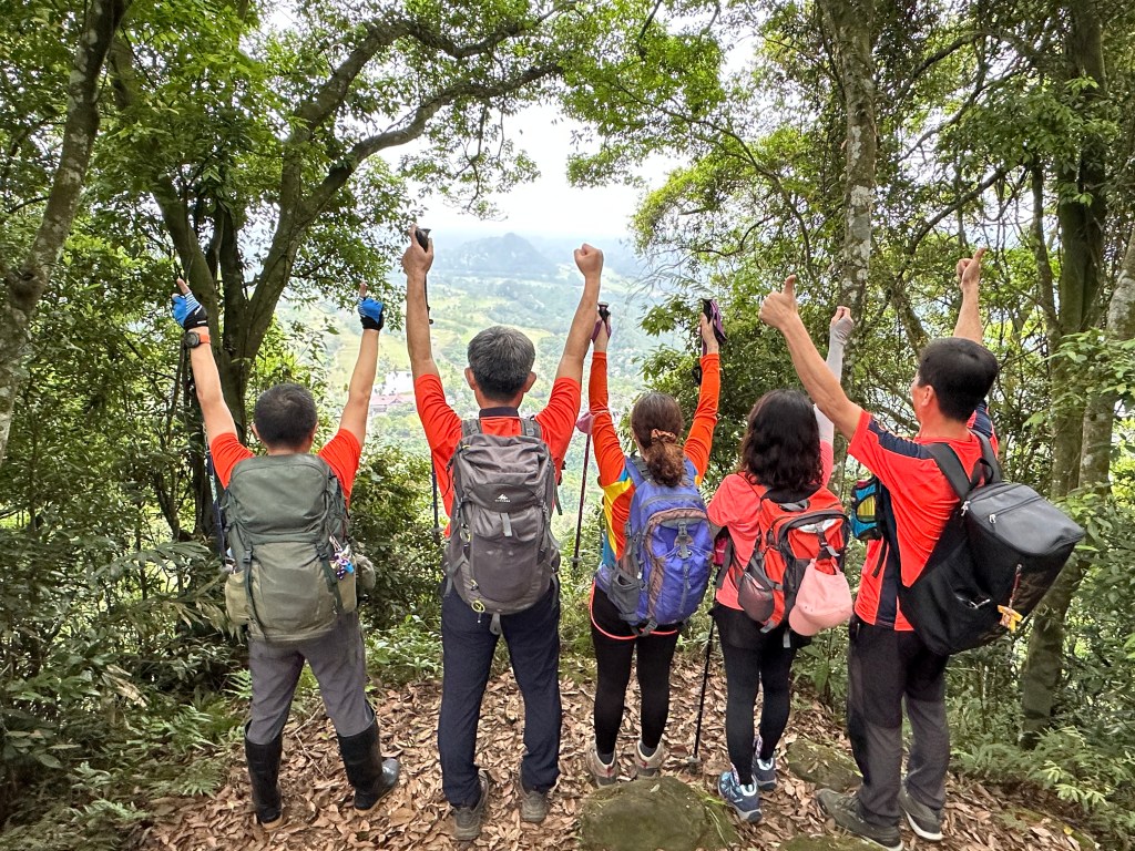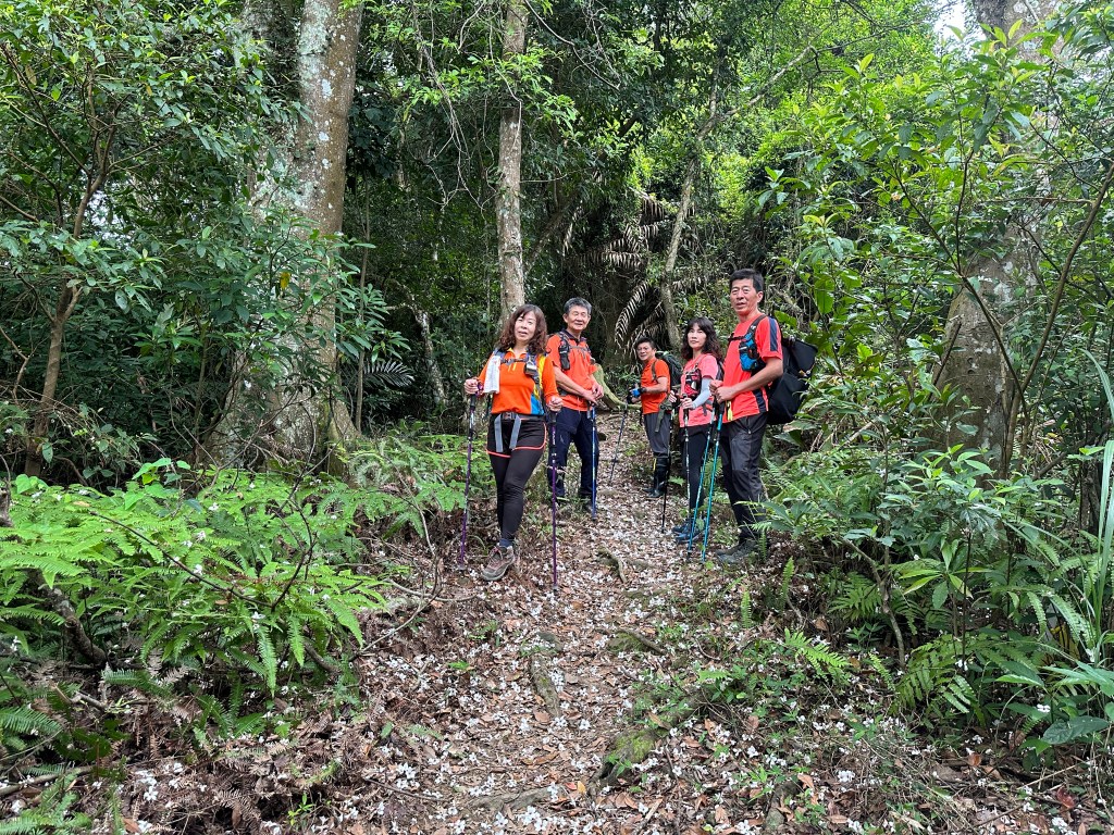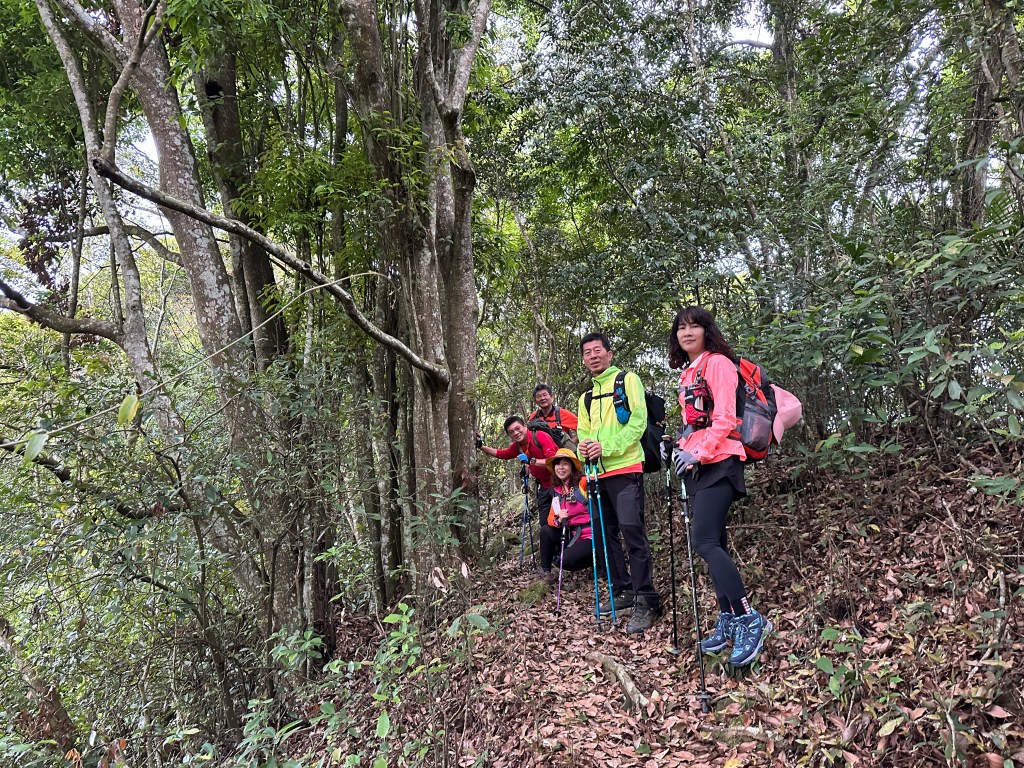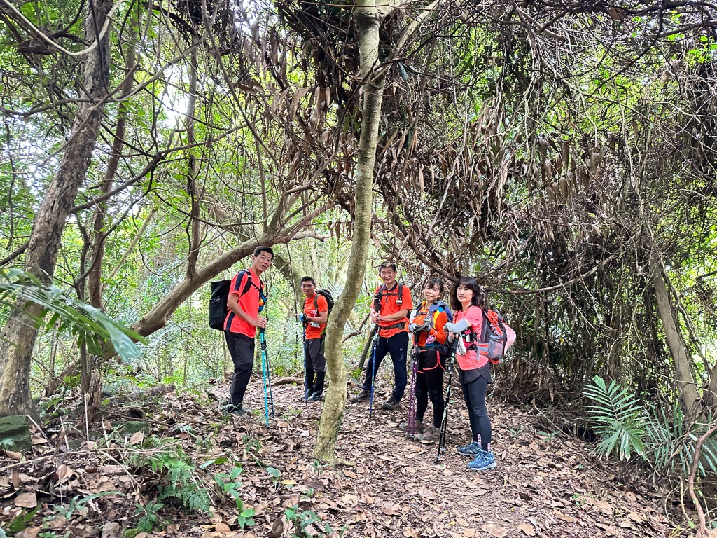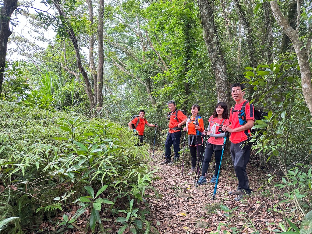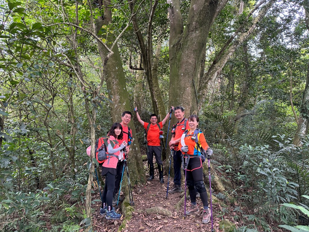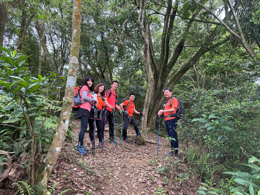從太元宮停好車起登,一進入山徑就沒在say hello的!一路陡,還得經過好漢坡的洗禮,陡上1K後抵赤柯山,接著一路走在稜線上起伏不大,過赤柯山南峰一段後就會到達瞭望台,6人一路拍照一路聊天,因Andy嫂沒有把握走完西獅頭山,因此,我們6人在東獅頭山後就分成兩組,A組繼續往西獅頭山走,B組則由東獅頭山就下山走回太元宮。