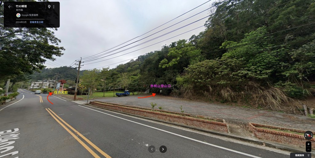 請利用Google地圖導航到關西玉山里太元宮,太元宮前廣場可以停不少車輛。