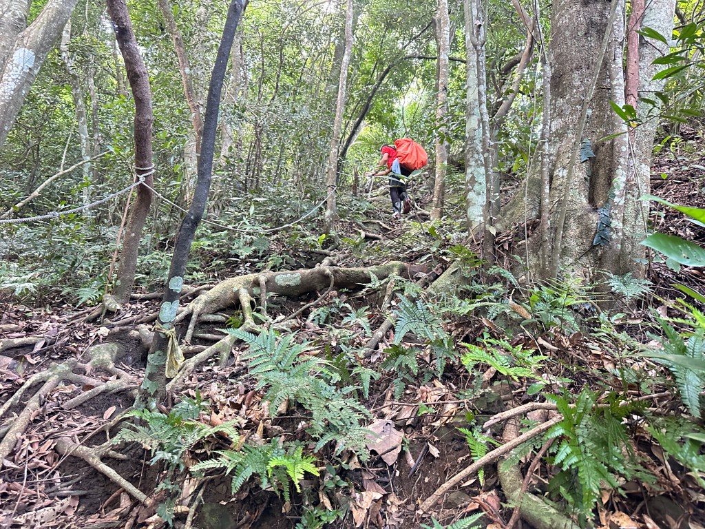 一路上除了清除雜草整理倒木也將黃藤給砍除