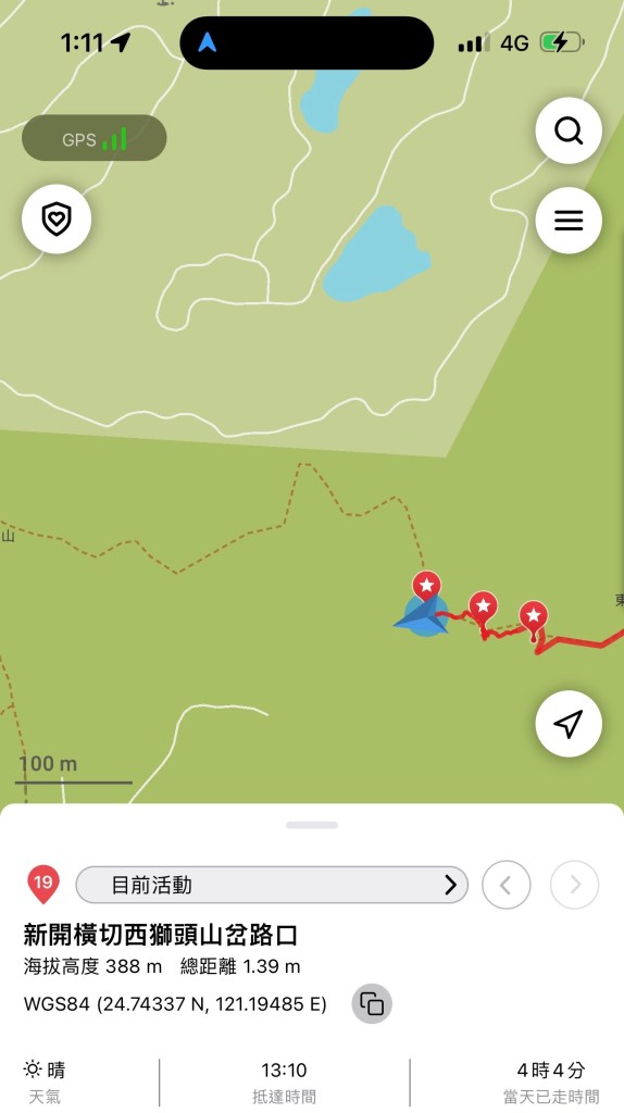 13:47-14:21 西獅頭山午餐(H360m) (總里程第3.4km)