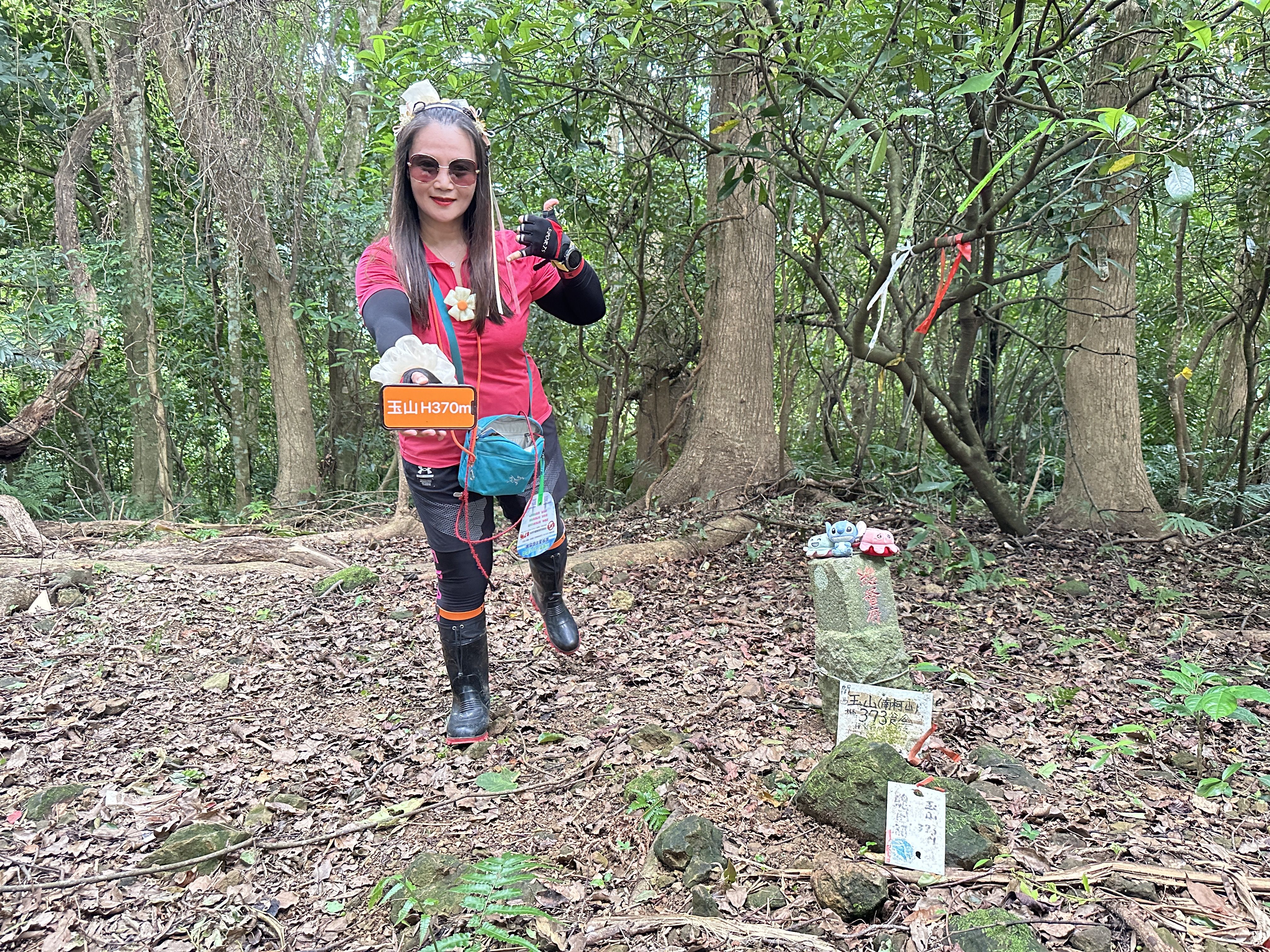 在馬福山拍完照後陡下走50m的距離即接上竹30線11.2K的馬福山登山口,兩人不想摸黑,接著沿著竹30線一路陡上走到最高點約9.8K左右,再一路跑步陡下走到竹30線的8K,接著就往右岔的產業道路走入,這裡就是玉山的南登山口,沿著產業道路一路走進,離玉山還有450m時開始進入山徑裡,山徑不陡,450m的距離只要陡上50m的高度即可抵達「玉山」。這個「玉山」可不是台灣最高峰的「玉山」,哈哈!此玉山非彼玉山!