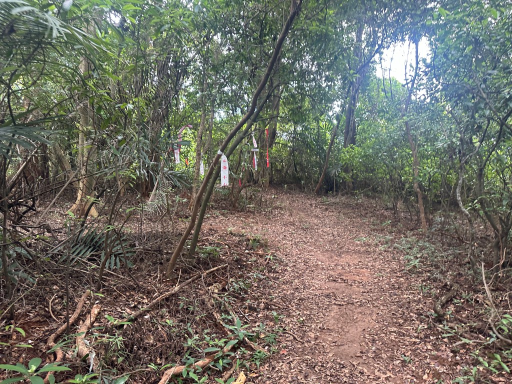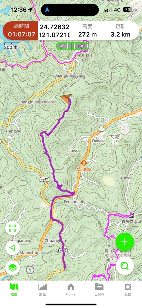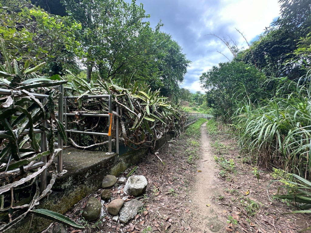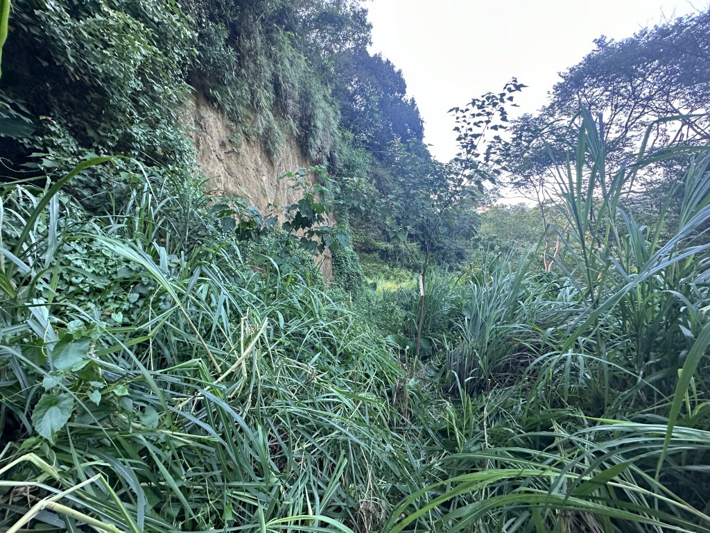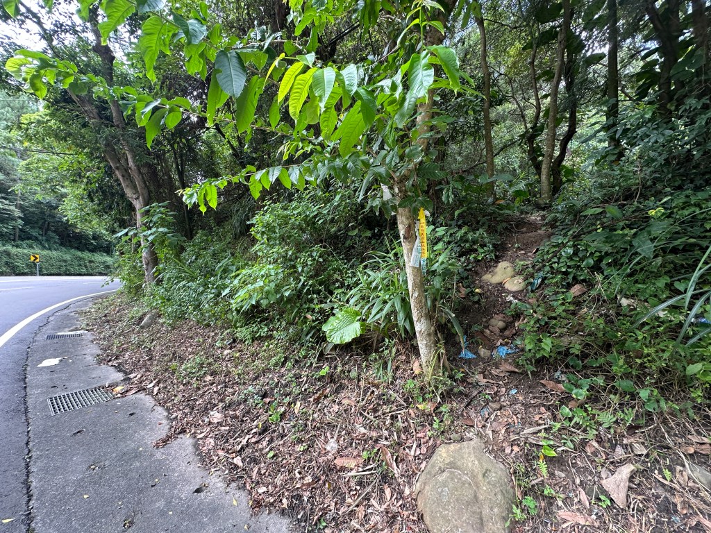 但除了由綠世界進入外,其實離線地圖上是沒有路徑軌跡可以通往的!因此,若要開發新路線顯然需要一點機運!因此,我們的伙伴Smile與Jun已經先於2024.09.03去由寶山水庫二號引水隧道產業道路再往南走200m,兩人商量許久,覺得要由此當作東登山口(24.707050, 121.078384)來砍除,因為芒草超級密集,兩人花了一個下午僅打通約500m的距離。