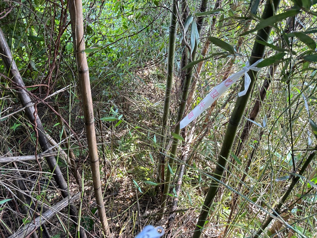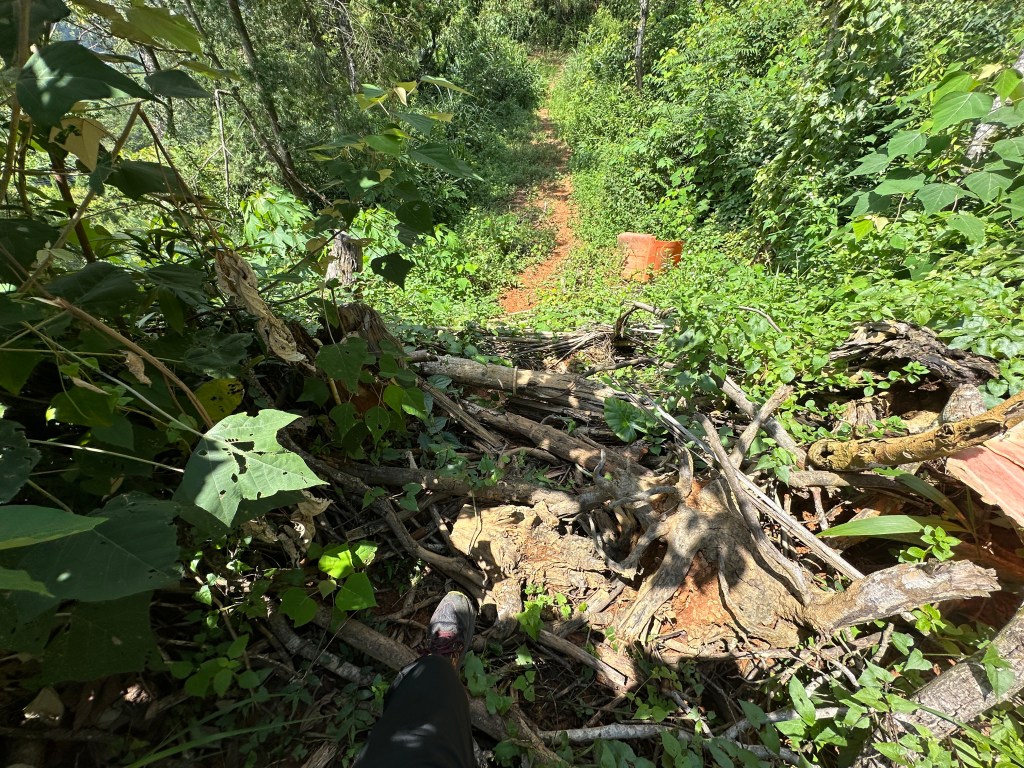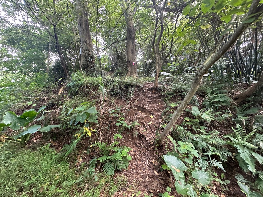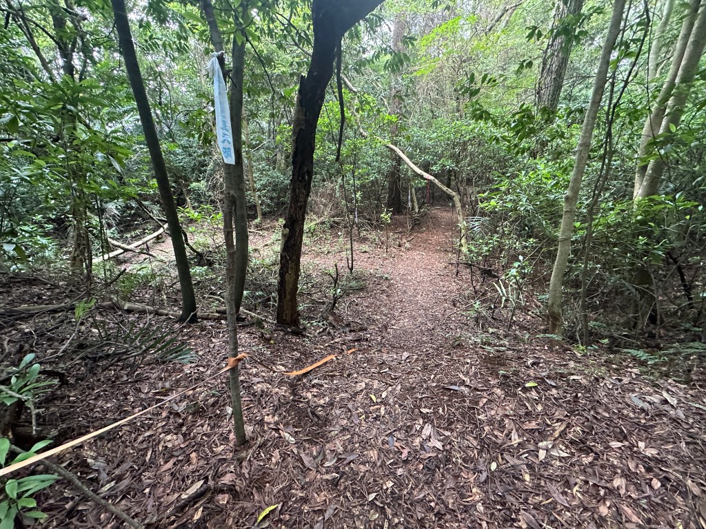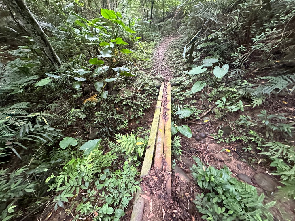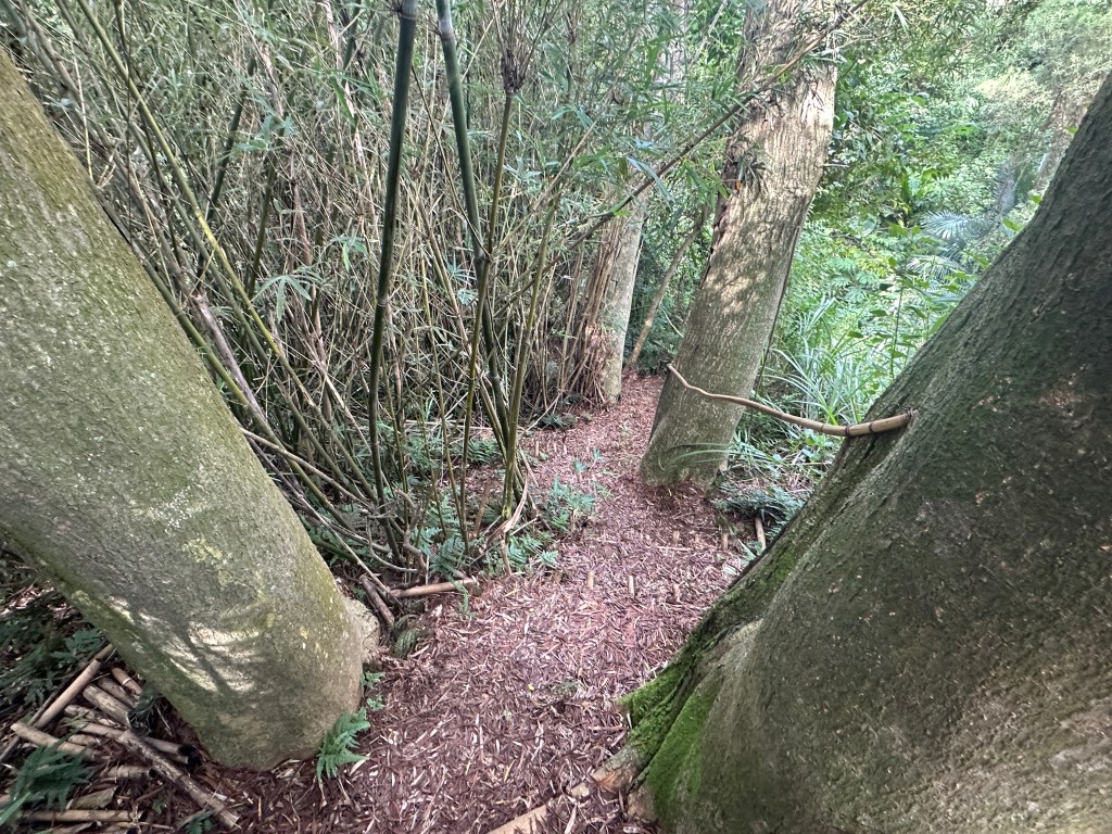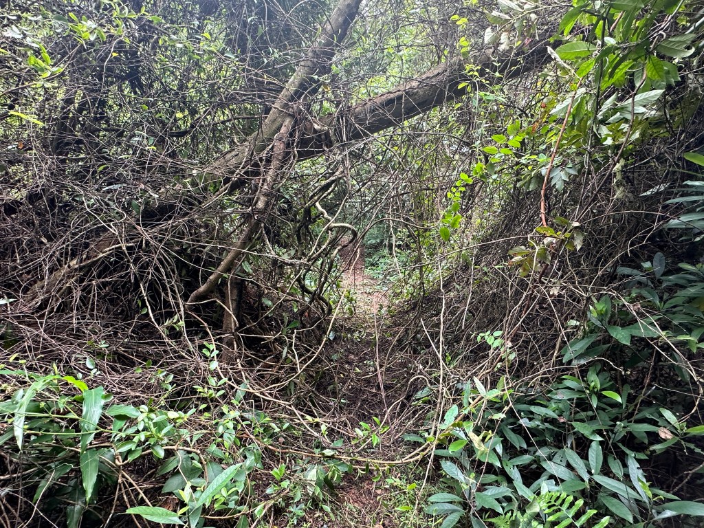 因此在隔天2024.09.04兩人再約Dora、Kenny一起來打通東登山口到四坪寮山,有了前一天的基礎,加上今天有四個人,進展的速度變得快多了!其中為了安全,Smile一路蹲在芒草下方看著一路的下方土地是否紮實好踩踏,而Dora、Kenny與Jun三人則一路砍除、壓平、踩實芒草,並修整雜草倒木,一路由芒草區到開始陡上進入稜線路,由東登山口(24.707050, 121.078384)一路砍進來陡上到三岔峰的距離有0.7K,再由三岔峰左彎一路直直往四坪寮山繼續砍除350m的距離來到四坪寮山。沒有想到,居然成功了!這四位帶有傻勁且堅持的伙伴,套一句話,真是「牛逼」啊!
