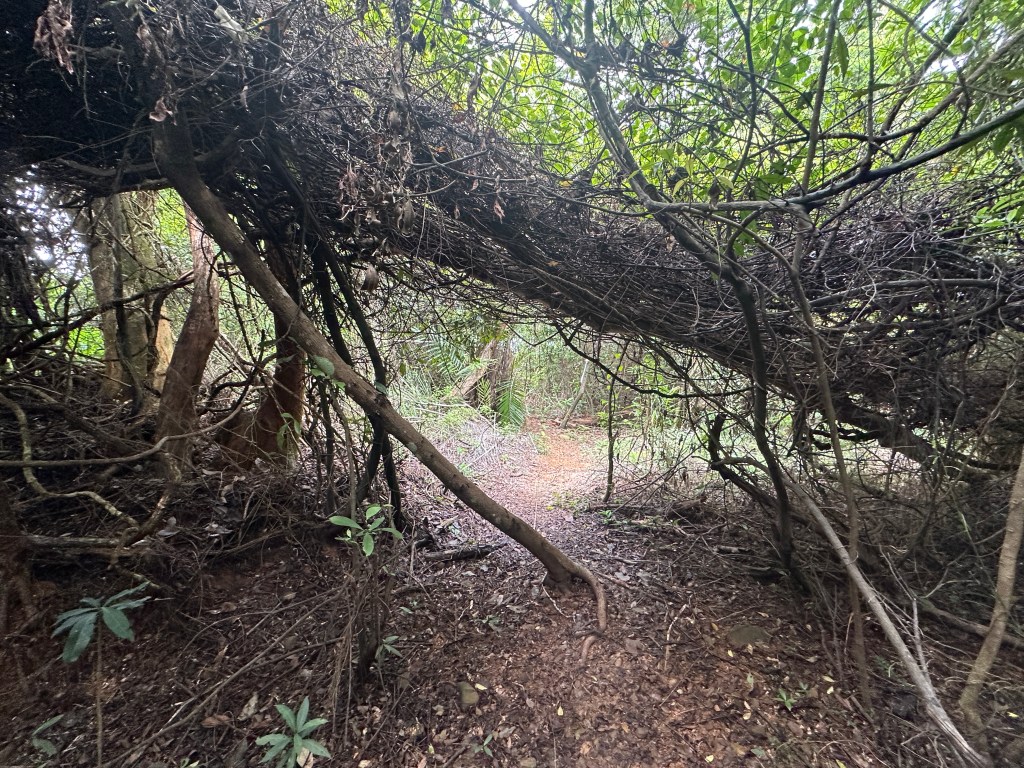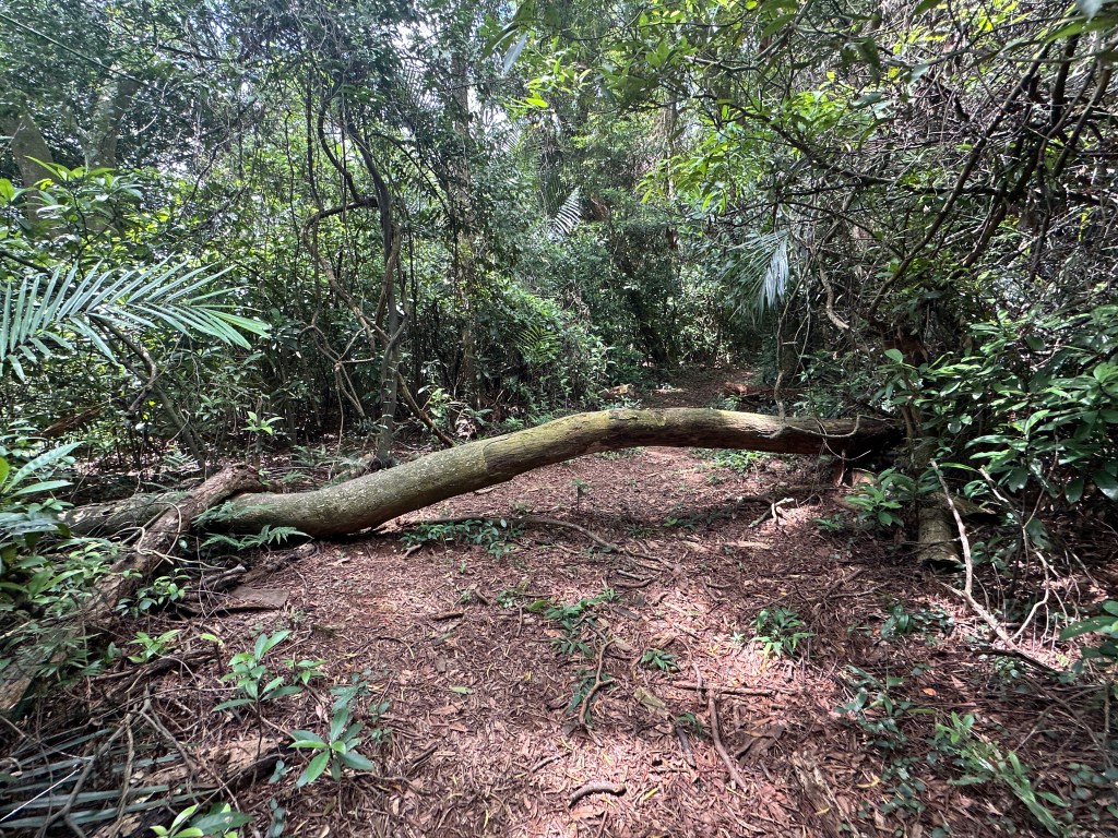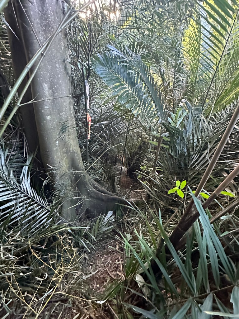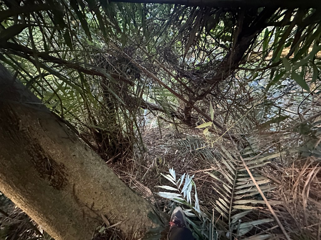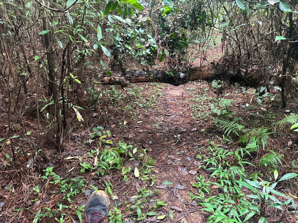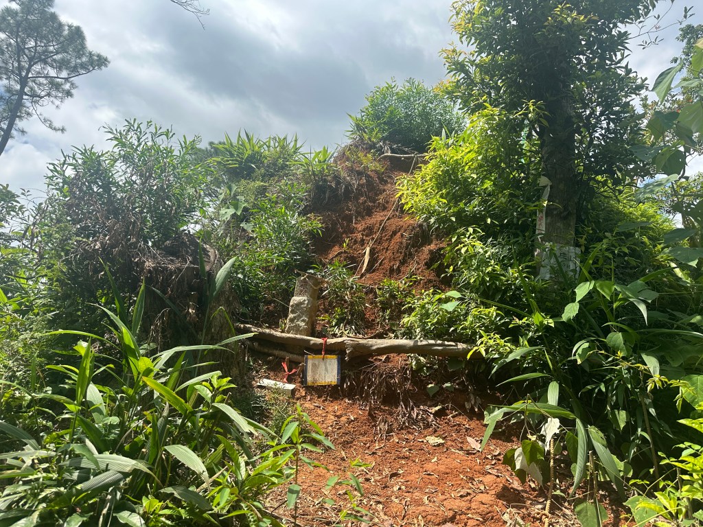 因此在隔天2024.09.04兩人再約Dora、Kenny一起來打通東登山口到四坪寮山,有了前一天的基礎,加上今天有四個人,進展的速度變得快多了!其中為了安全,Smile一路蹲在芒草下方看著一路的下方土地是否紮實好踩踏,而Dora、Kenny與Jun三人則一路砍除、壓平、踩實芒草,並修整雜草倒木,一路由芒草區到開始陡上進入稜線路,由東登山口(24.707050, 121.078384)一路砍進來陡上到三岔峰的距離有0.7K,再由三岔峰左彎一路直直往四坪寮山繼續砍除350m的距離來到四坪寮山。沒有想到,居然成功了!這四位帶有傻勁且堅持的伙伴,套一句話,真是「牛逼」啊!