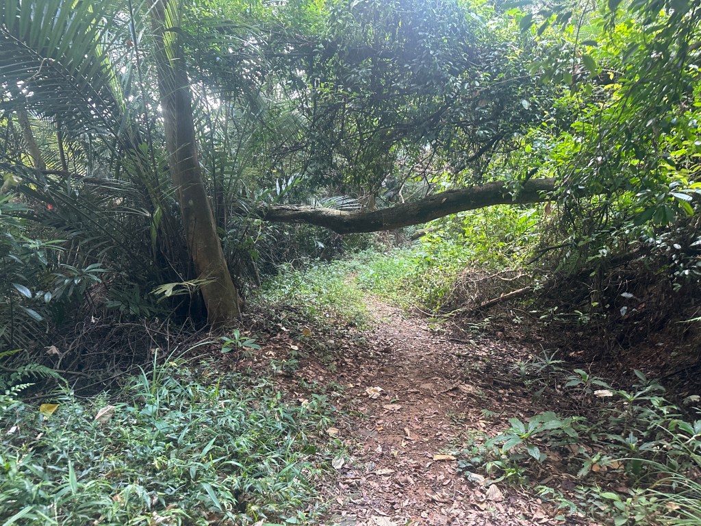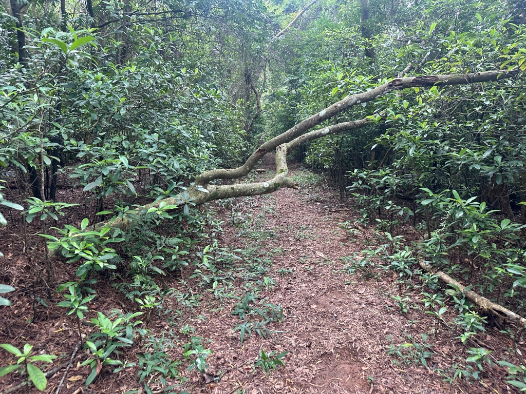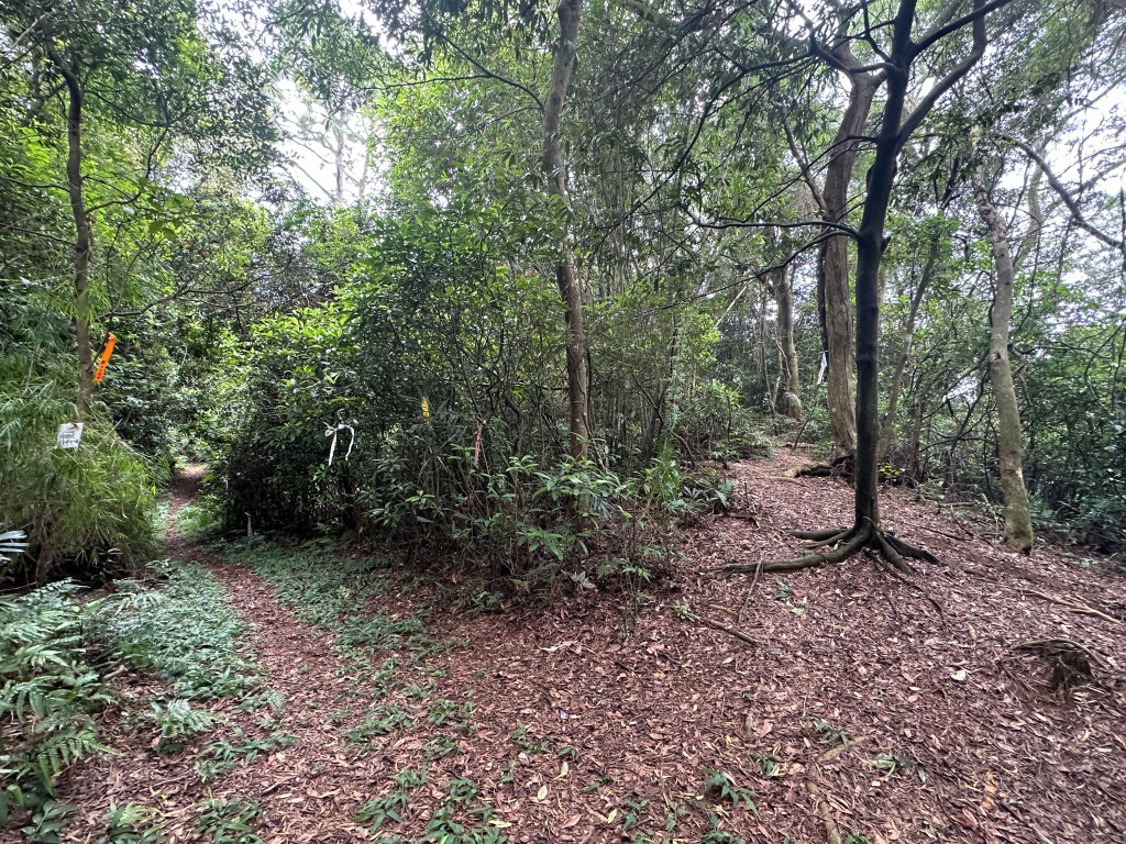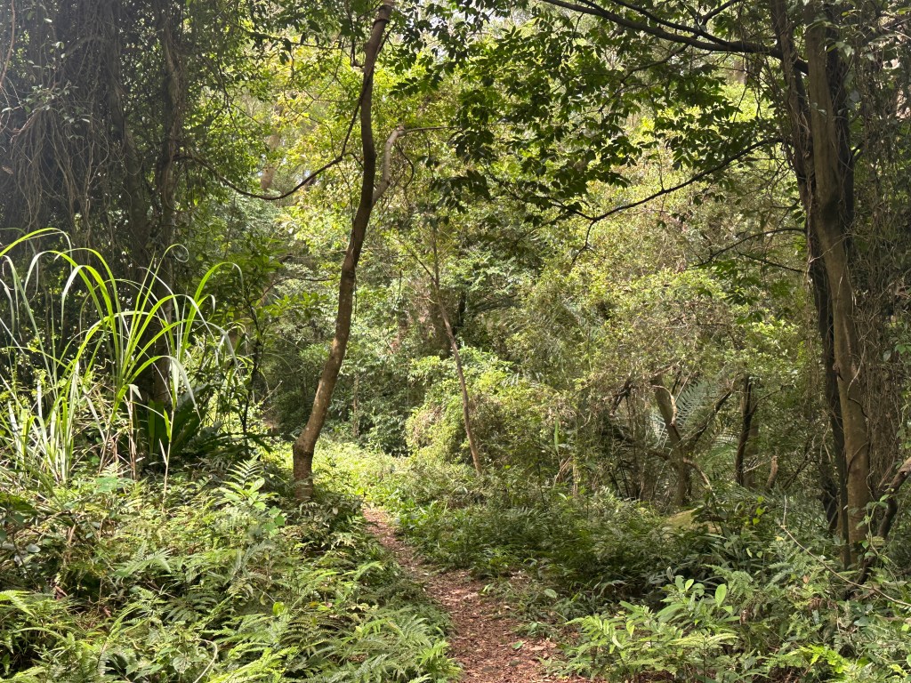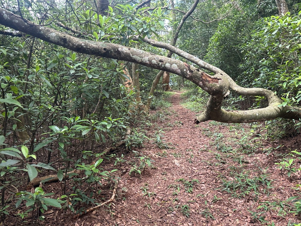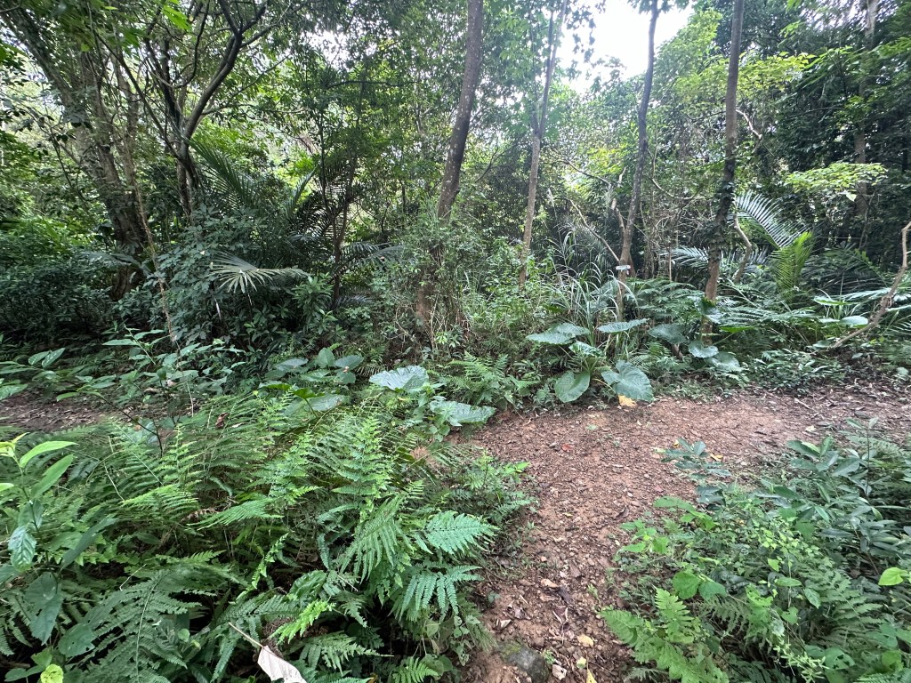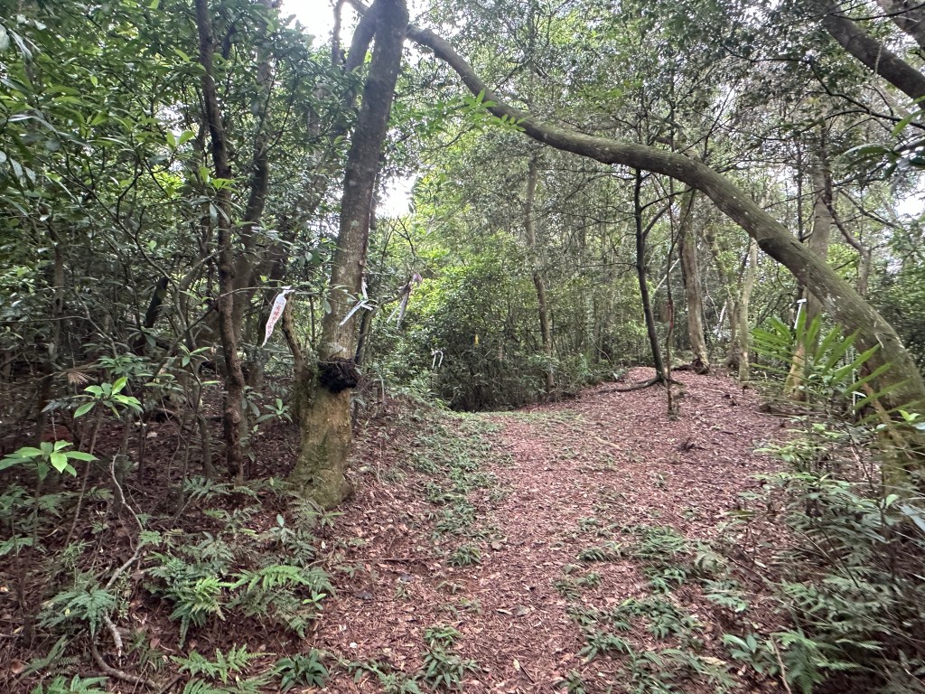 往前走了一段,出現一處5m的急陡坡,還在想,接下來不會都是陡上陡下的路徑吧?陡上後一看,真是康莊大道啊!一路到達樹杞林山,起伏都在20m之內,中途會通過一處寬闊無林蔭的平台,看起來真是相當的優美!這一段的過程遇到兩次虎頭蜂的巡邏峰,安靜快速通過!