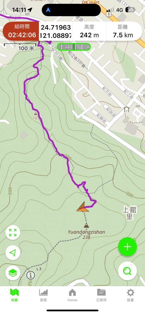 14:11-14:15 員崠子山:H239m (總里程:7.5K)