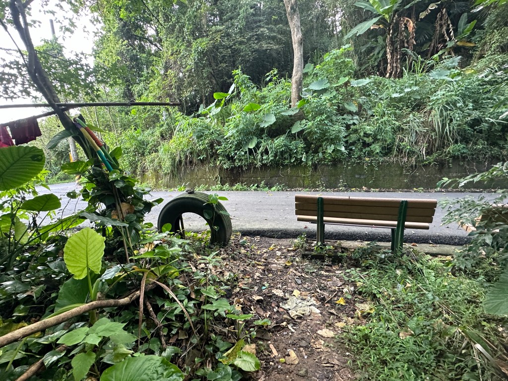 要抵達樹杞林山前50m,惡臭開始出現,因為,山頭左下方就是竹東垃圾掩埋場,這在我們之前走:2023-04-09 雙寶山水庫14連峰O型 🦋花蝴蝶🦋的路線時,就已經體驗過樹杞林山這裡的惡臭了!拍完照,快速回走300m,由樹杞林山岔往左陡下接上往研究院路的方向下山,接上研究院路後,再度轉入內山公路,右轉進入合江街,在393巷這裡右轉,就會再度接上山徑。
