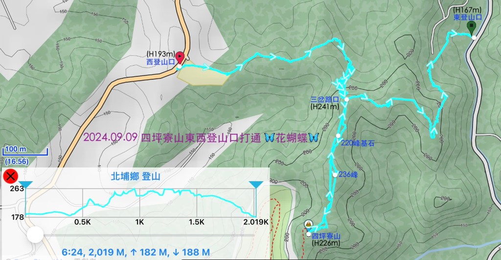 由西登山口到東登山口加上四坪寮山,整段的距離為2K。
