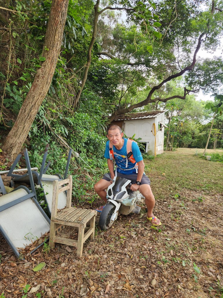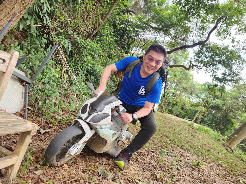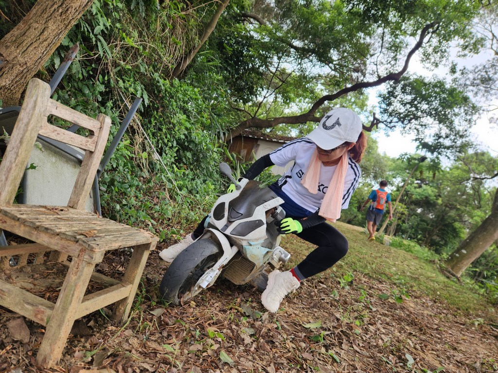 離開福頭山南峰三角點,在第二層的路徑上有一台被丟棄的小型童玩摩托車,幾個人就在此拍照一番!繼續往太極宮走,沿著太極宮前產業道路直接陡下,接上大有路後右轉,沿著大有路一直到946巷右轉!持續沿著946巷陡上走到底,抵達到永安宮。