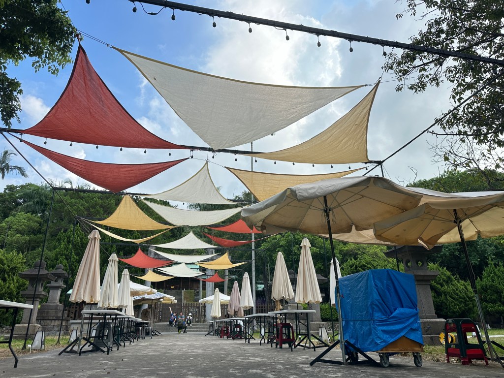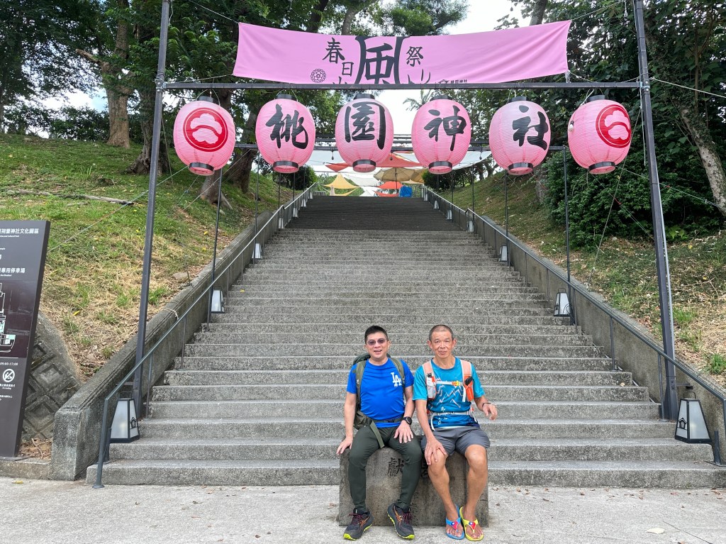 清晨,台北、桃園還是偶爾有遠方隆隆的雷聲?早上大伙來到日月亭停車場外的7-11做補給,將車開進日月亭停車場後,起登。先通過空中步道往忠烈祠方向走,大伙並上去看看忠烈祠,聽說這裡有餐廳賣好吃的豆花,我們也等著下山後再來吃吃。