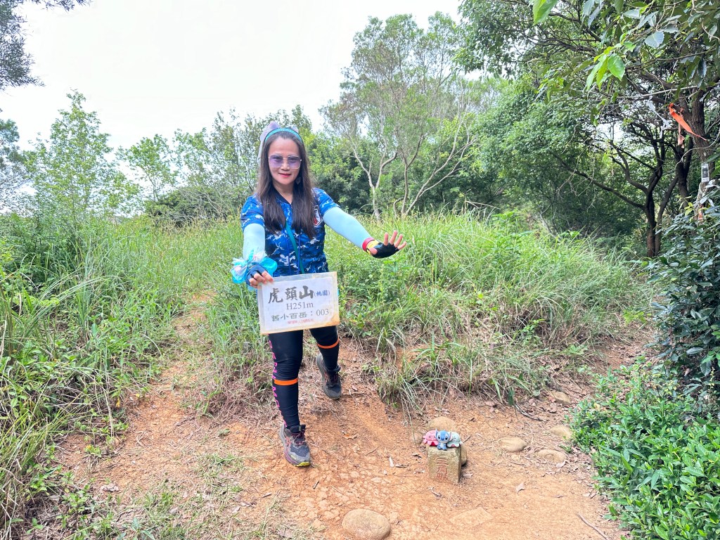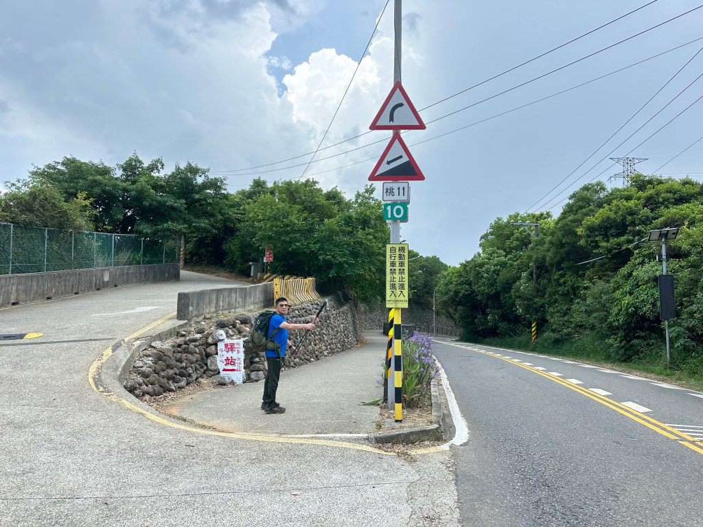 接著走馬路,來到桃11線9.4K,福頭山就在路邊陡上走20m即可到達!此時,遠方的雷聲大作,轟隆大響!看來不久就會下雨?拍照後,繼續沿著桃11線走,走到9.8K左右,往左轉入山徑裡,再往前走100m即可到虎頭山,這時,雷聲仍然不斷!此時,Tony老早不知跑到多遠了?應該,老早就已經跑完回到停車場,Sonia與阿志,兩人速度也不慢,一直保持在Smile與我(Gosen)的前方。