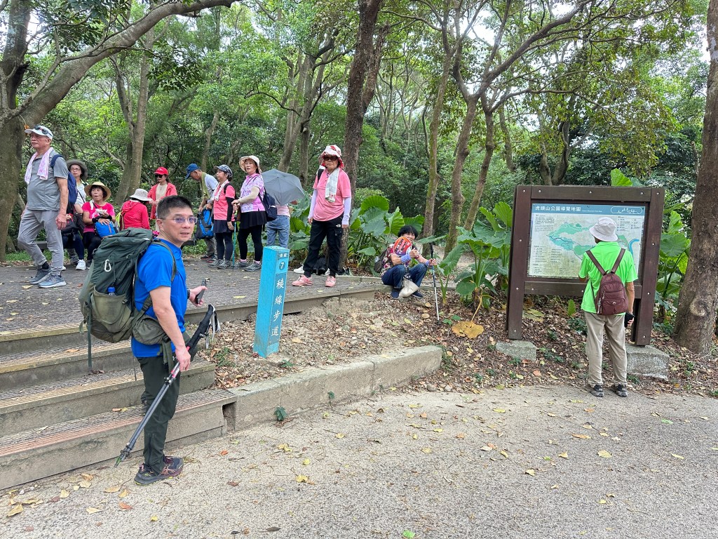 幻燈片:早上大伙在桃園虎頭山日月亭停車場集合,整裝後準備起登!Sonia也好久沒有爬山,我(Gosen)也是,加油吧!07:29