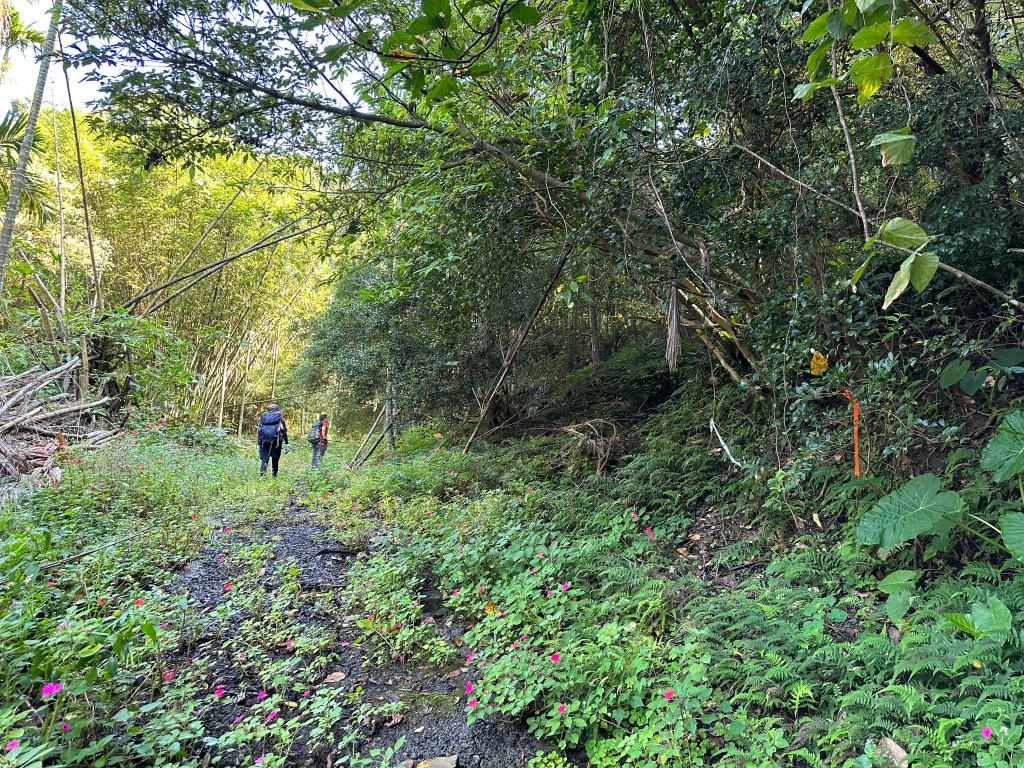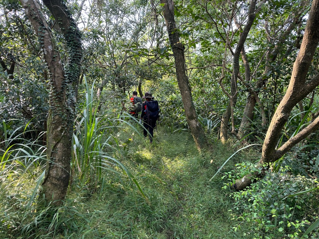 路徑不難但多變,邊坡路幅小,芒草植披厚